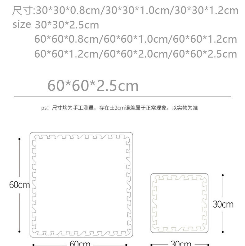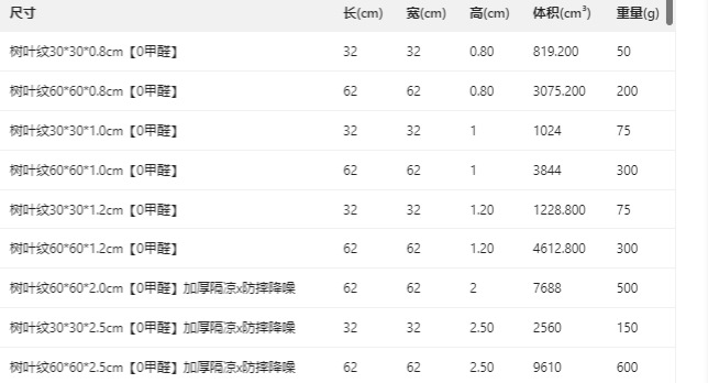 边条和尺寸:60*60规格每片送2根边条,3片/平方;30*30规格约2片送1根边条,12片/平方;发泡制品厚度会存在±2毫米误差,任何厂家都存在的