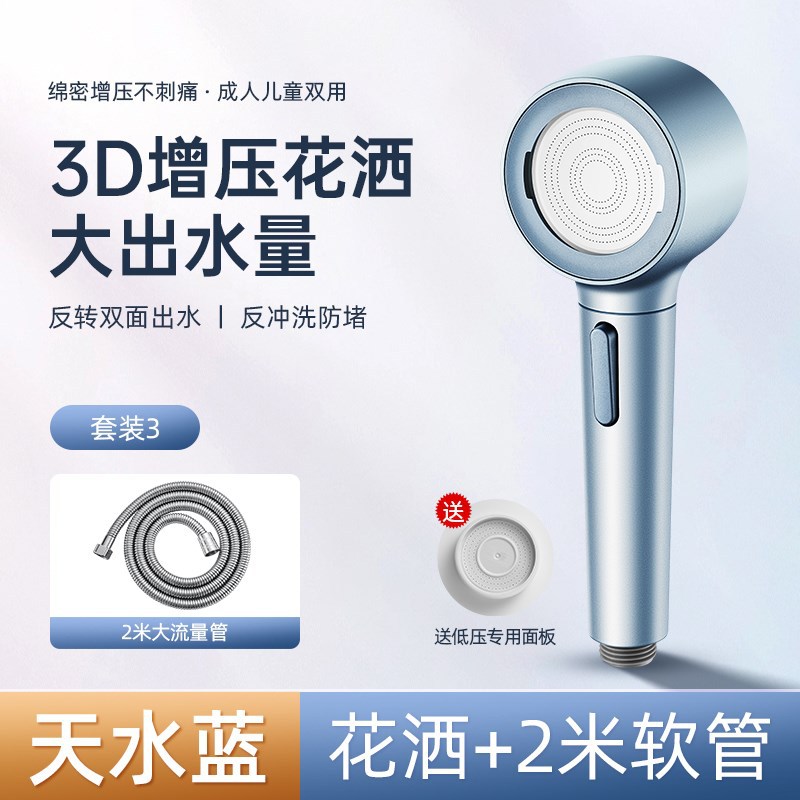 • ✦ 【천수 블루 세트】3D 강력 가압 샤워기 + 2m 대유량 호스 + 거치대