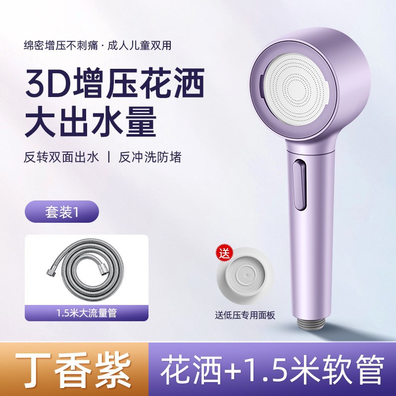• ✦【라일락 퍼플 세트】3D 강력 가압 샤워기 + 1.5m 대용량 호스