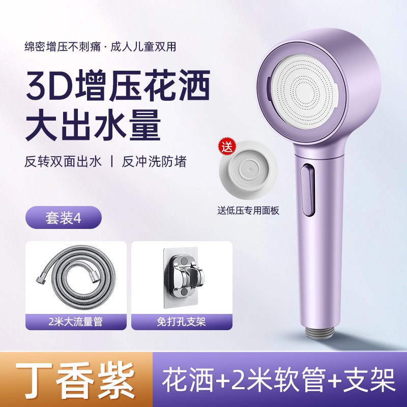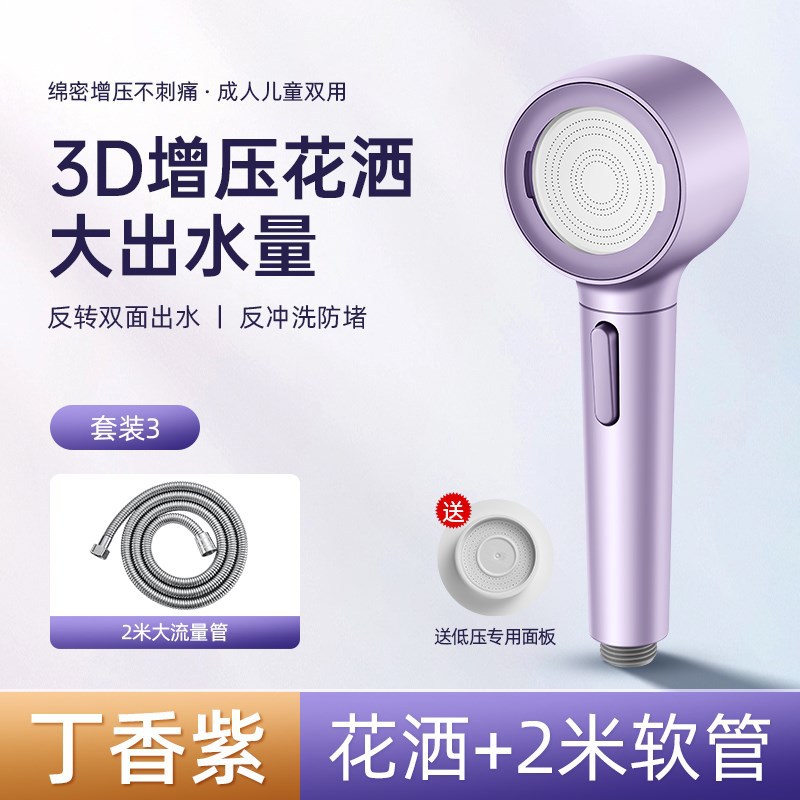 • ✦【라일락 퍼플 세트】3D 강력 가압 샤워기 + 2m 대용량 호스