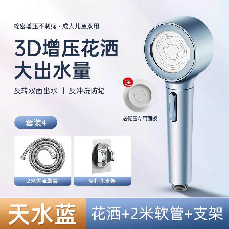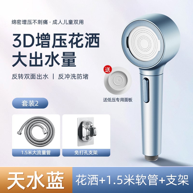 • ✦【천수 블루 세트】3D 강력 가압 샤워기 + 1.5m 대유량 호스 + 거치대