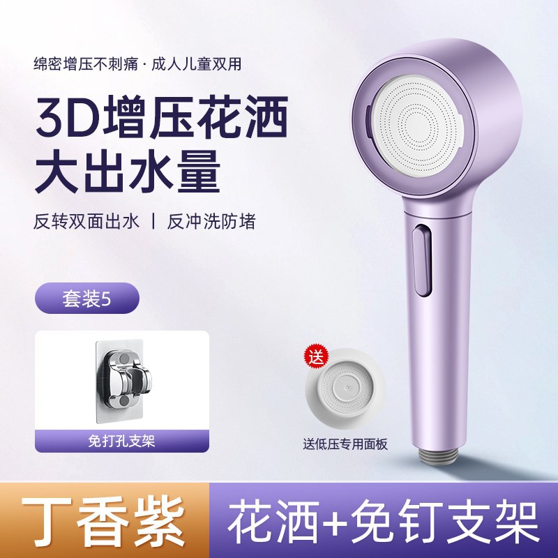• ✦【라일락 퍼플 세트】 3D 강력 가압 샤워기 + 거치대