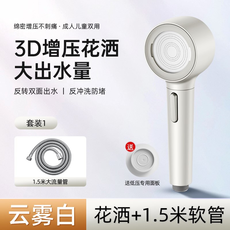 • ✦【클라우드 화이트 세트】3D 강력 가압 샤워기 + 1.5m 대용량 호스