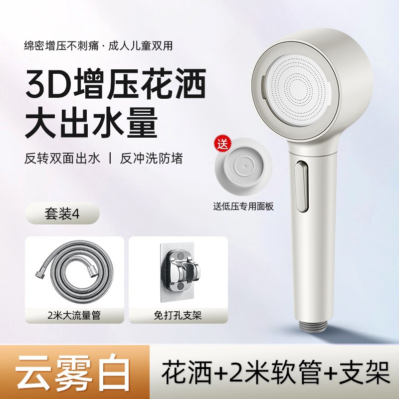 • ✦【클라우드 화이트 세트】3D 강력 가압 샤워기 + 2m 대용량 호스
