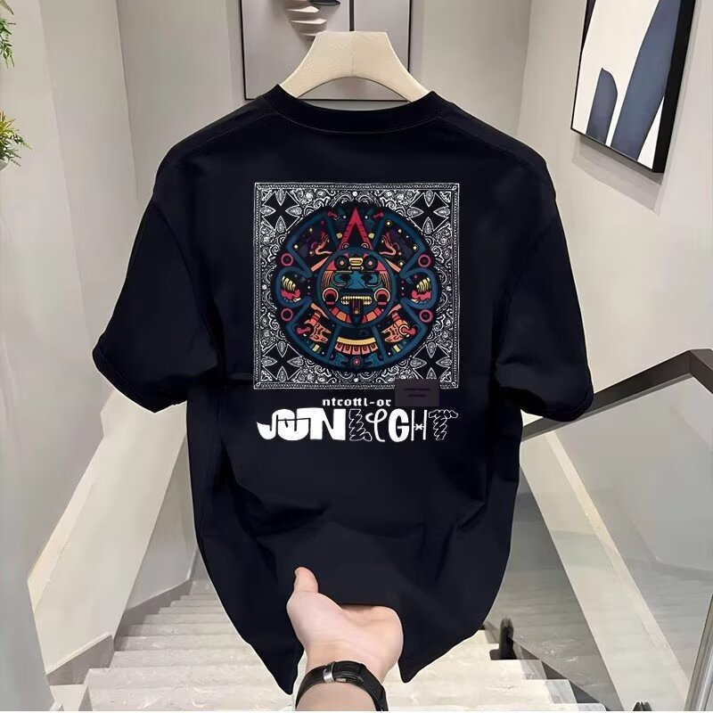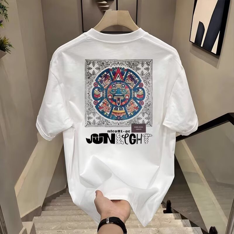 반팔 티셔츠 남성용 여름 퓨어 코튼 전국 패션 캐주얼 폭발 올 매치 티셔츠 헤비 라운드 넥 맞춤형 Ins