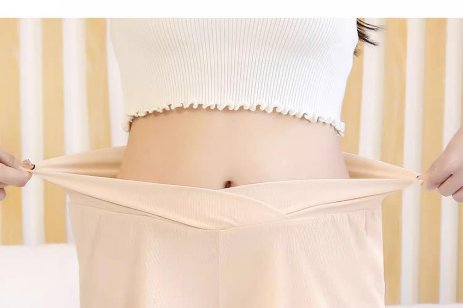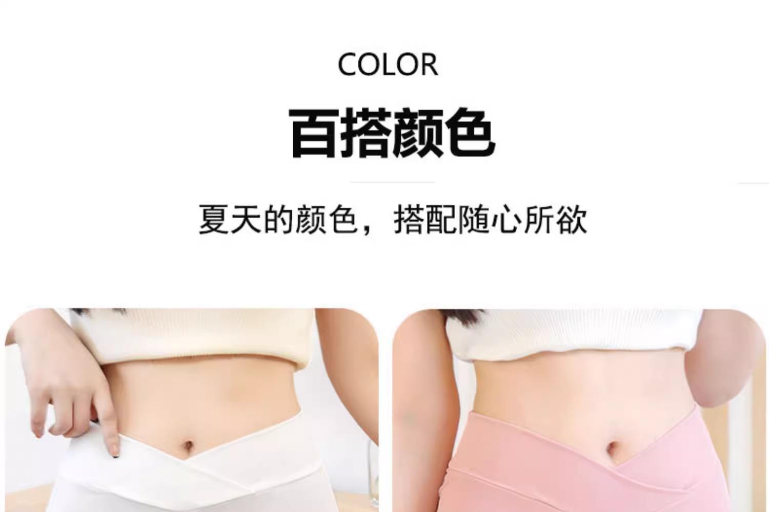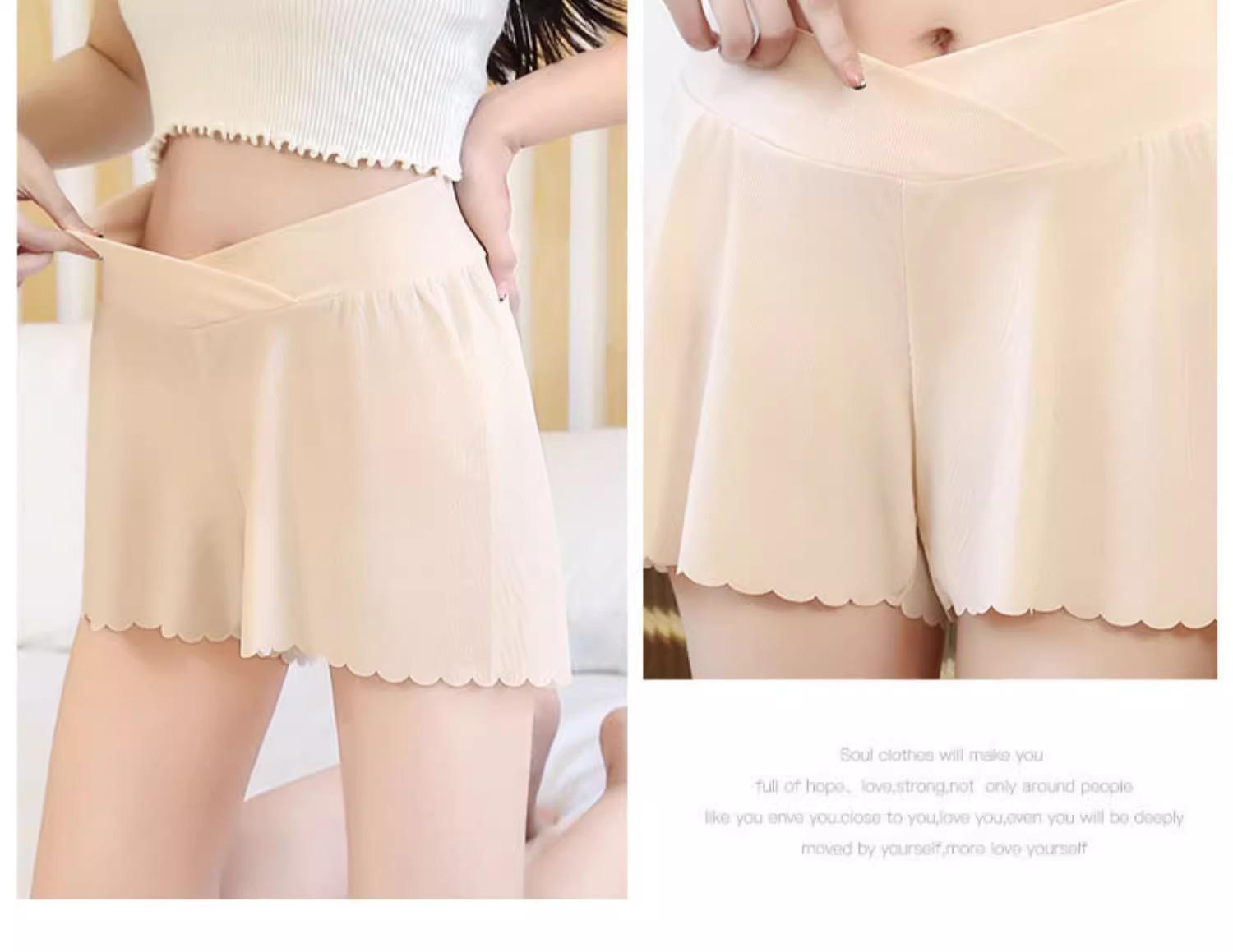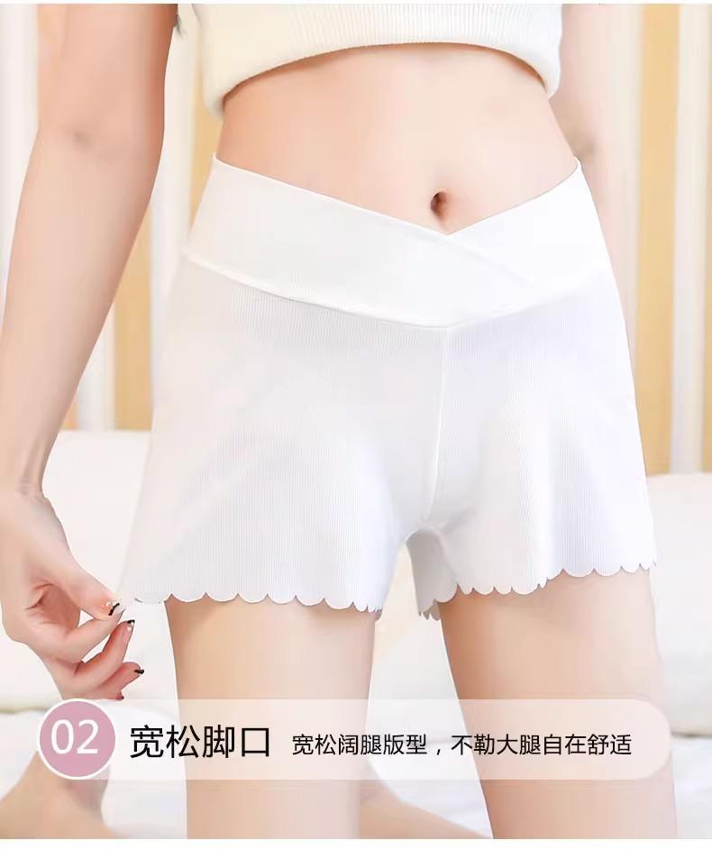 임산부 아이스 실크 안전 바지는 낮은 허리 복부 지원 반바지 여성의 여름 얇은 안티 라이트 아우터 착용 3 부작 바지 새로운