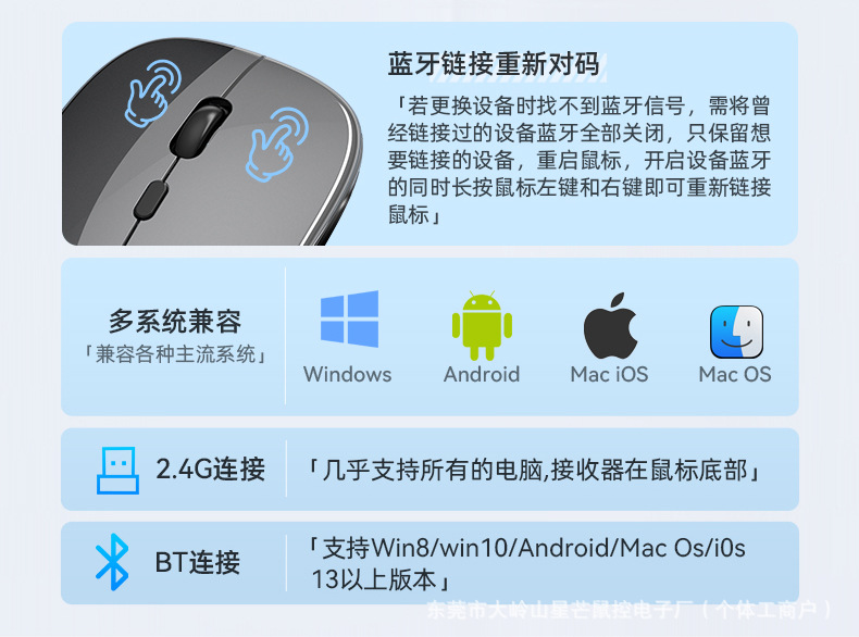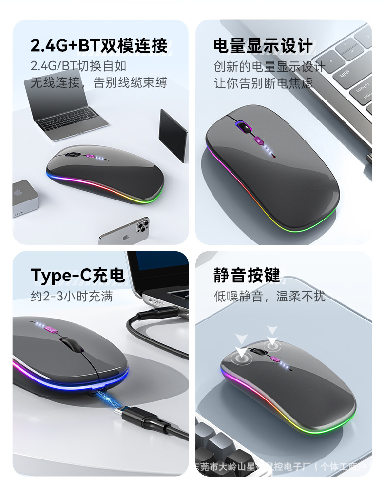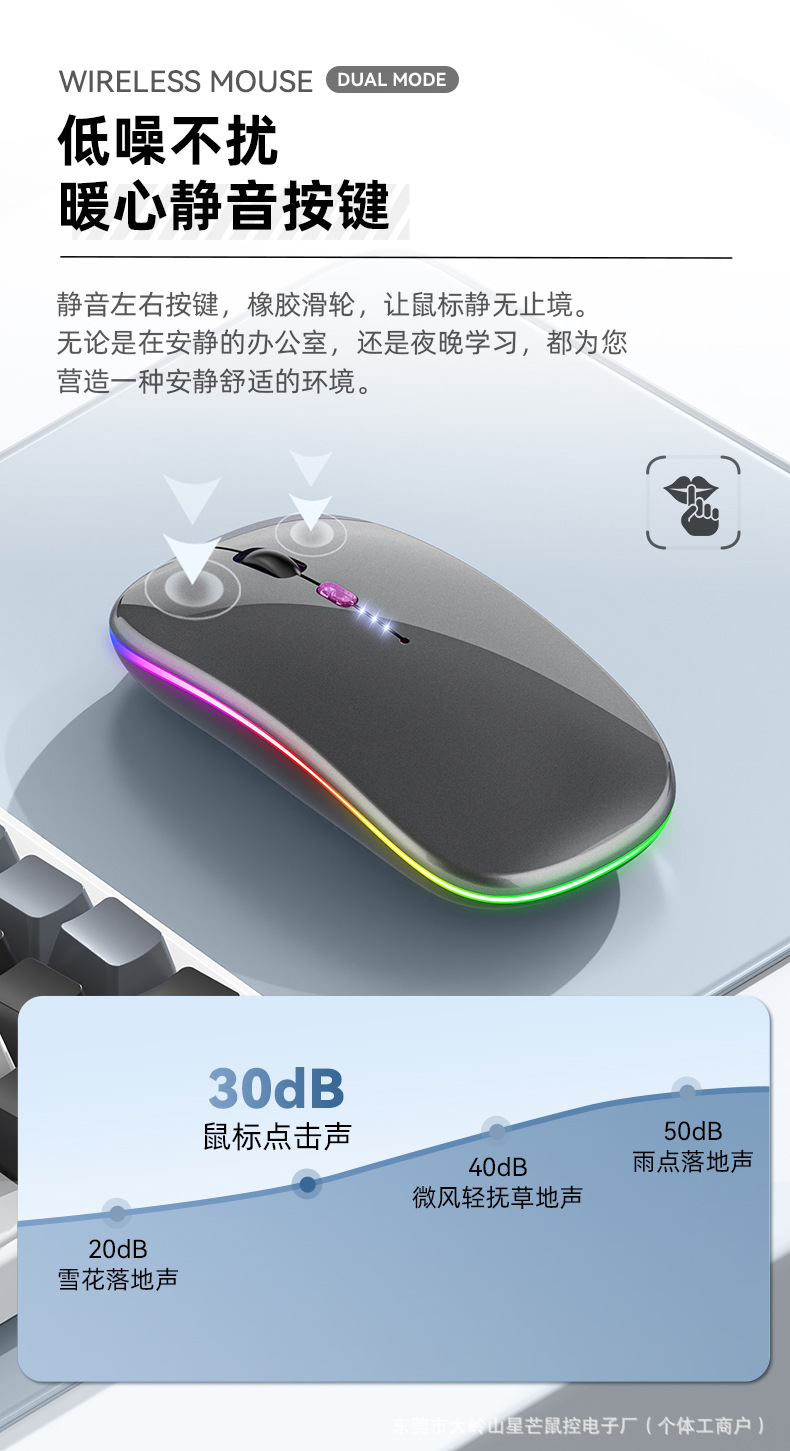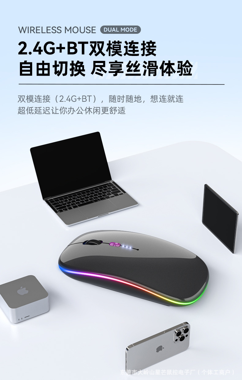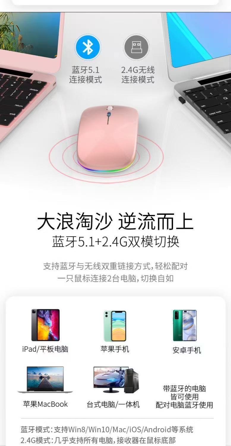 공장 재고 국경 간 블루투스 발광 마우스 음소거 초박형 오피스 태블릿 비즈니스 듀얼 모드 무선 마우스스토어 가기