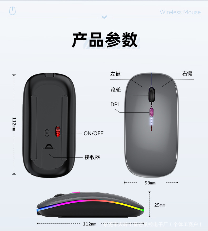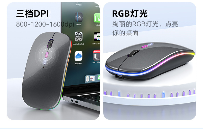 공장 재고 국경 간 블루투스 발광 마우스 음소거 초박형 오피스 태블릿 비즈니스 듀얼 모드 무선 마우스