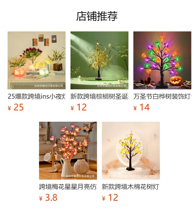 새로운 크로스보더 야간등 인스 크리스마스 트리등 기숙사 장식등 분위기등 침대 옆 테이블등 화분등 트리등스토어 가기