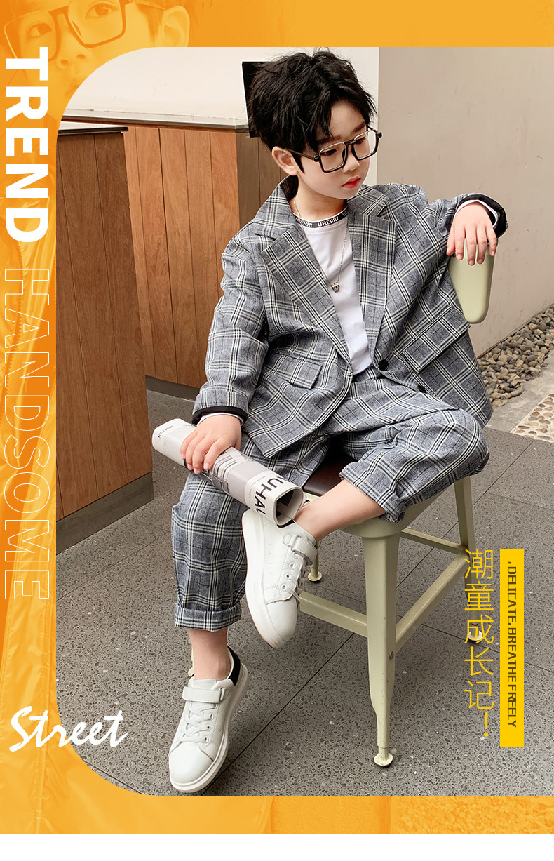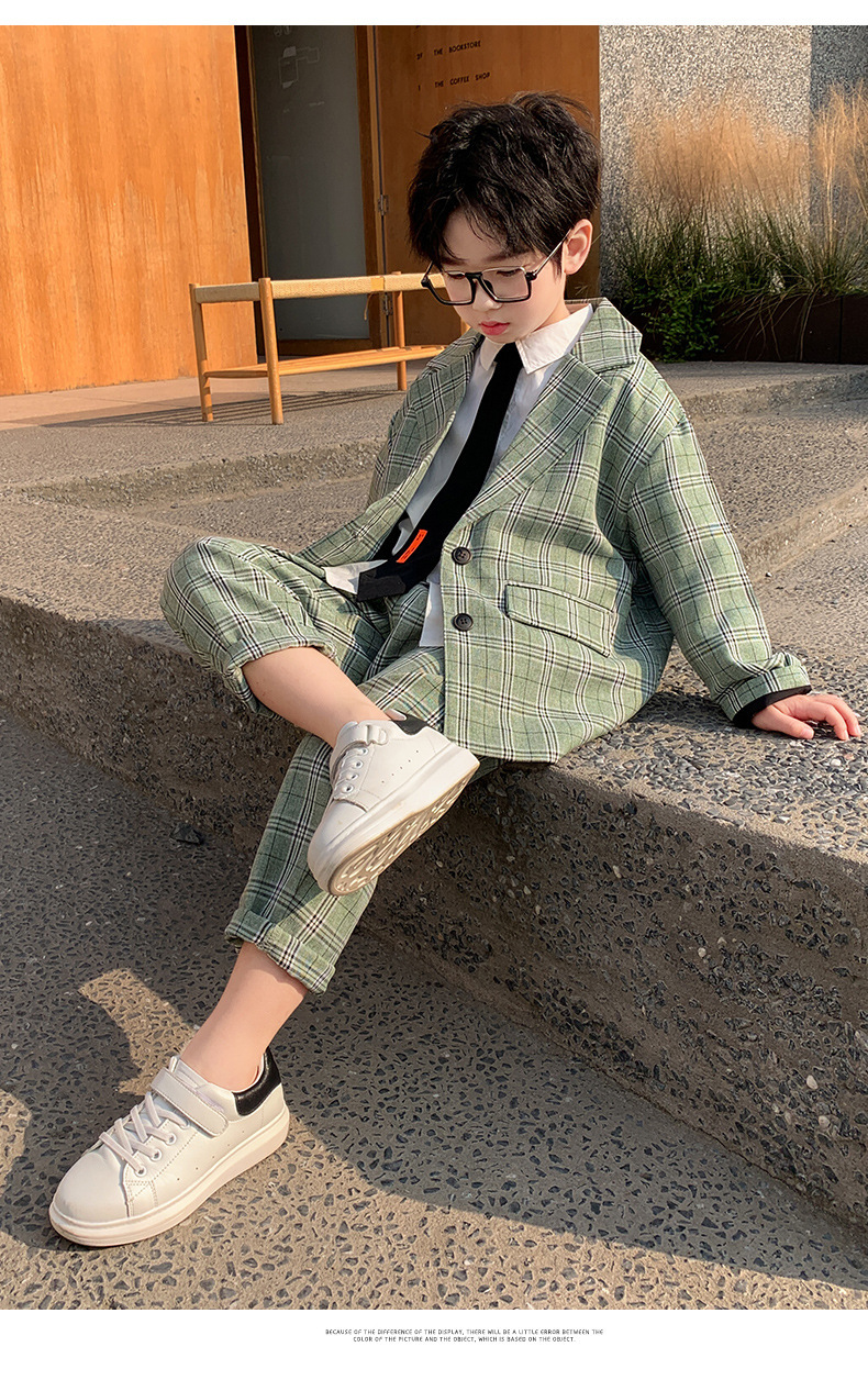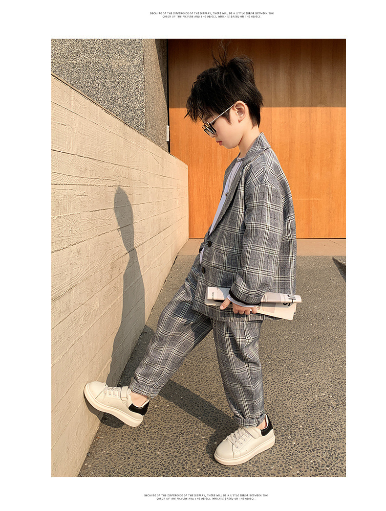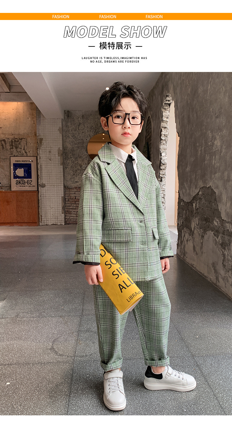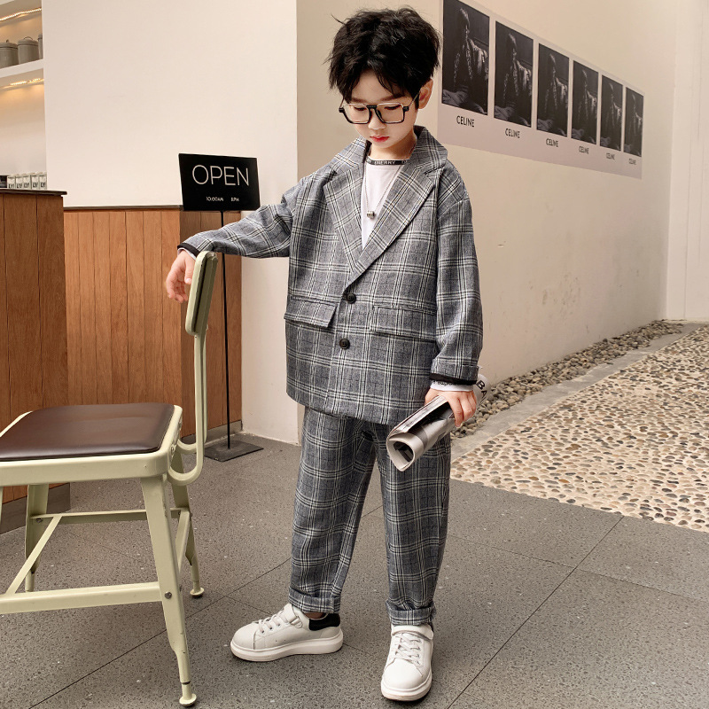 아마존 봄과 가을 소년의 격자 무늬 긴 소매 세트 세트 소년의 빅 보이의 유럽과 미국 원피스 투피스 세트