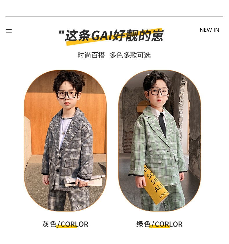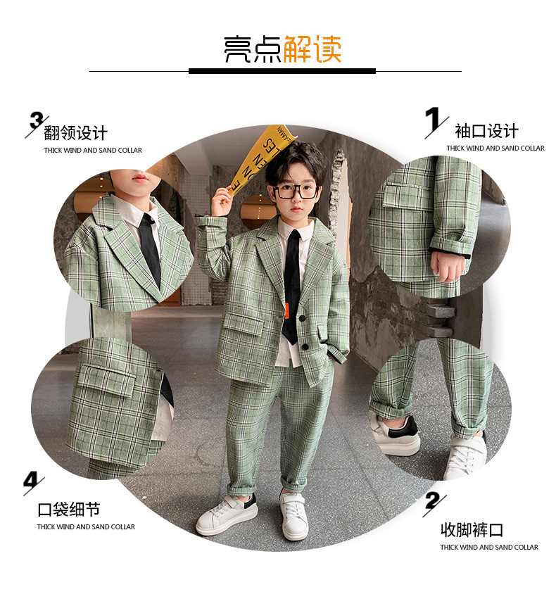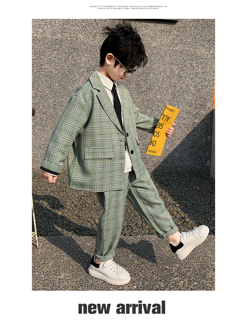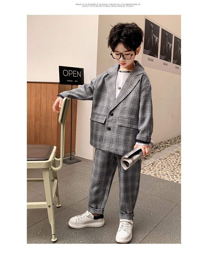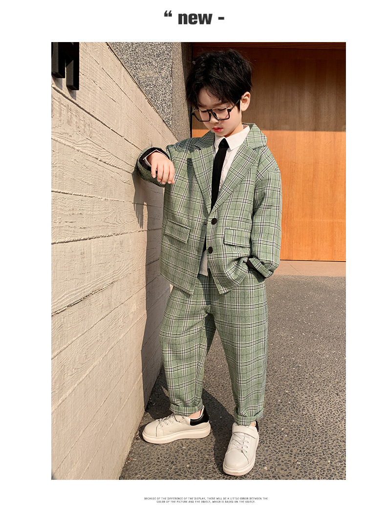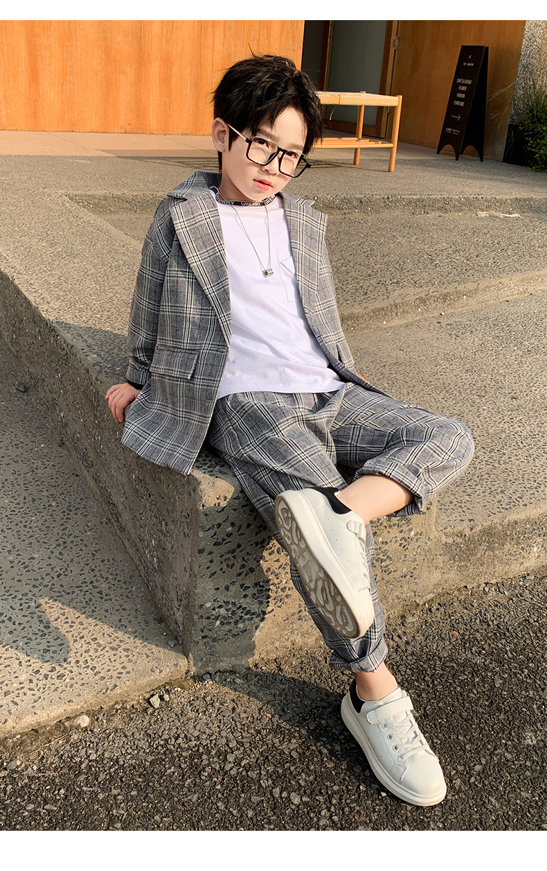 아마존 봄과 가을 소년의 격자 무늬 긴 소매 세트 세트 소년의 빅 보이의 유럽과 미국 원피스 투피스 세트