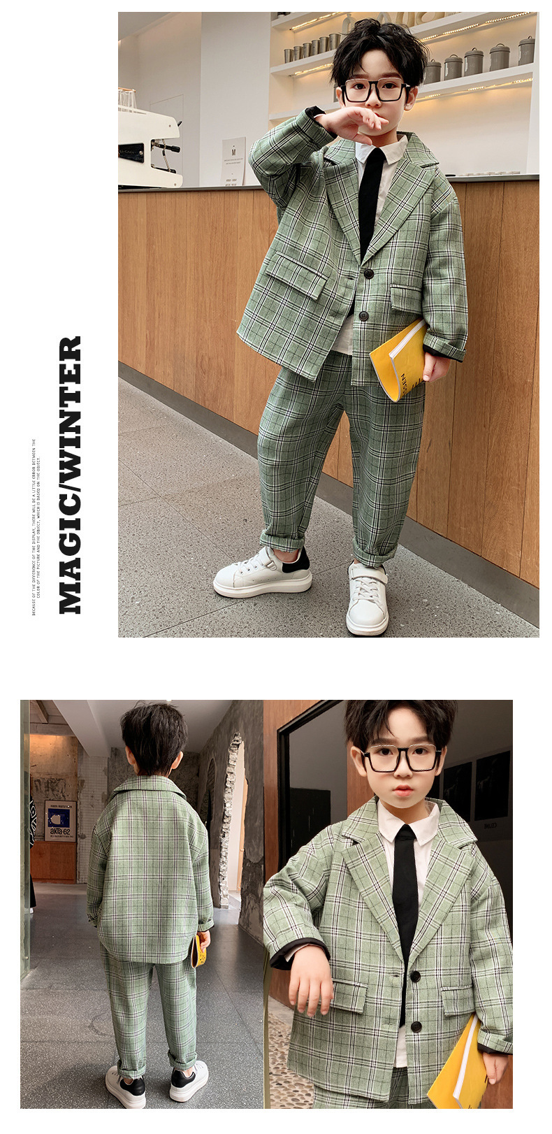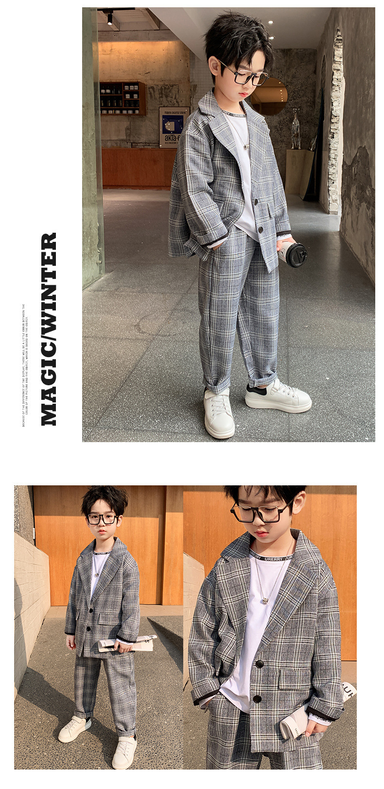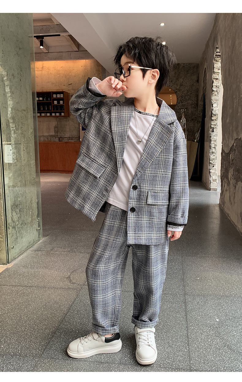 아마존 봄과 가을 소년의 격자 무늬 긴 소매 세트 세트 소년의 빅 보이의 유럽과 미국 원피스 투피스 세트스토어 가기