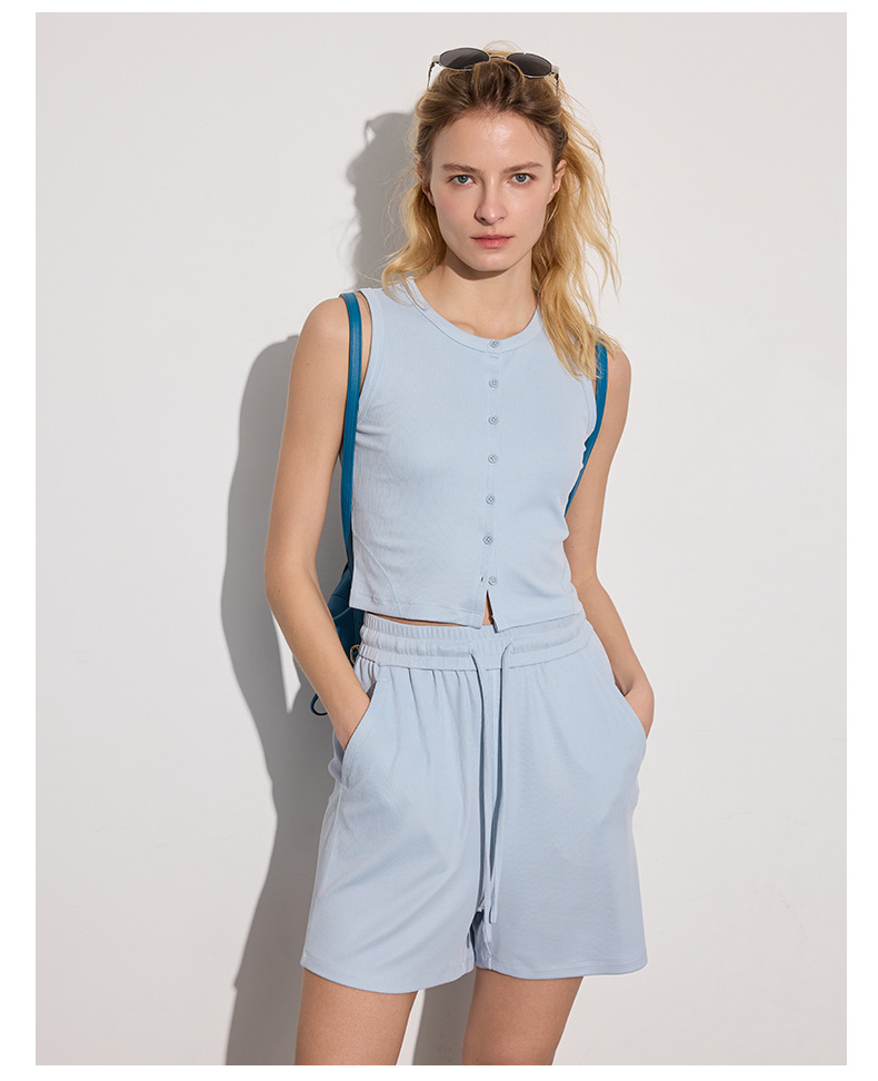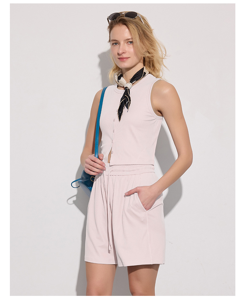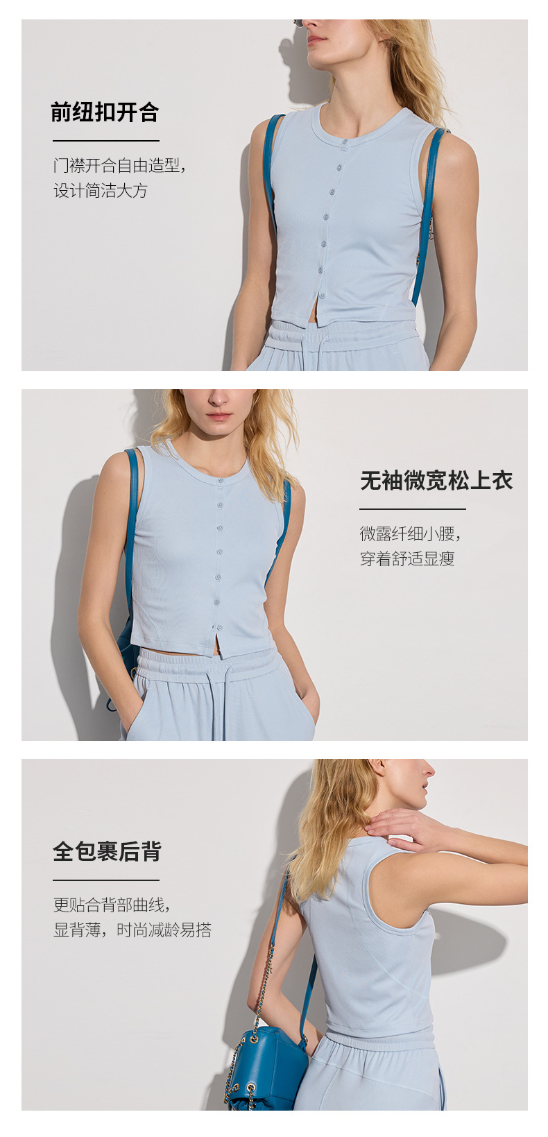 봄과 여름 새로운 요가 옷 여성 캐주얼 간단한 조끼 솔리드 컬러 슬림 민소매 탑 버튼 카디건 피트니스 옷
