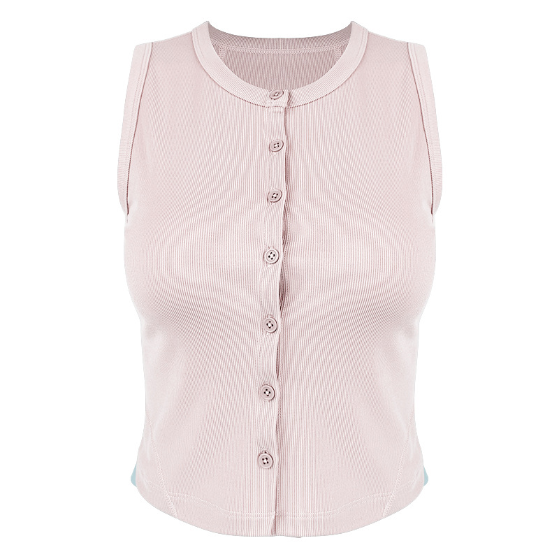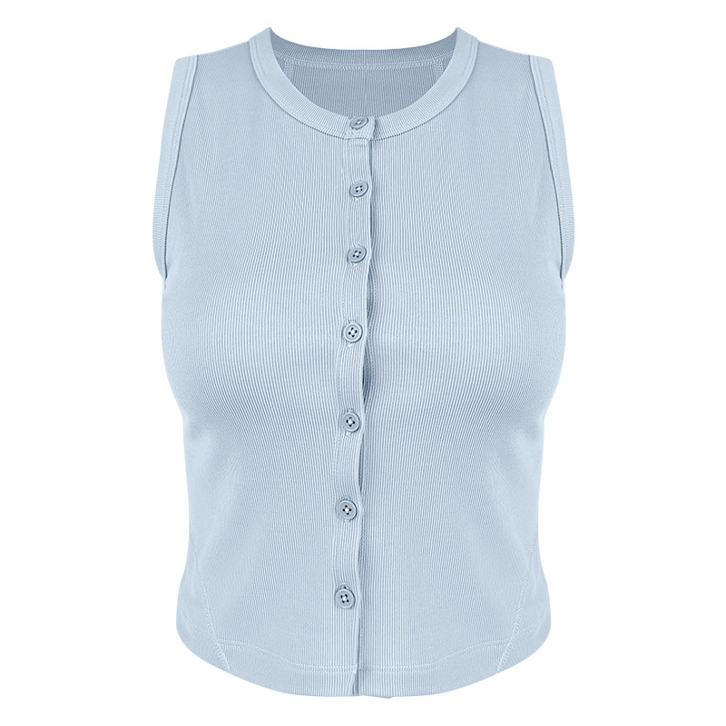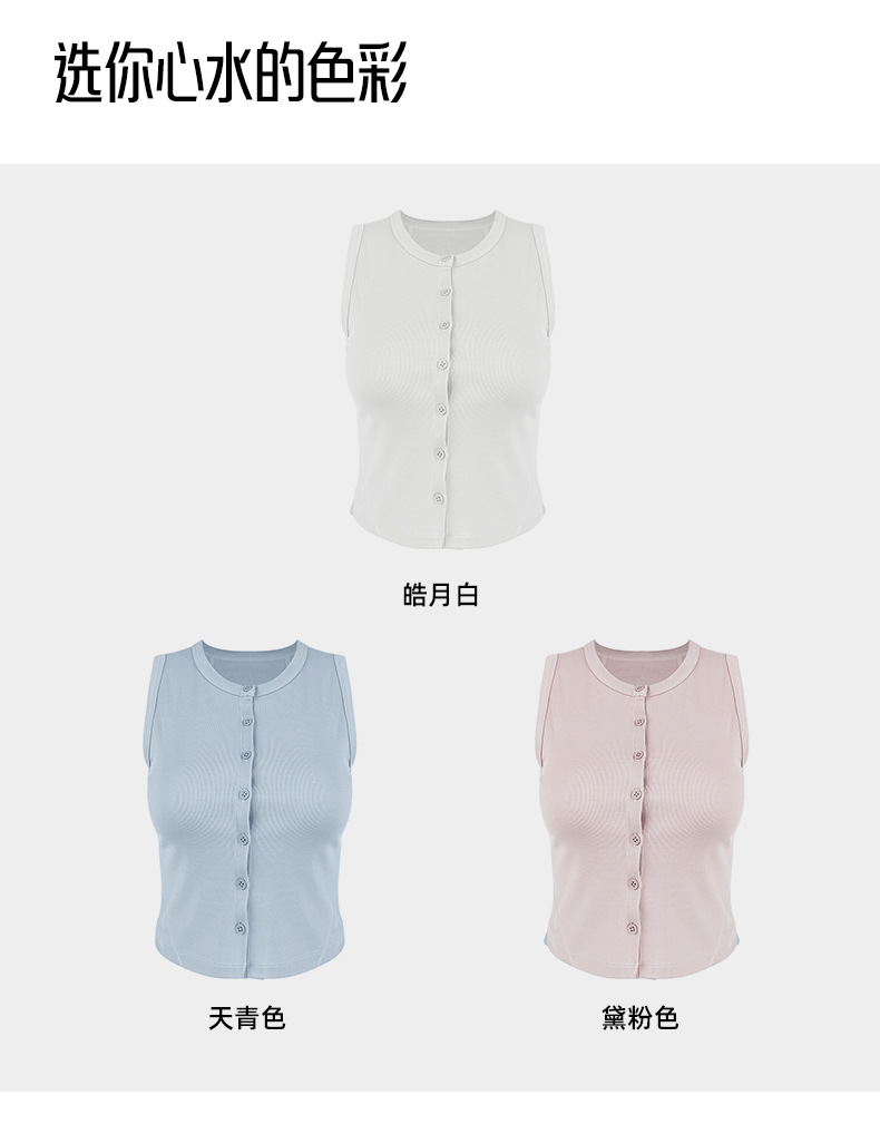 봄과 여름 새로운 요가 옷 여성 캐주얼 간단한 조끼 솔리드 컬러 슬림 민소매 탑 버튼 카디건 피트니스 옷스토어 가기