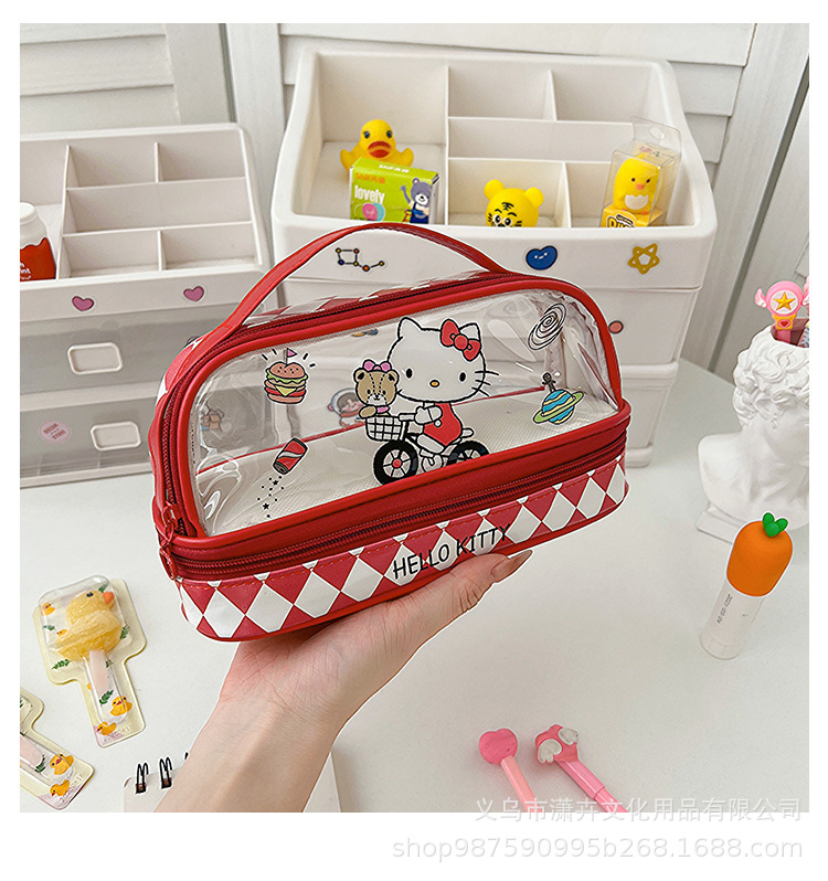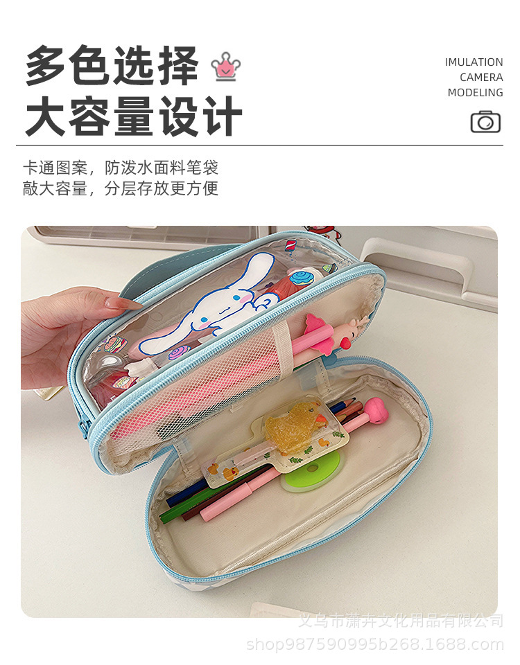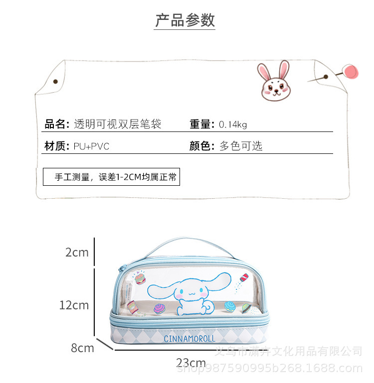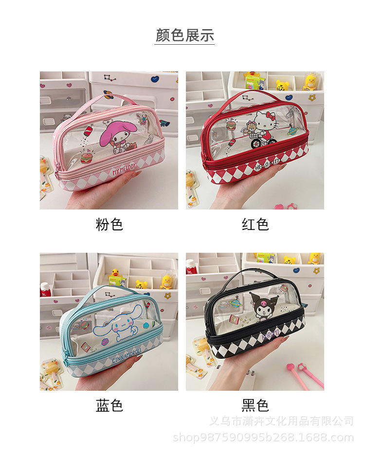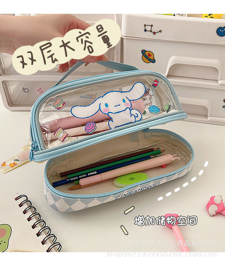 더블 레이어 투명 연필 케이스 산리오 3 차원 대용량 초등 학교 문구 가방 휴대용 만화 연필 케이스 새로운 스타일스토어 가기