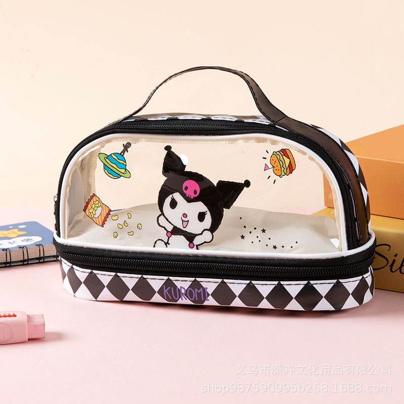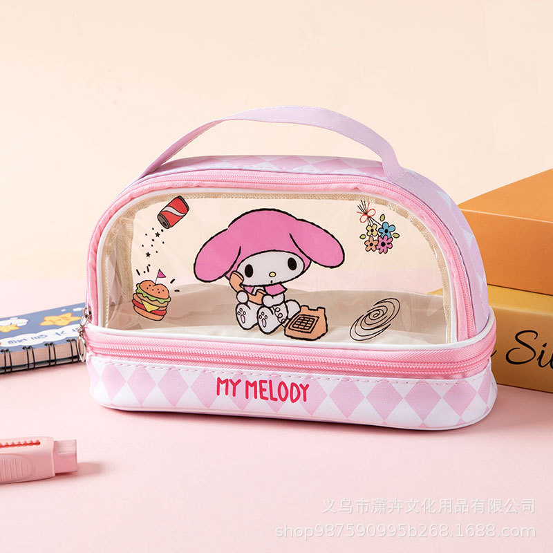 더블 레이어 투명 연필 케이스 산리오 3 차원 대용량 초등 학교 문구 가방 휴대용 만화 연필 케이스 새로운 스타일