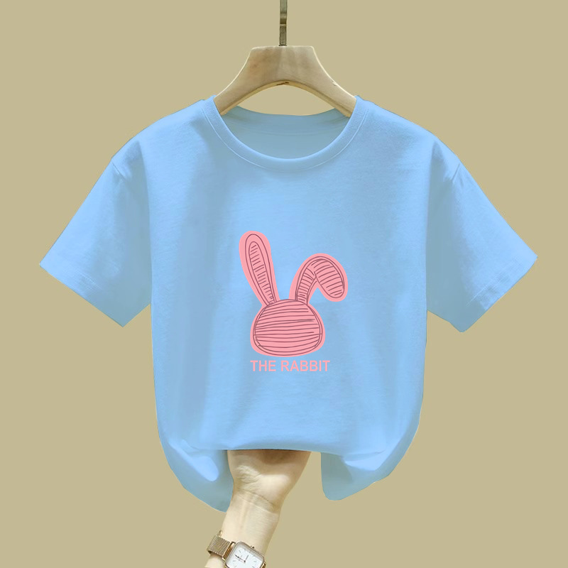 2411 # 여자 반소매 티셔츠 새 여름 핑크 아동복 면반 소매 티셔츠 옷 어린이 티셔츠 여름 옷