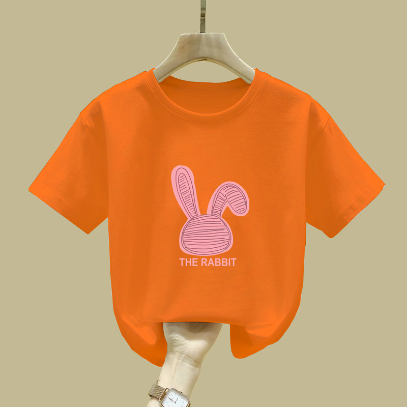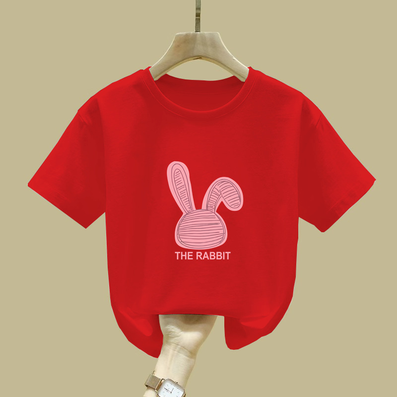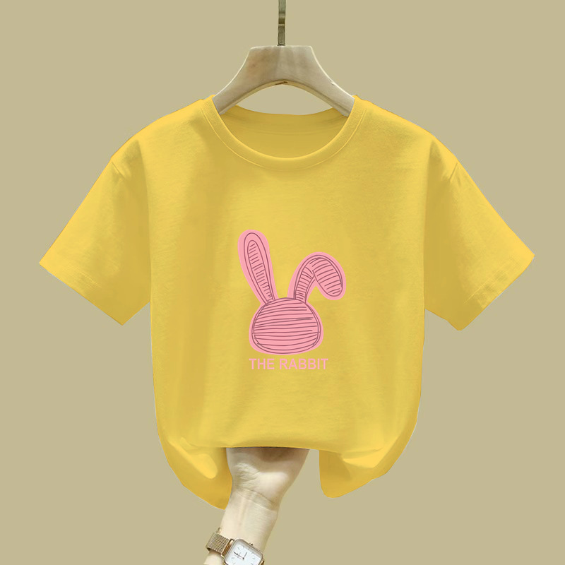 2411 # 여자 반소매 티셔츠 새 여름 핑크 아동복 면반 소매 티셔츠 옷 어린이 티셔츠 여름 옷스토어 가기