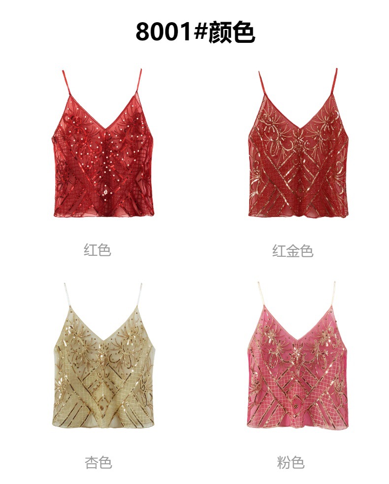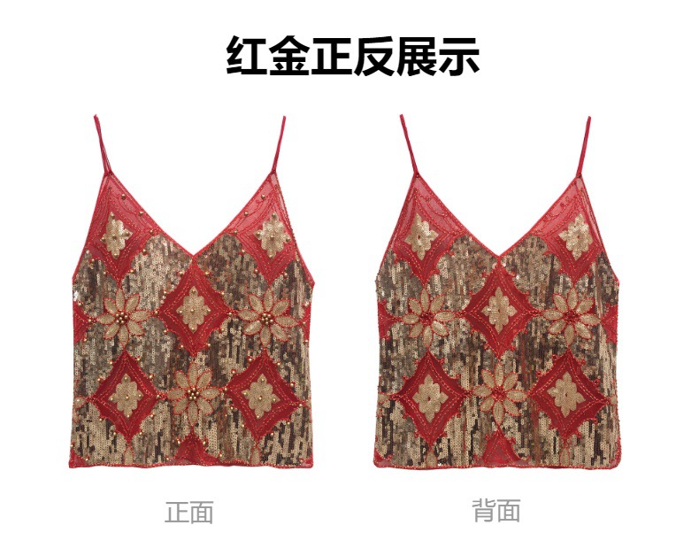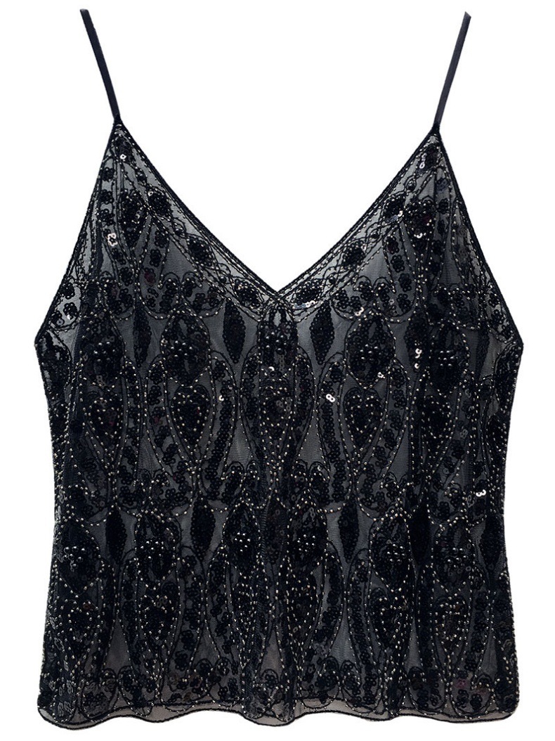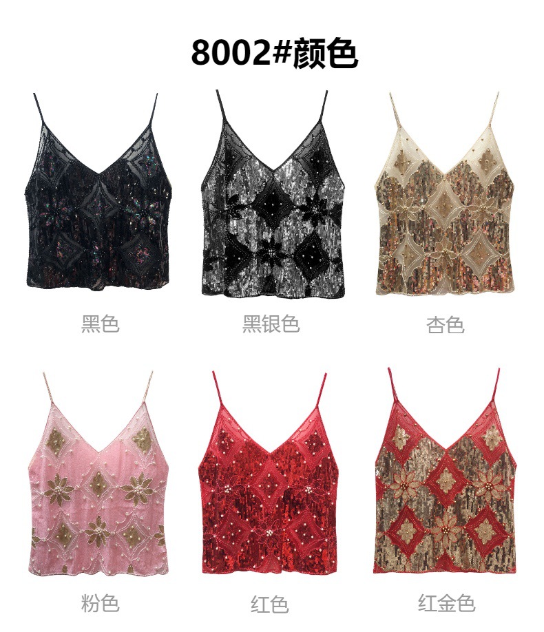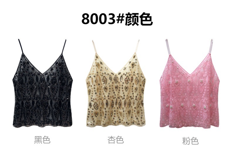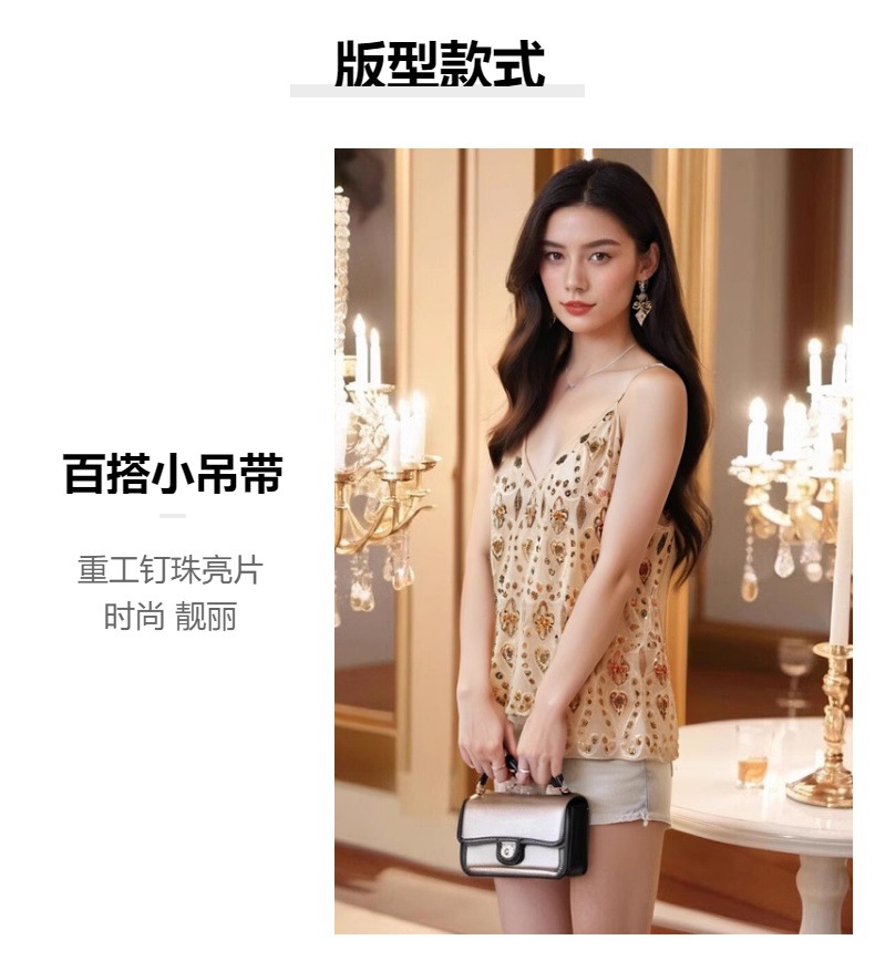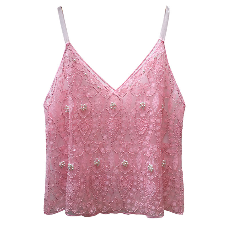 유럽과 미국의 중공업 Sequin Camisole 여성의 여름 디자인 센스 아우터웨어 태국 달콤한 스파이스 소녀 비즈 민소매 조끼 탑
