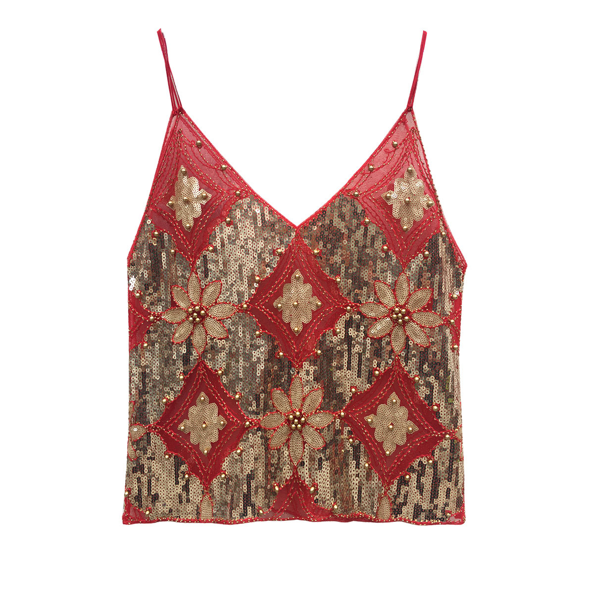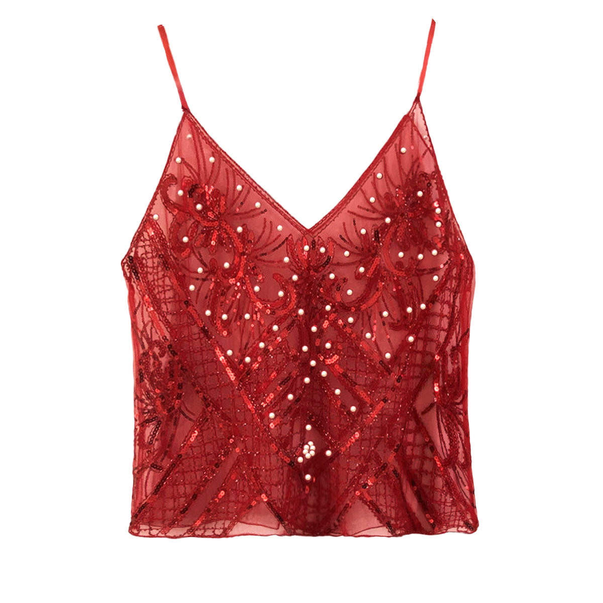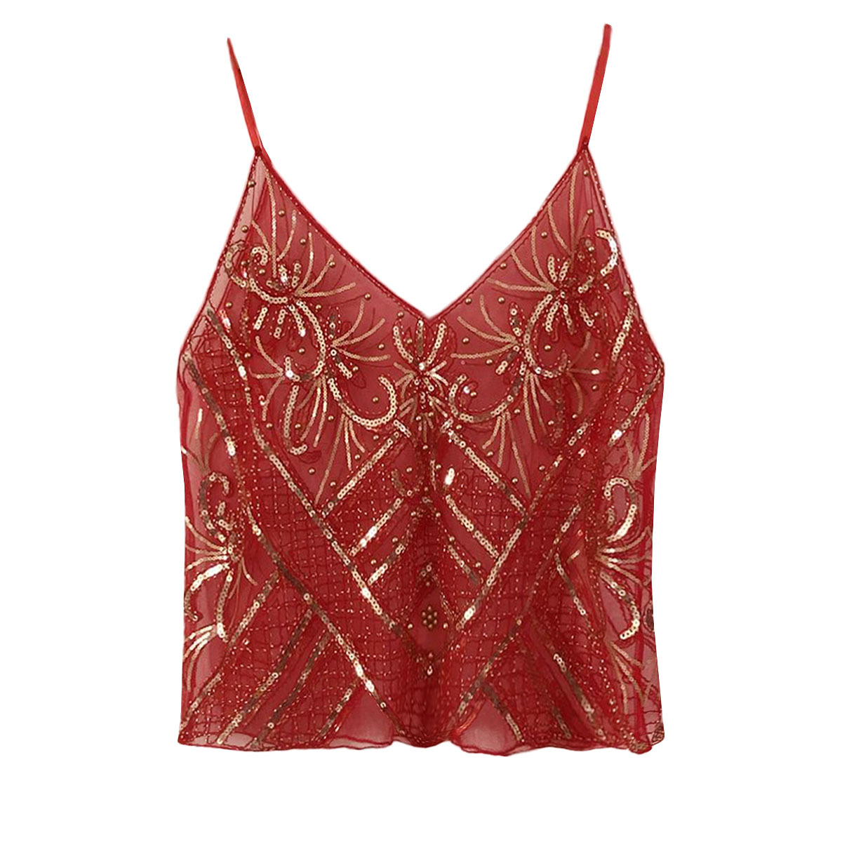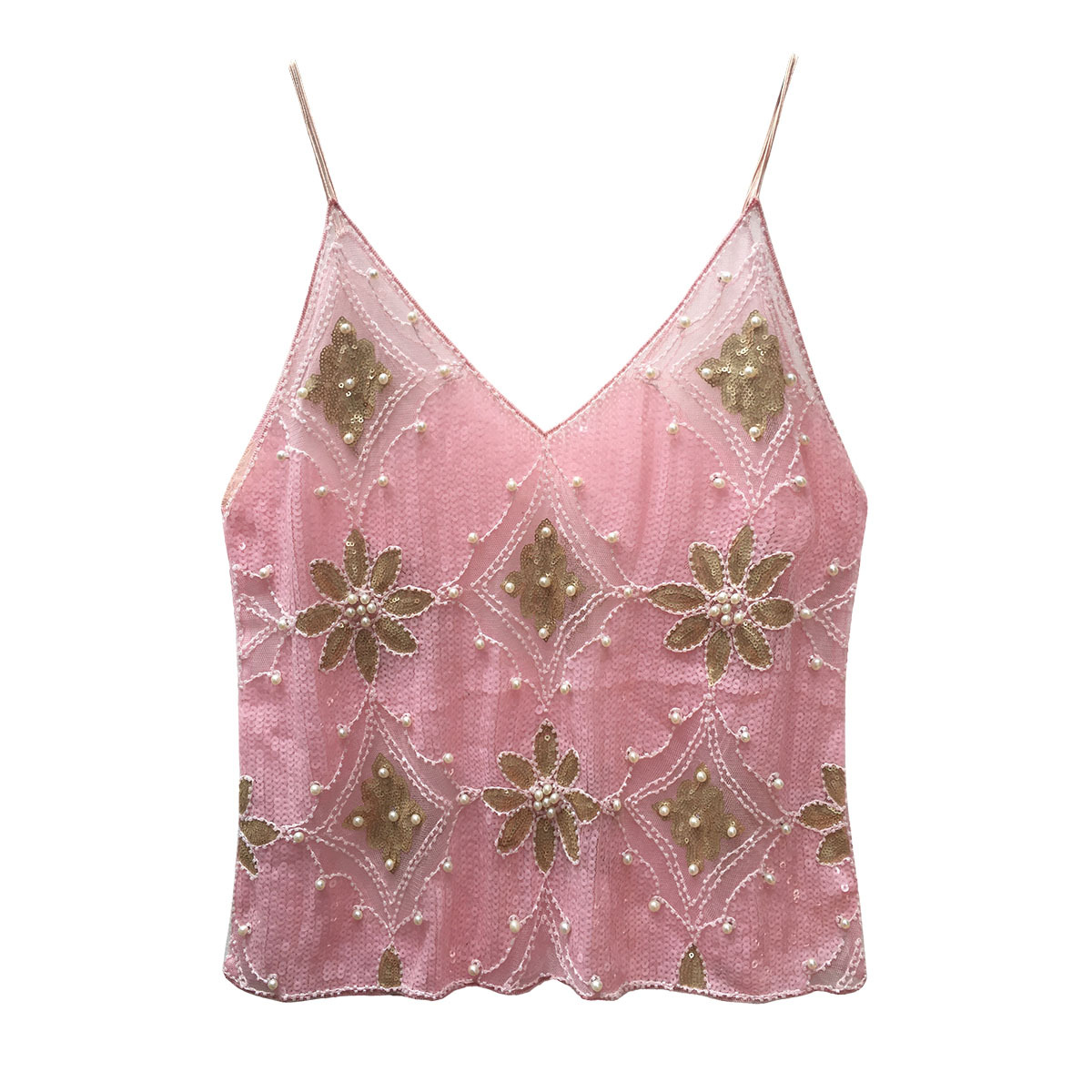 유럽과 미국의 중공업 Sequin Camisole 여성의 여름 디자인 센스 아우터웨어 태국 달콤한 스파이스 소녀 비즈 민소매 조끼 탑