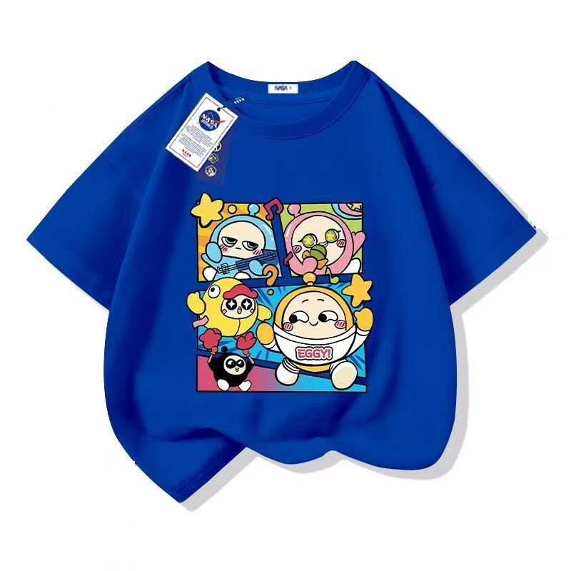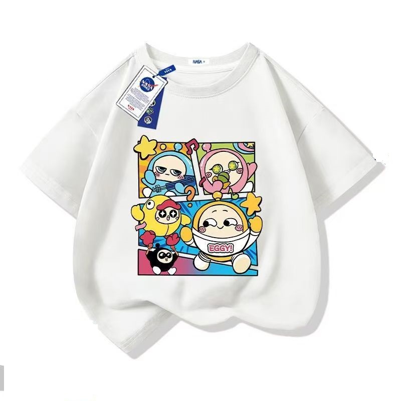 어린이 만화 티셔츠 2025 소년 여름 새로운 국경 간 아동 의류 바스 에그 파티 느슨한 코튼 탑