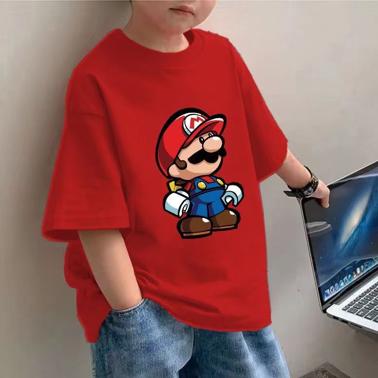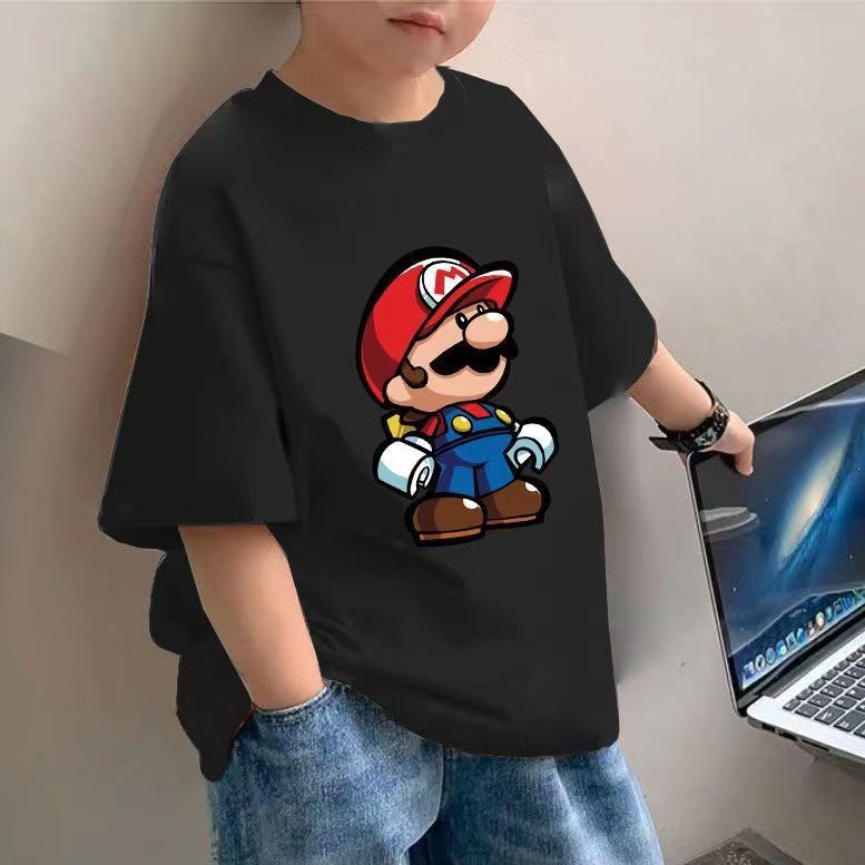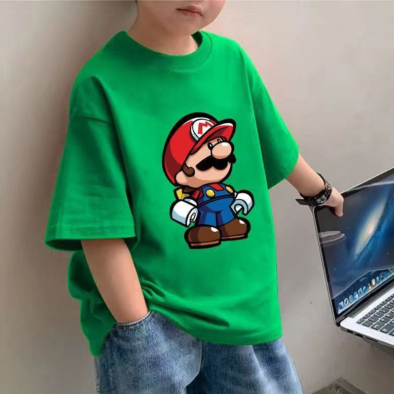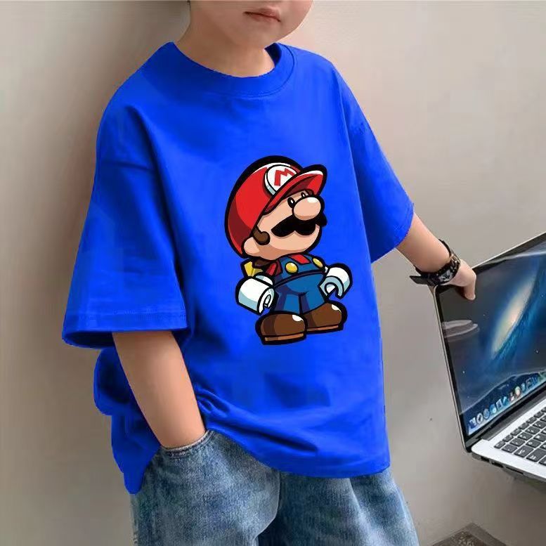 어린이 만화 티셔츠 2025 소년 여름 새로운 국경 간 아동 의류 바스 에그 파티 느슨한 코튼 탑스토어 가기
