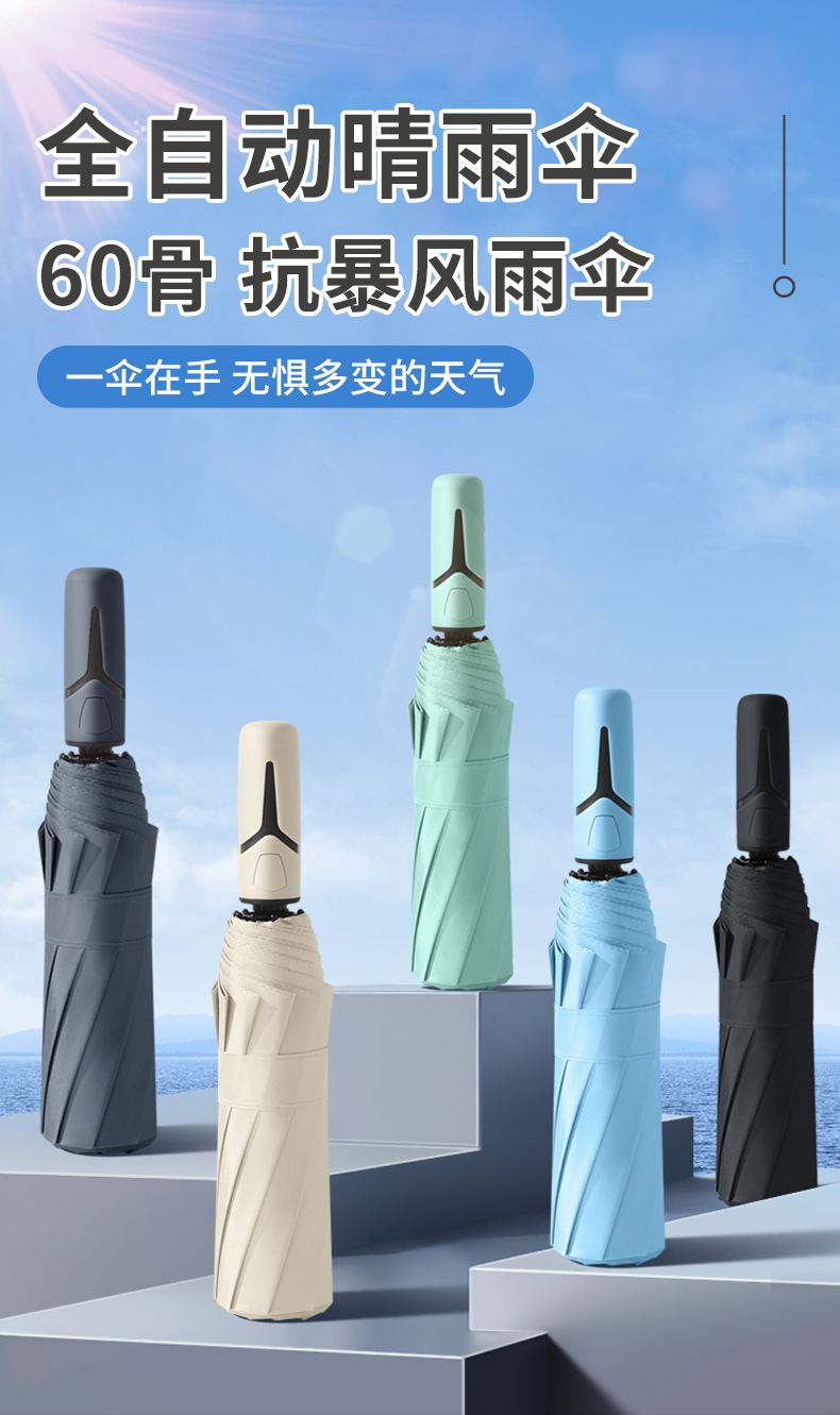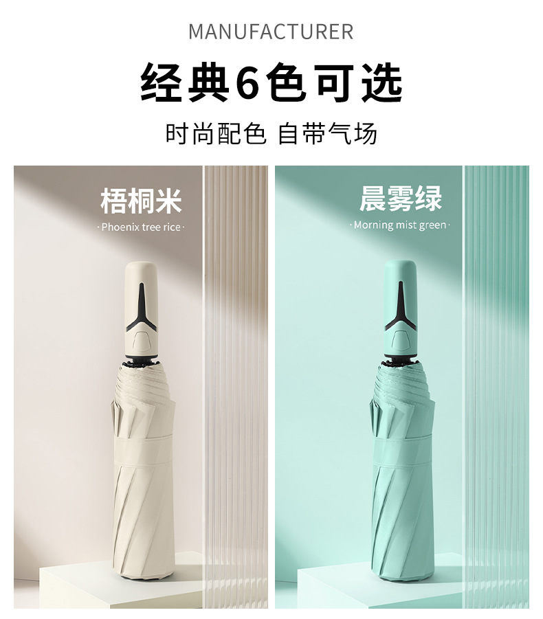 완전 자동 우산 10 뼈 단색 비닐 우산 남성과 여성의 휴대용 자동 태양 보호 우산스토어 가기