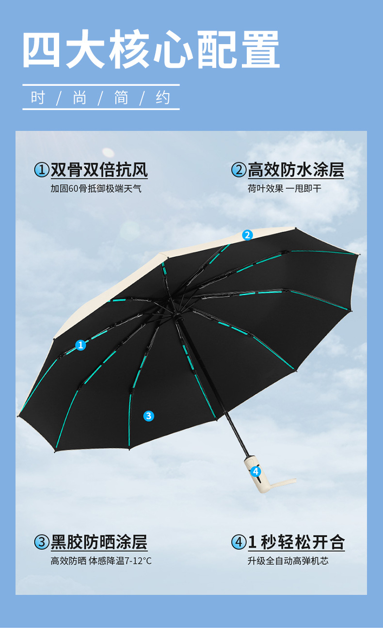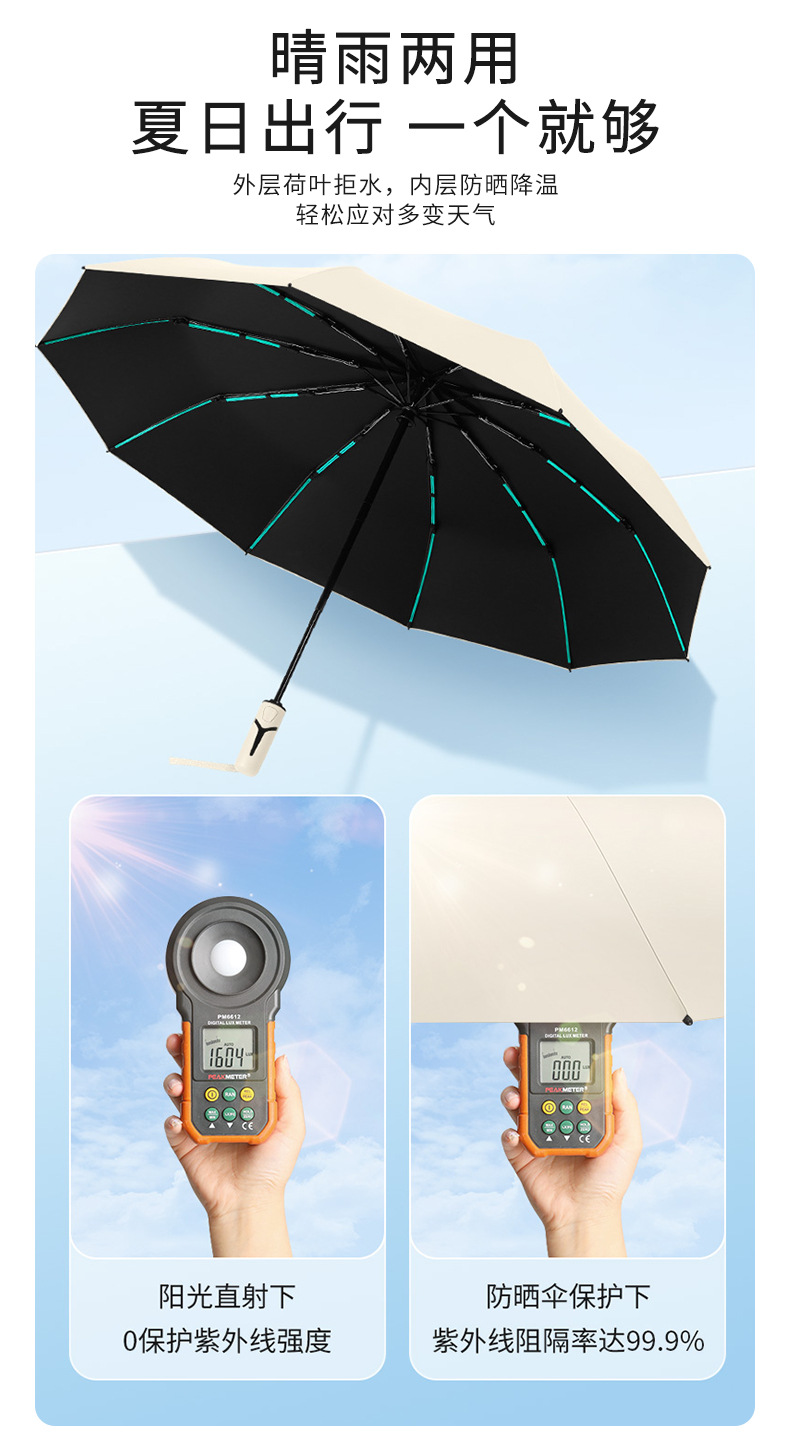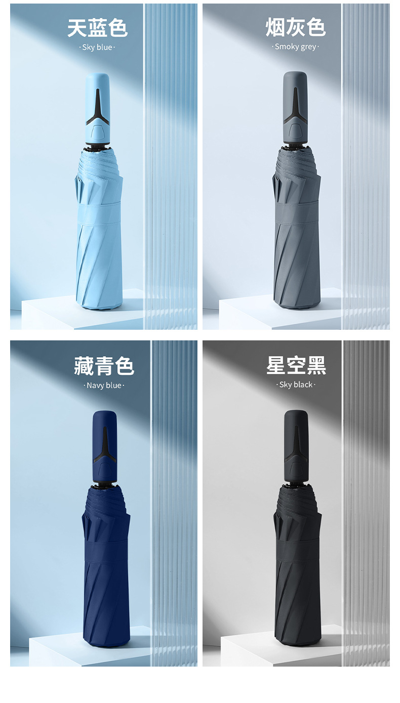 완전 자동 우산 10 뼈 단색 비닐 우산 남성과 여성의 휴대용 자동 태양 보호 우산