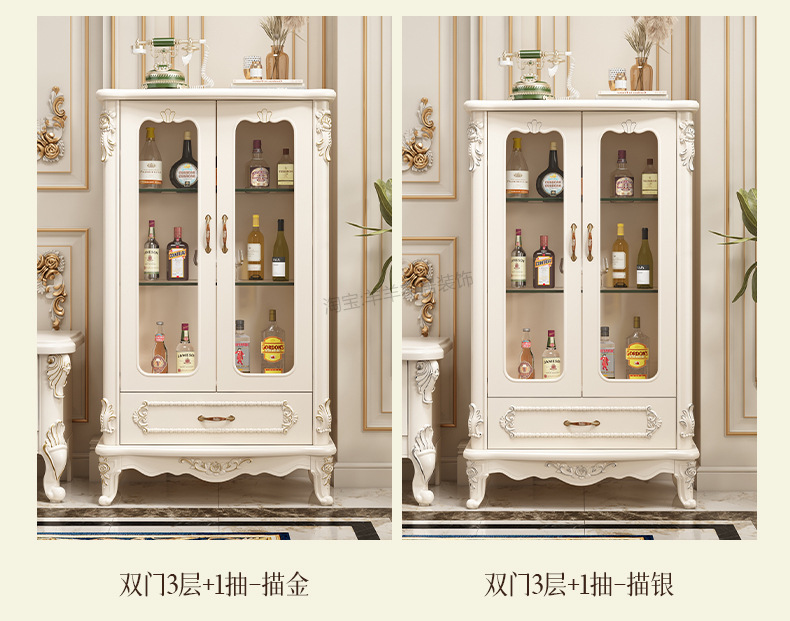 • 이중 도어 와인 캐비닛 아이보리 화이트 골드