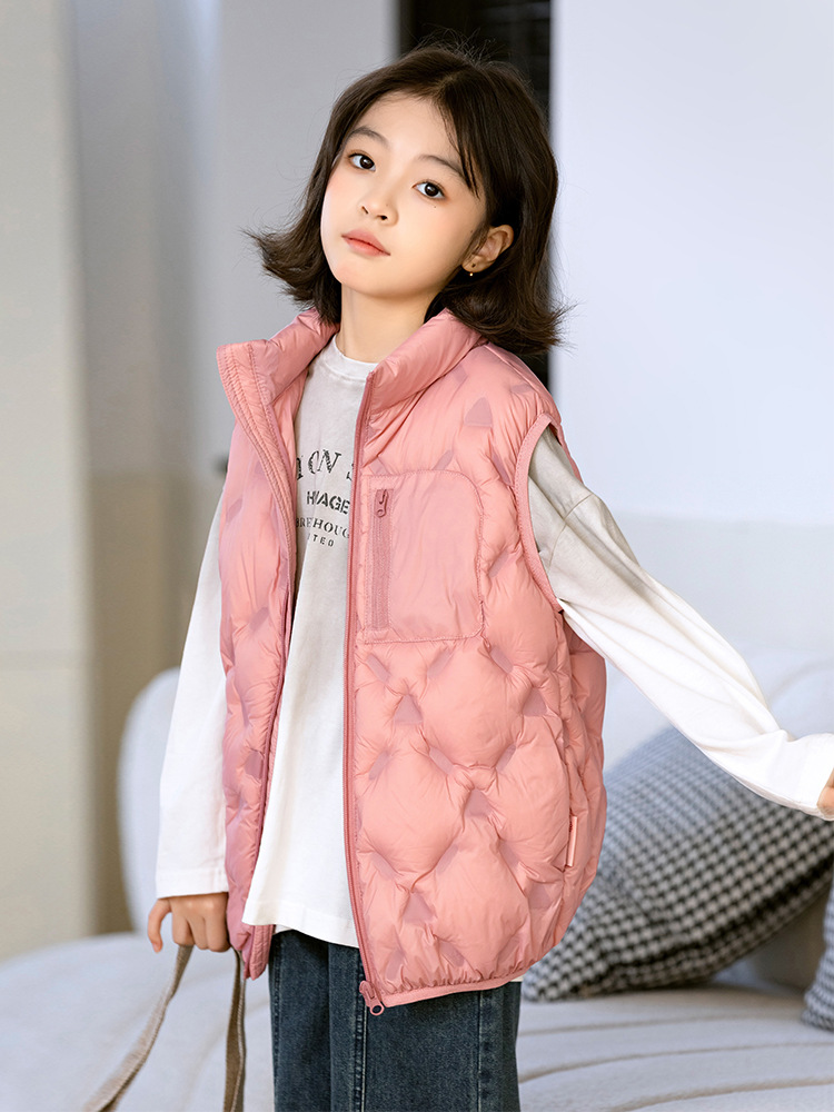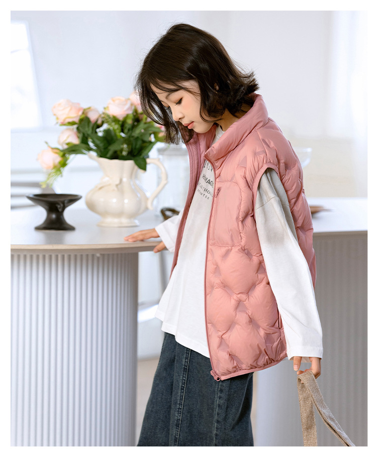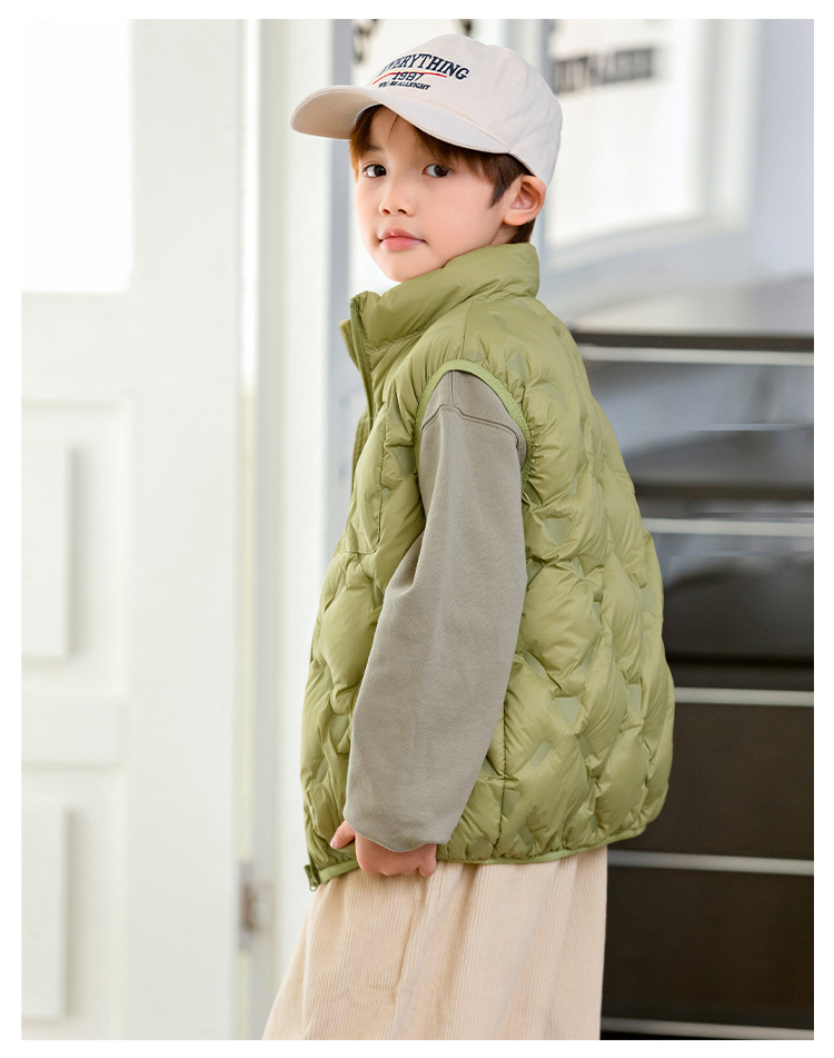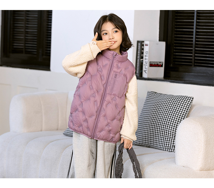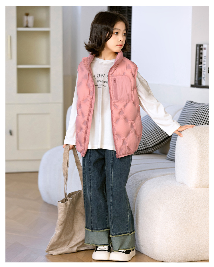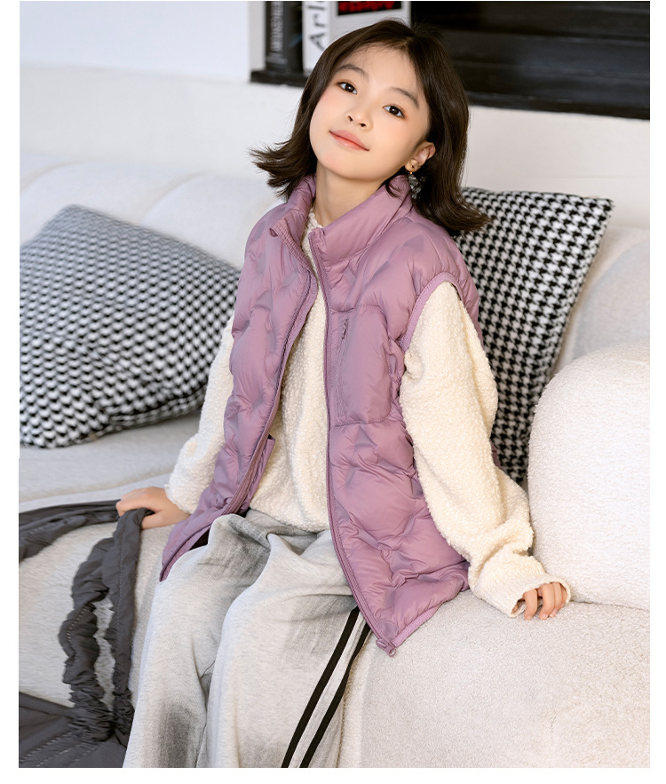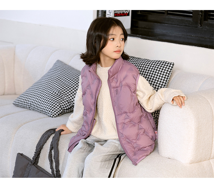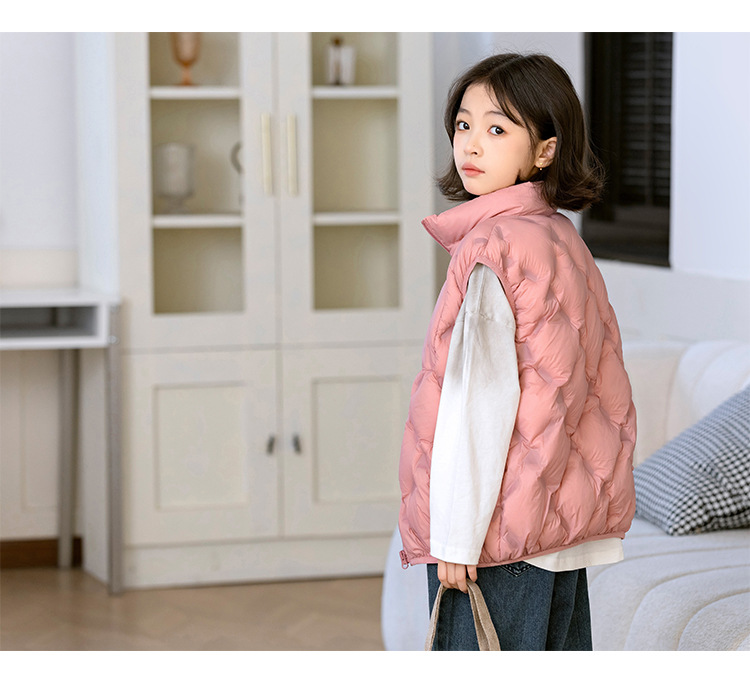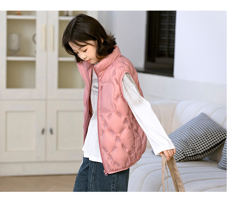90 오리 다운 어린이 수직 칼라 얇은 다운 조끼 2025 새로운 여자 소년 어린이 다운 조끼스토어 가기