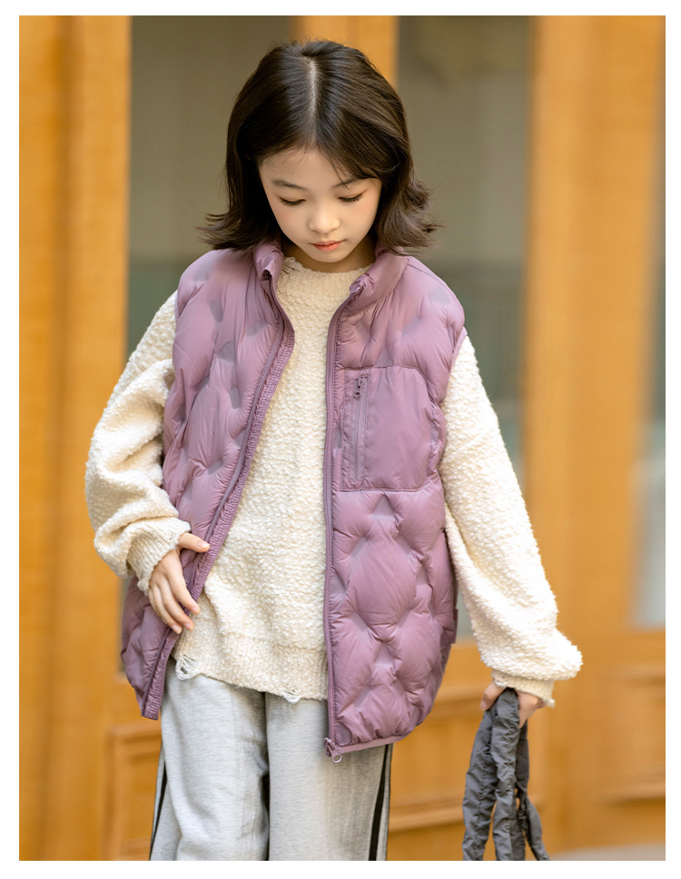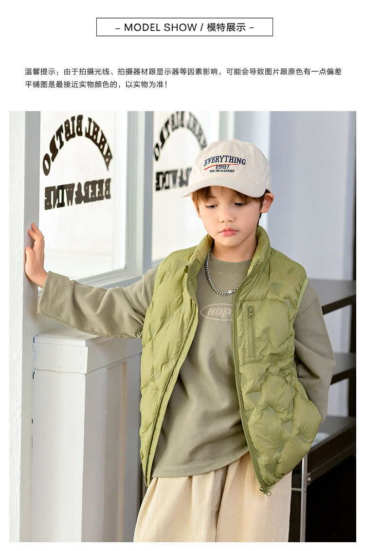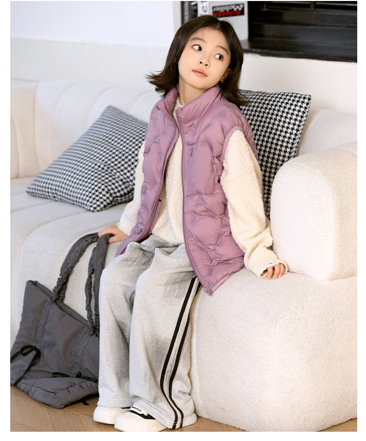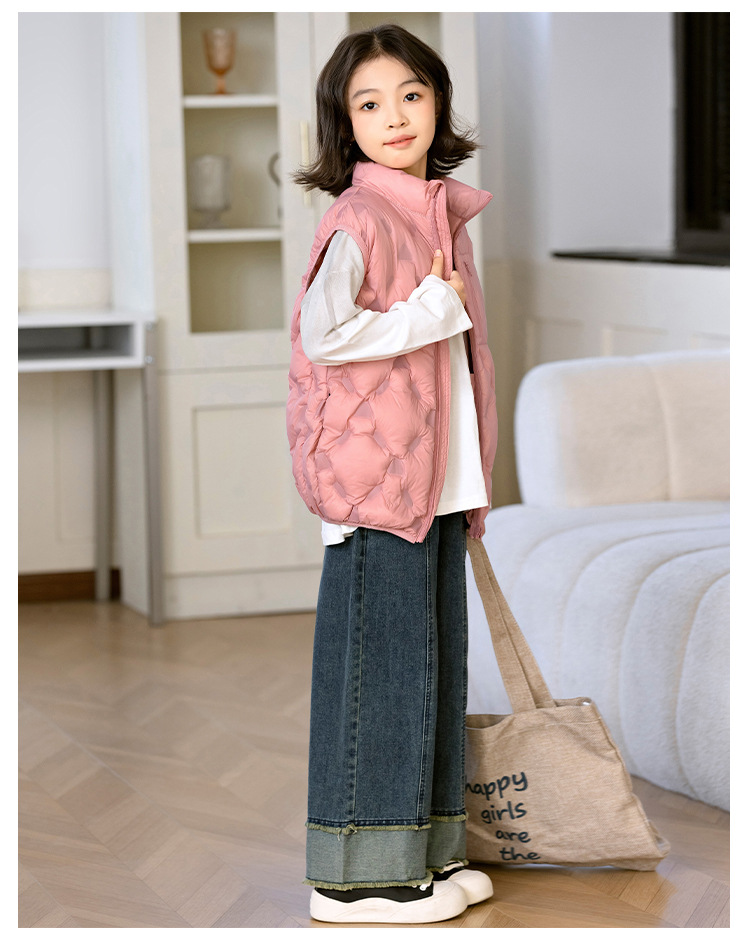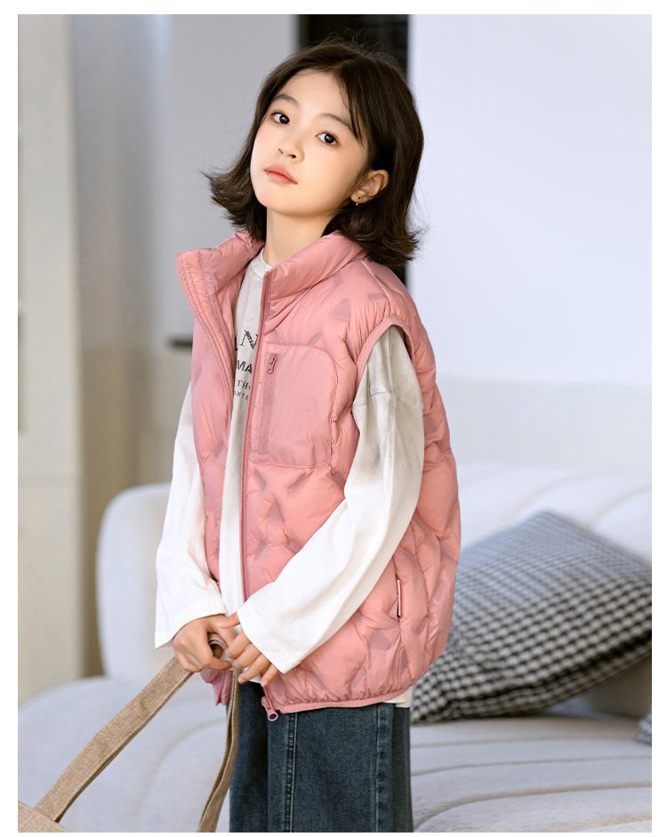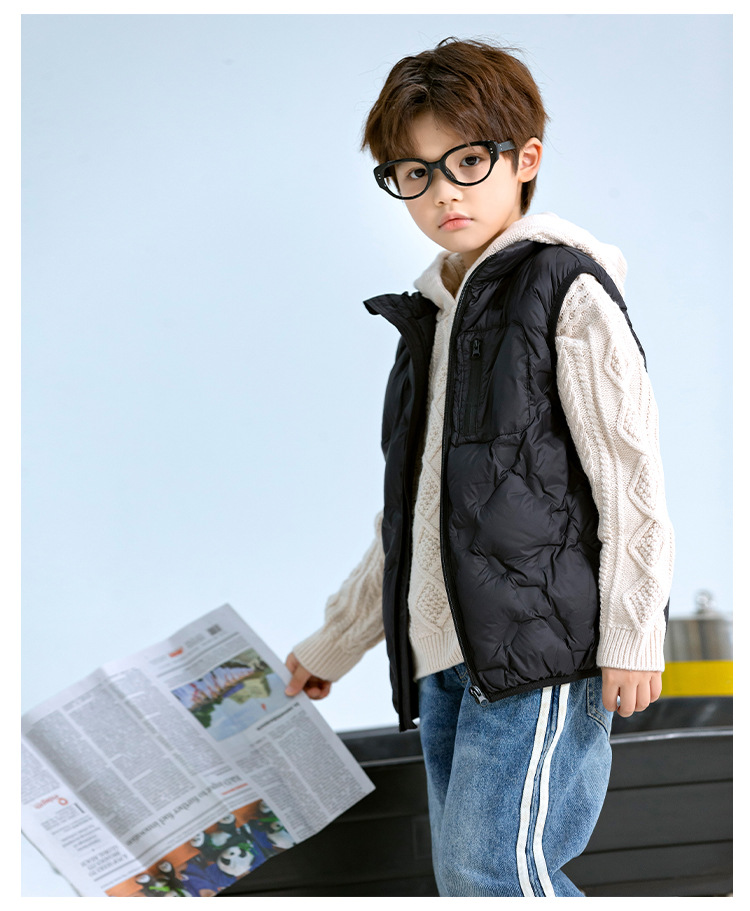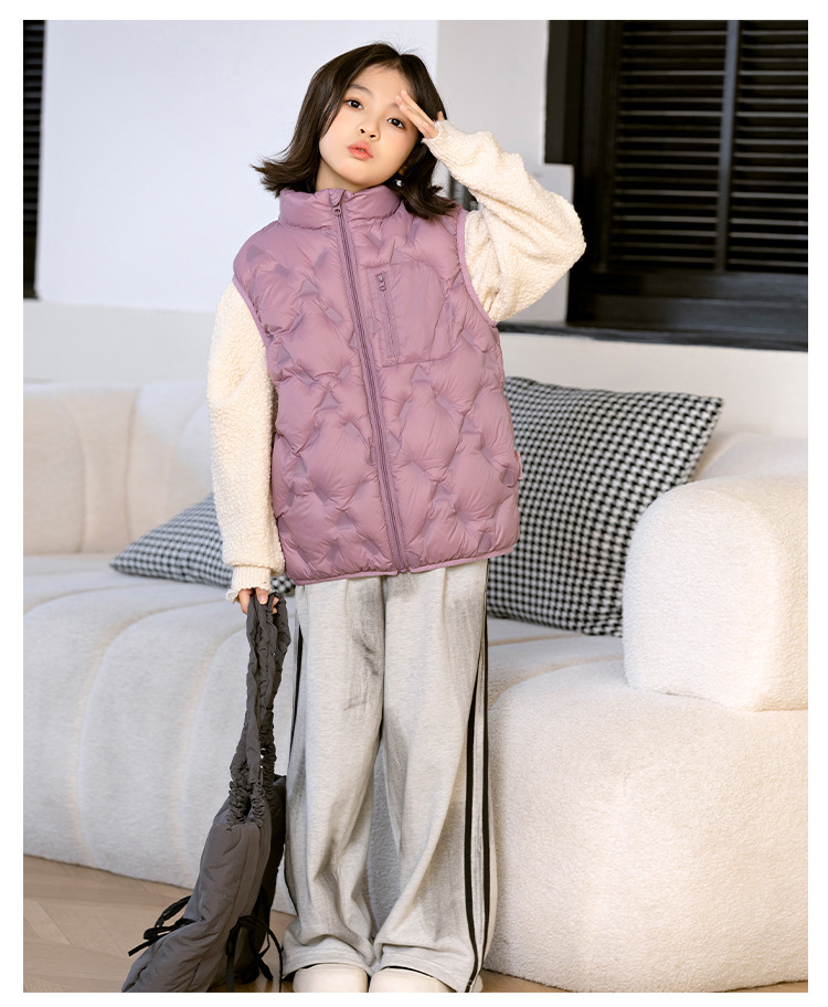 90 오리 다운 어린이 수직 칼라 얇은 다운 조끼 2025 새로운 여자 소년 어린이 다운 조끼스토어 가기