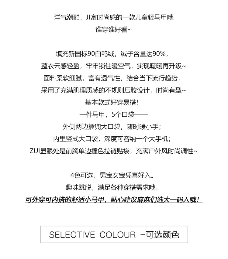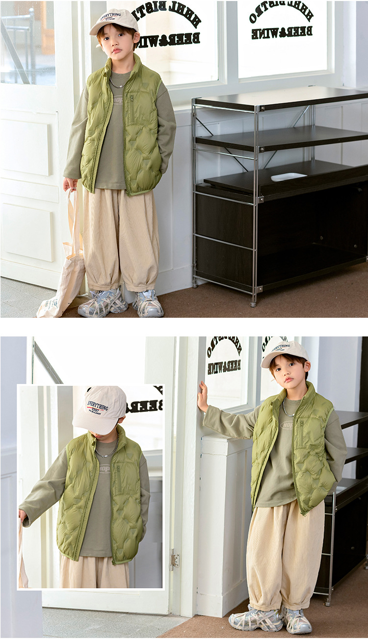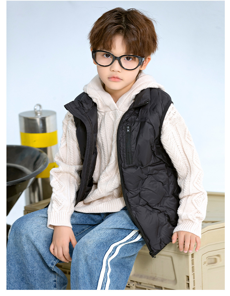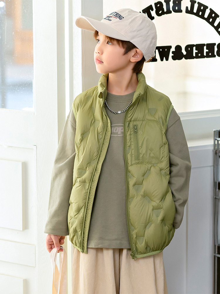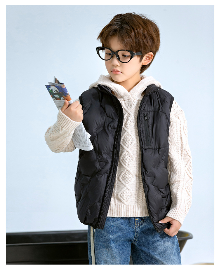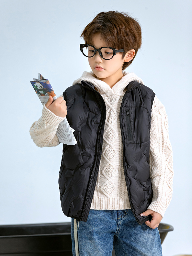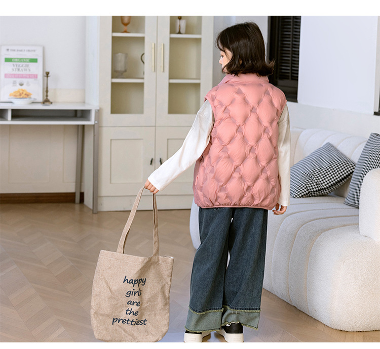 90 오리 다운 어린이 수직 칼라 얇은 다운 조끼 2025 새로운 여자 소년 어린이 다운 조끼스토어 가기