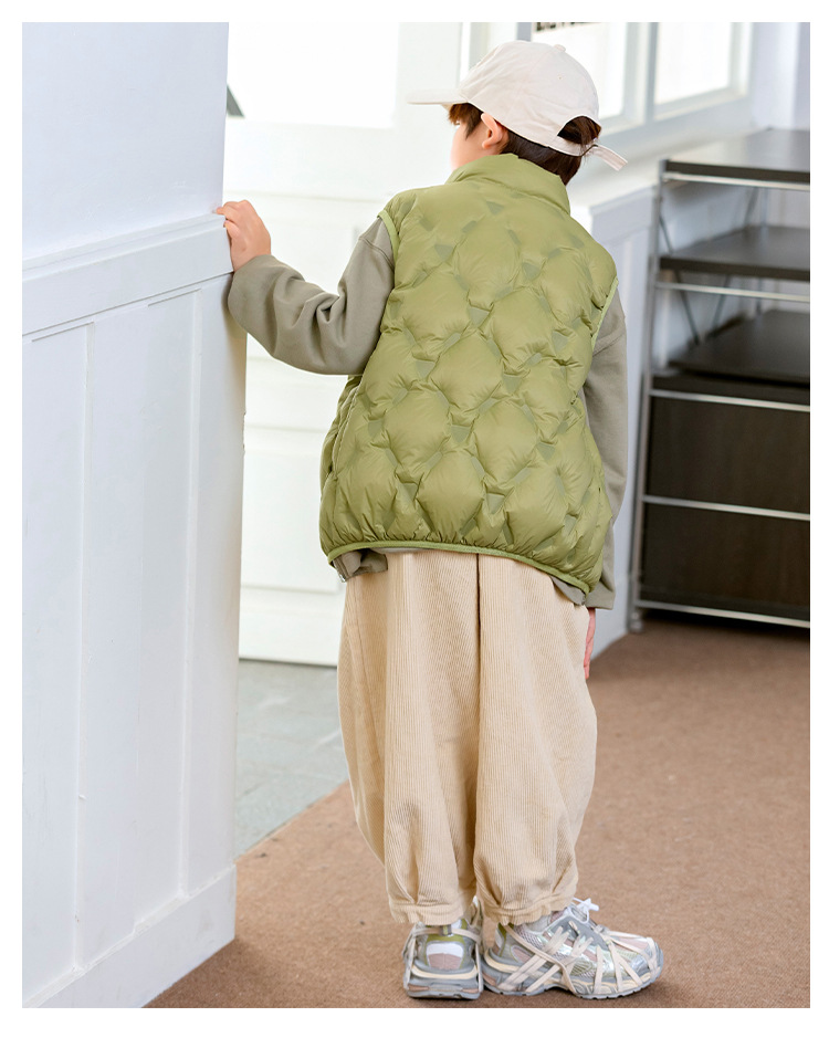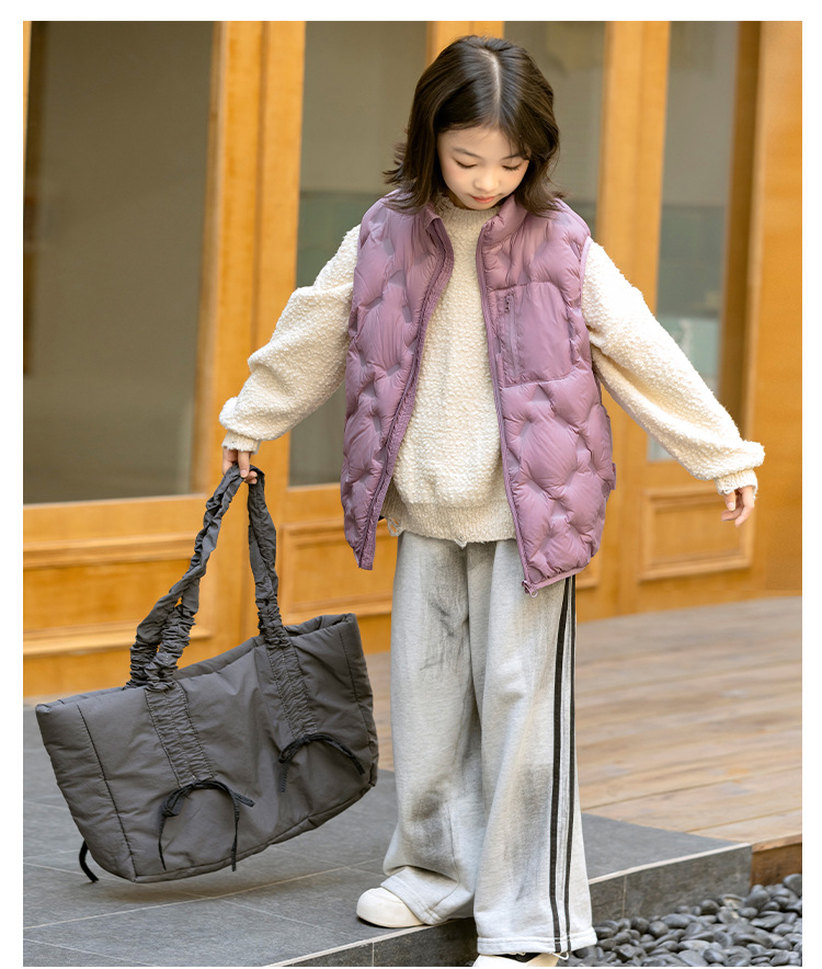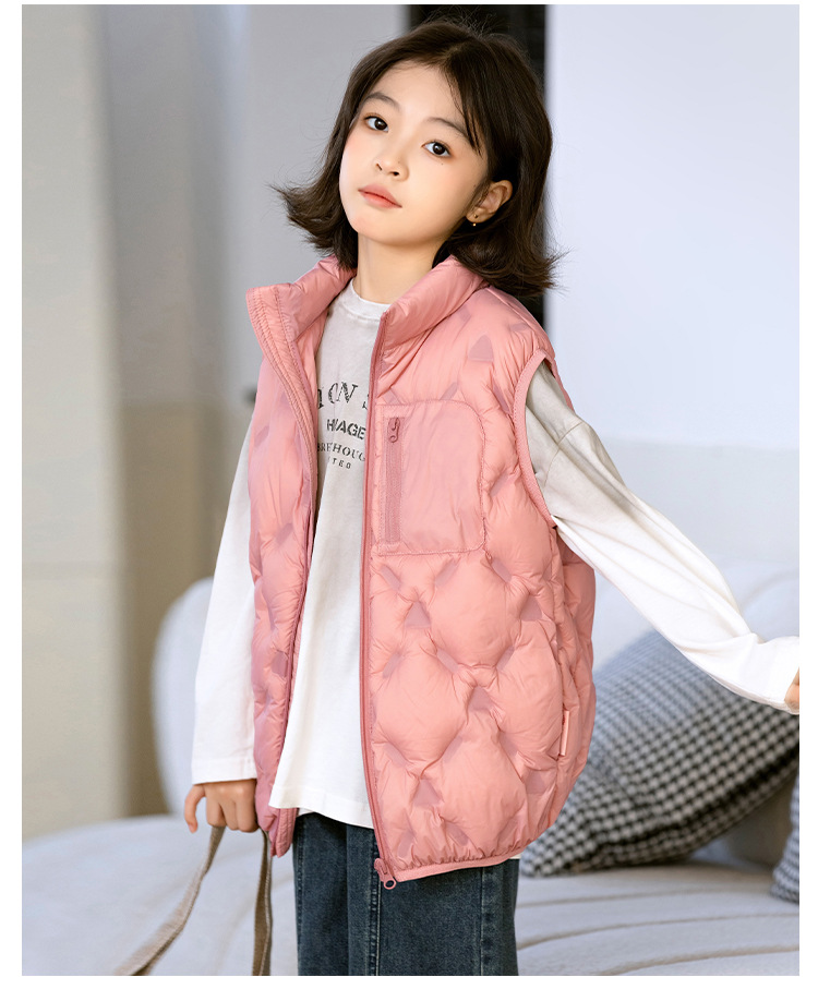 90 오리 다운 어린이 수직 칼라 얇은 다운 조끼 2025 새로운 여자 소년 어린이 다운 조끼
