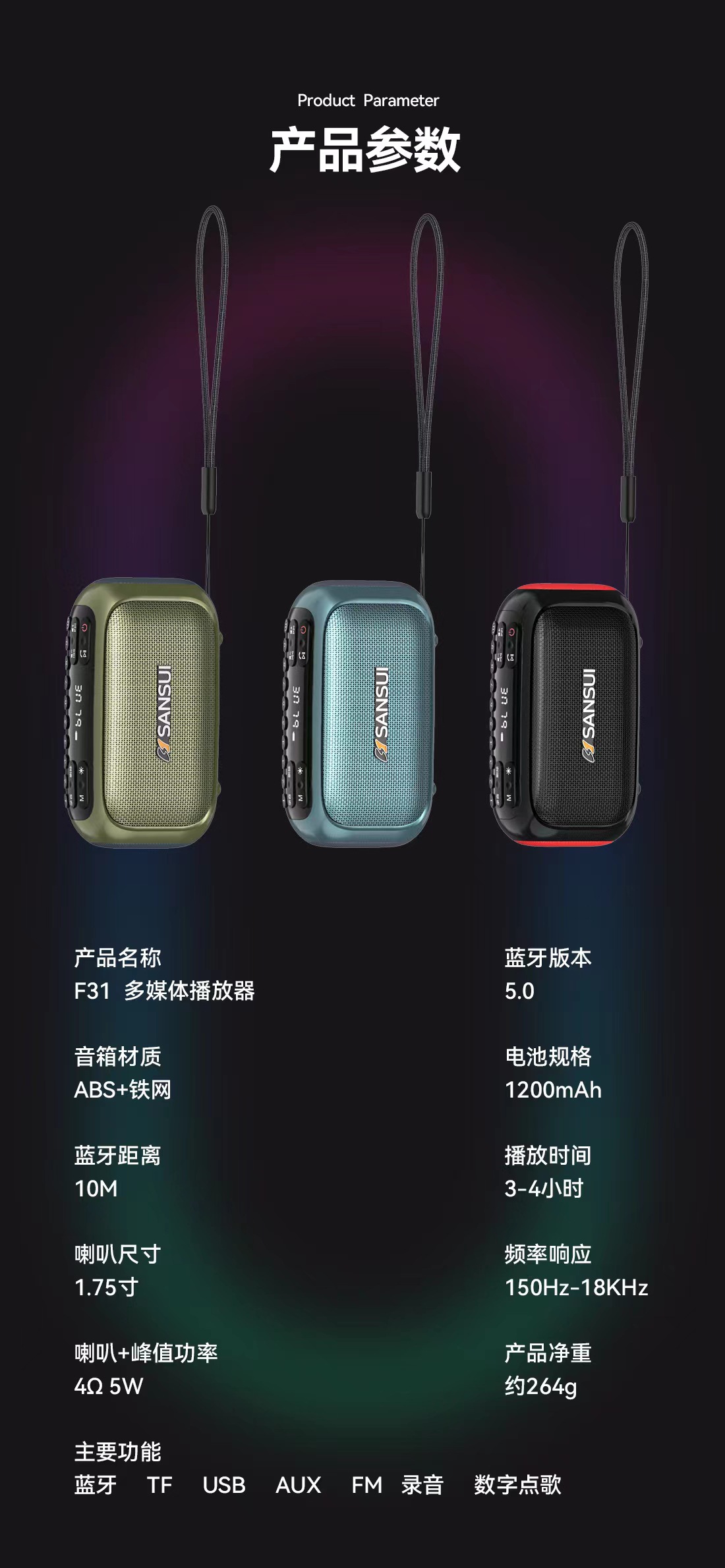 조경 F31 블루투스 스피커 플러그인 카드 U 디스크 오디오 박스 노인을위한 야외 휴대용 라디오 서브 우퍼스토어 가기