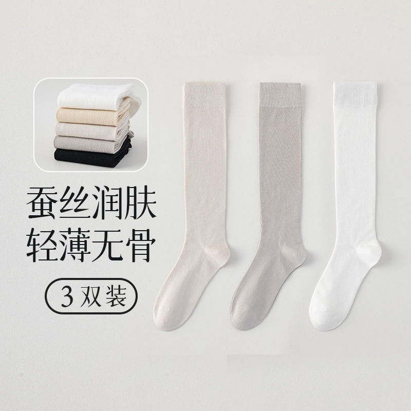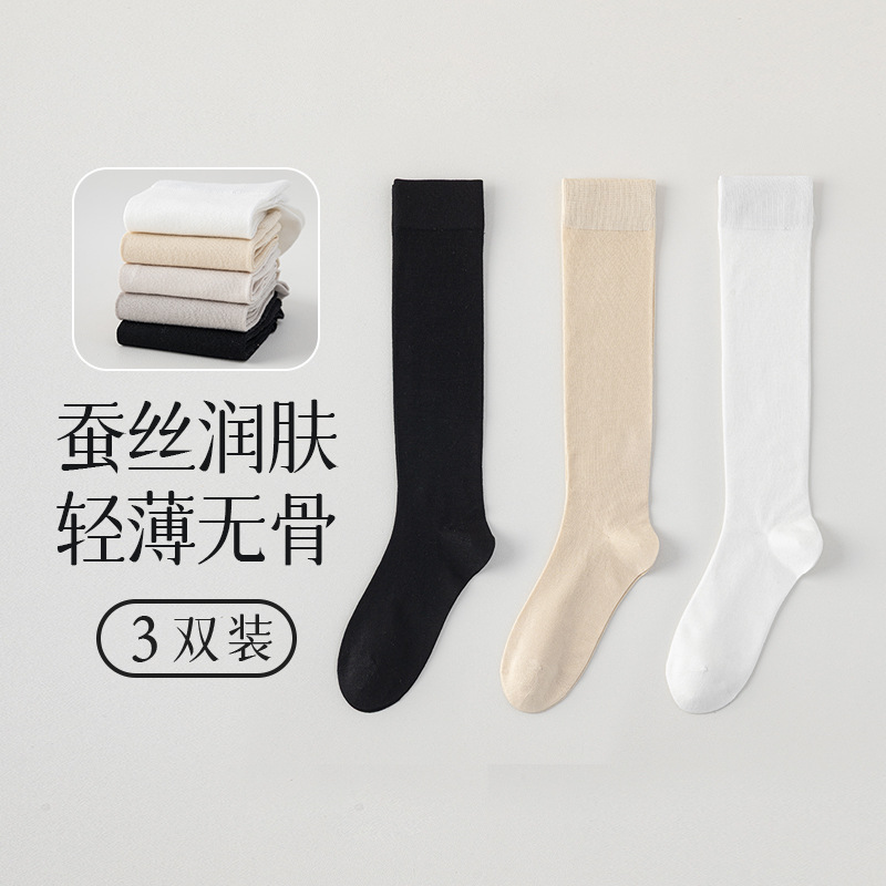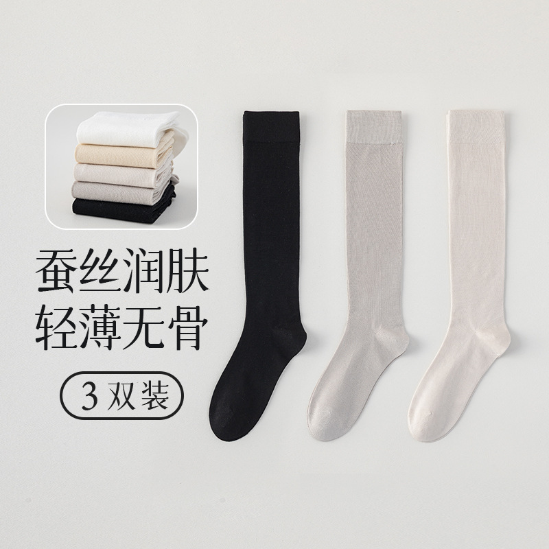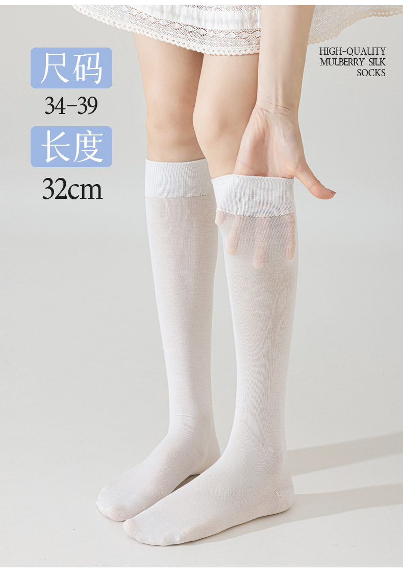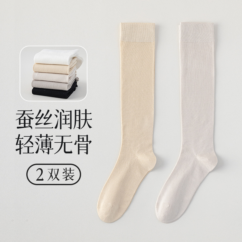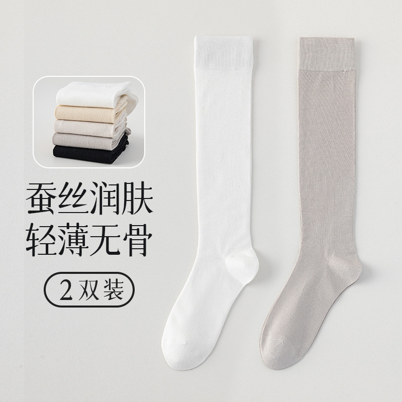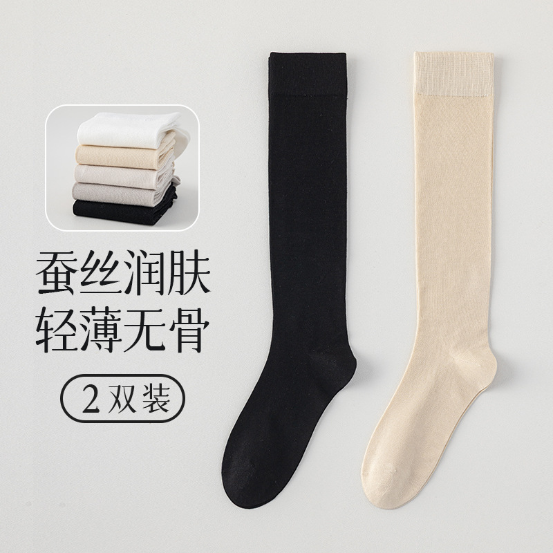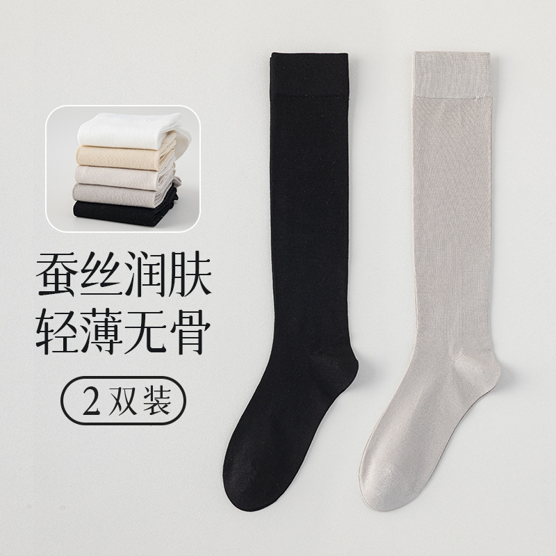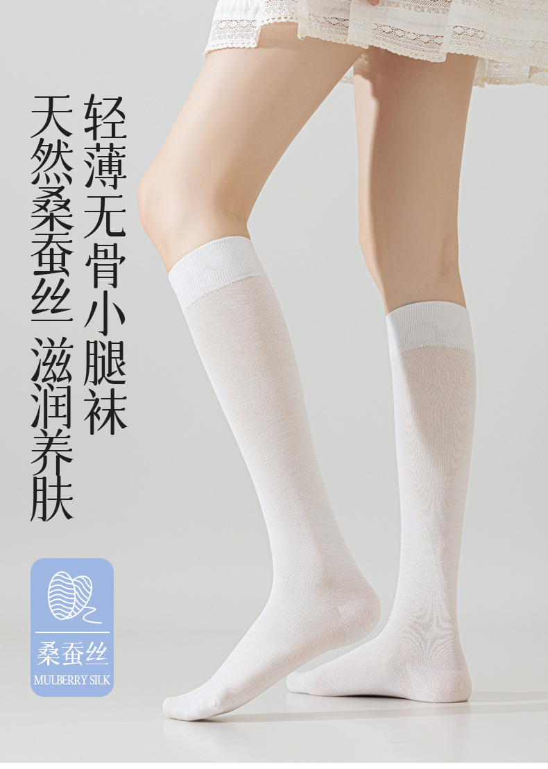 뽕나무 실크 양말 여성의 얇은 봄과 여름 송아지 길쭉한 무릎 뼈없는 단색 시원한 느낌 가벼운 뼈없는 부드러운 왁스 더미 양말
