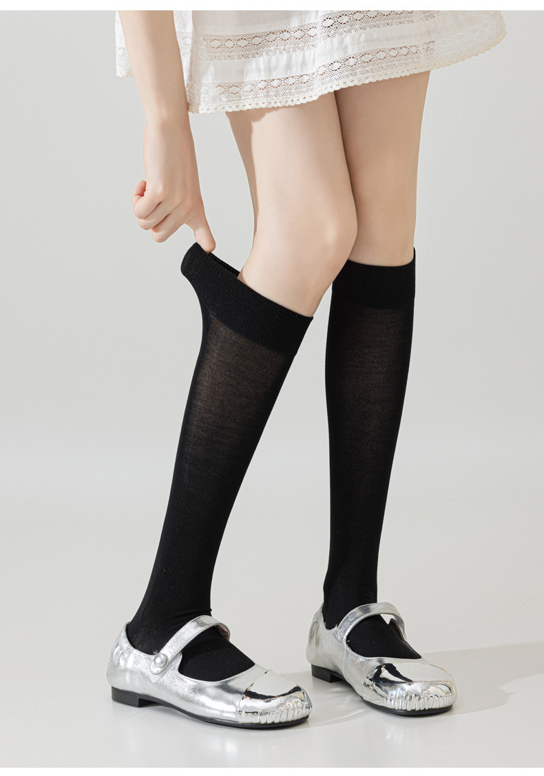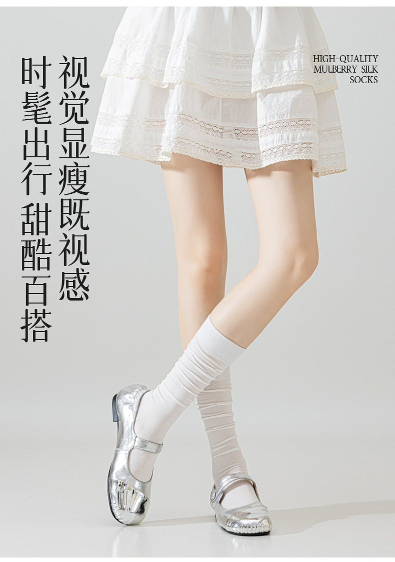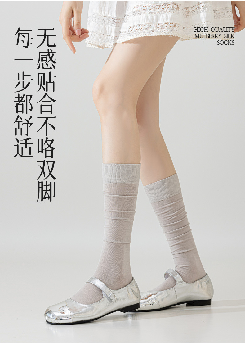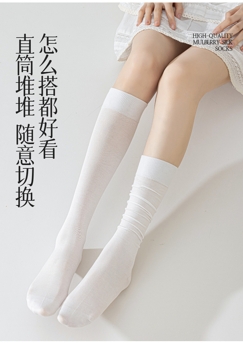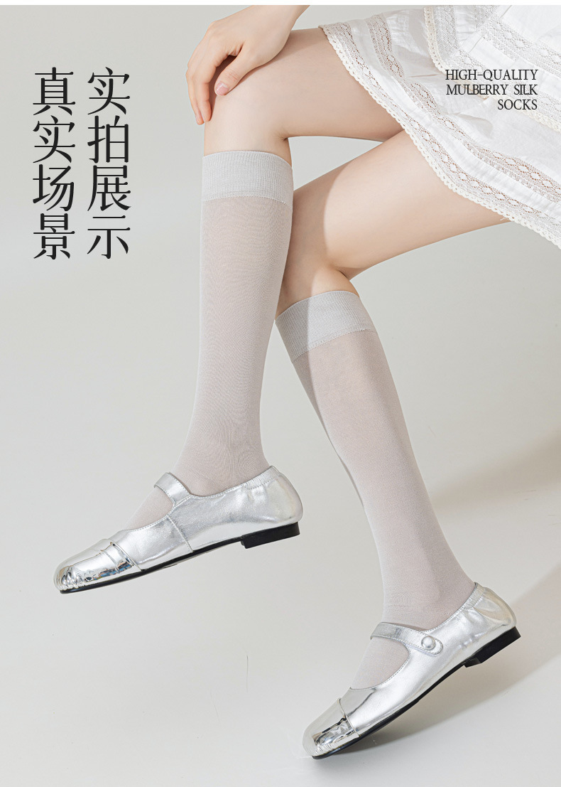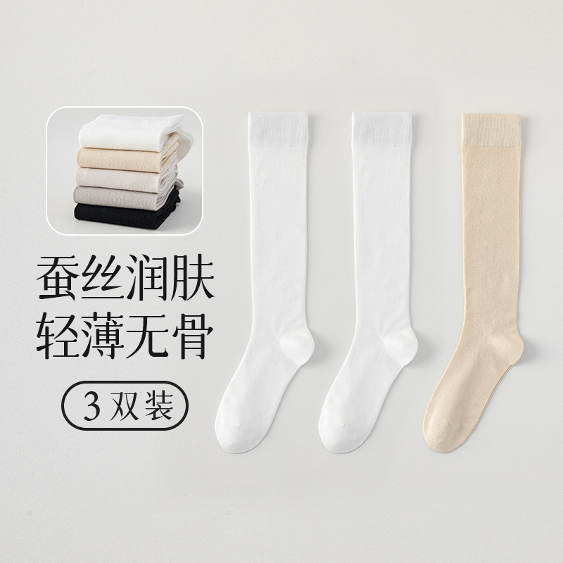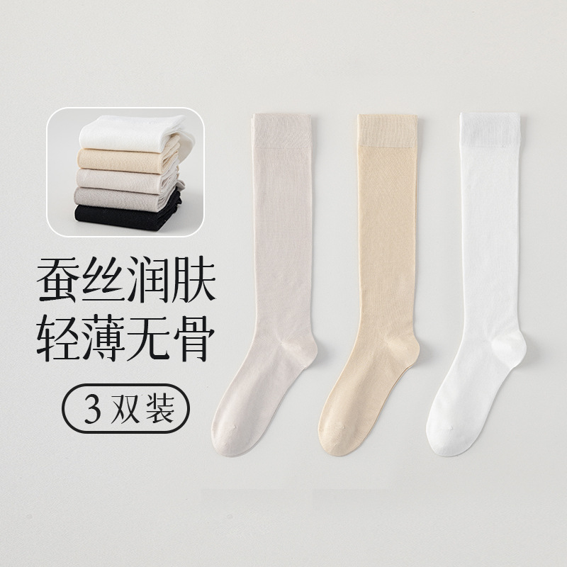 뽕나무 실크 양말 여성의 얇은 봄과 여름 송아지 길쭉한 무릎 뼈없는 단색 시원한 느낌 가벼운 뼈없는 부드러운 왁스 더미 양말