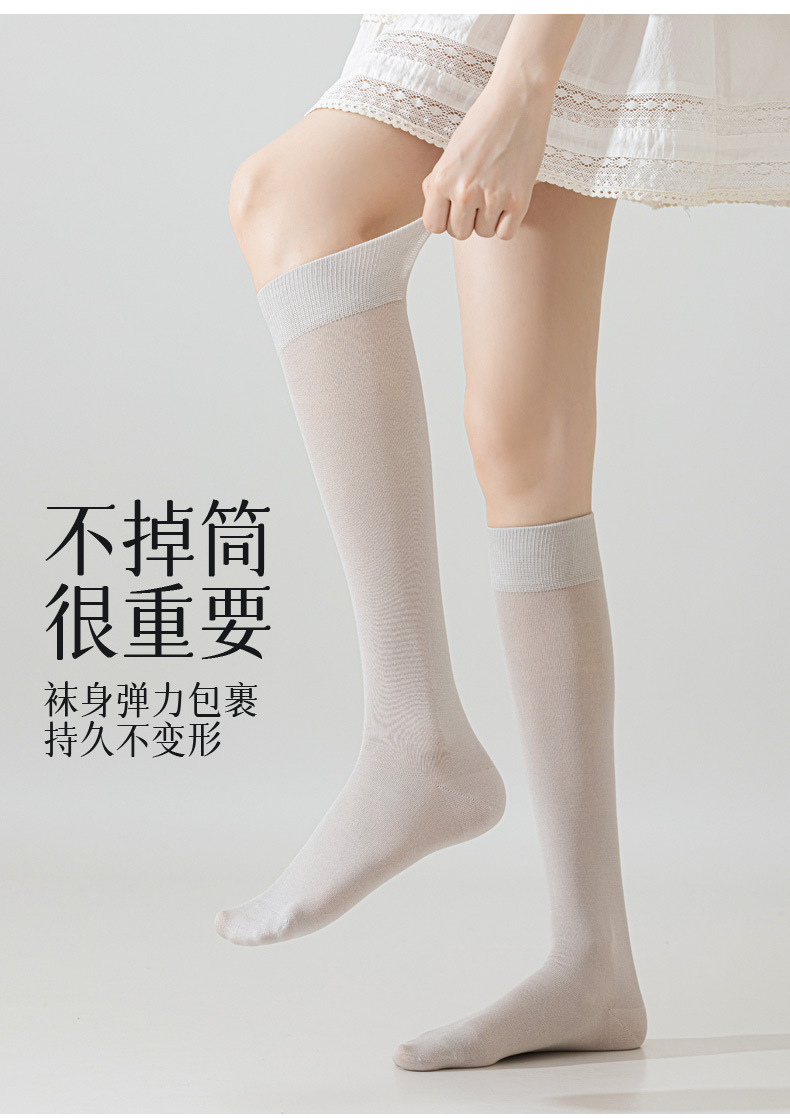 뽕나무 실크 양말 여성의 얇은 봄과 여름 송아지 길쭉한 무릎 뼈없는 단색 시원한 느낌 가벼운 뼈없는 부드러운 왁스 더미 양말스토어 가기