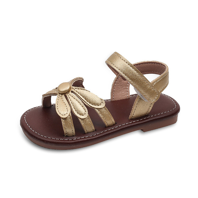 소녀 한국식 레트로 여름 오픈 발가락 꽃 베이비 비치 샌들 어린이를위한 부드러운 단독 편안한 로마 샌들