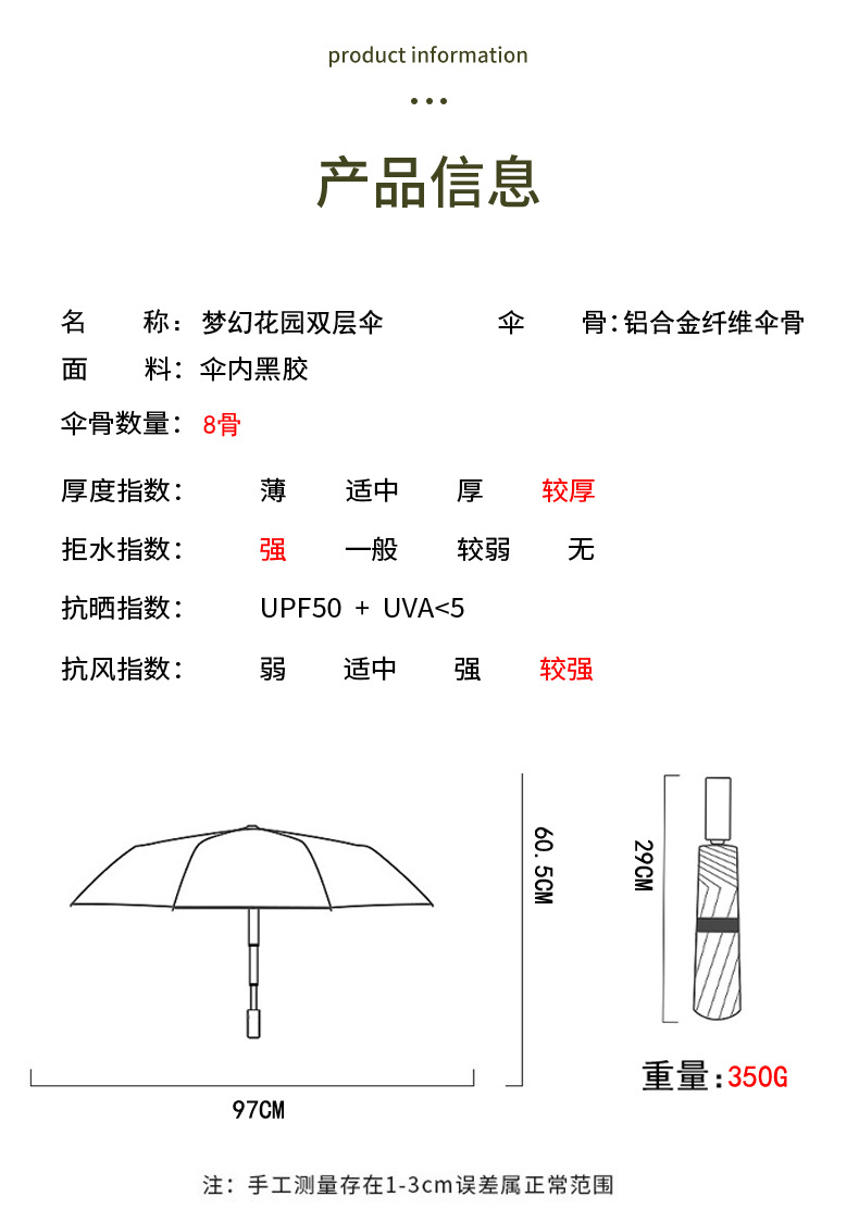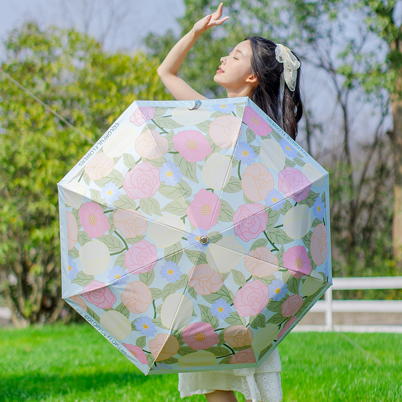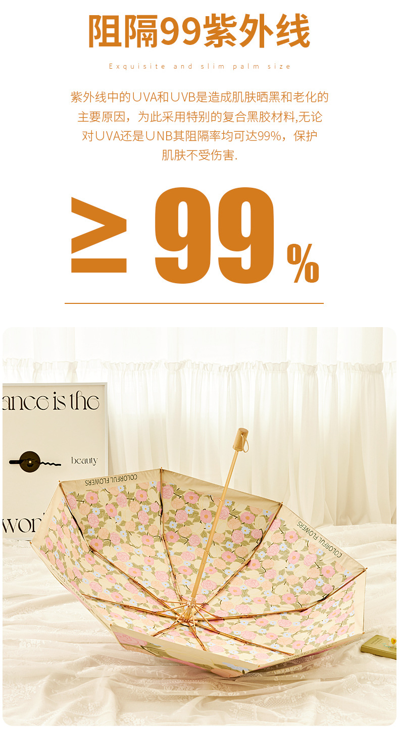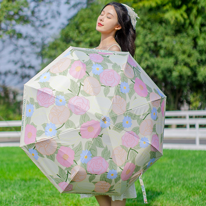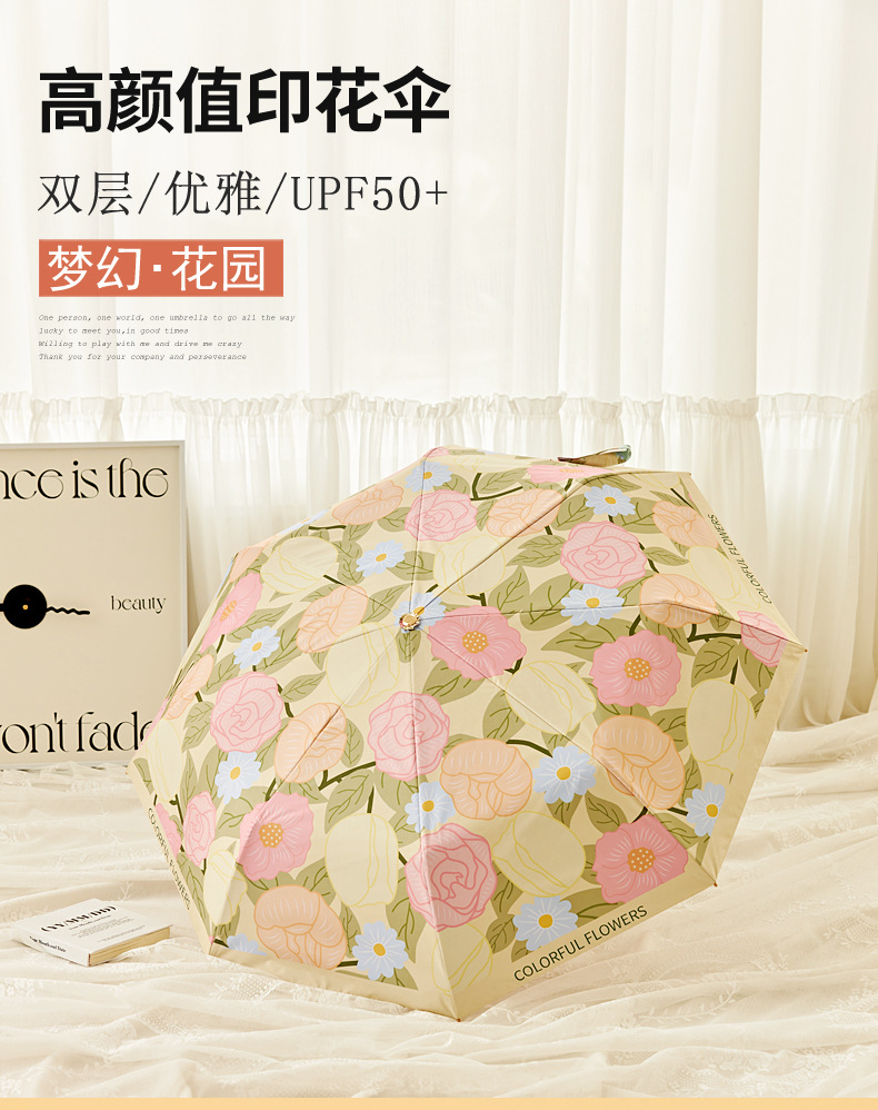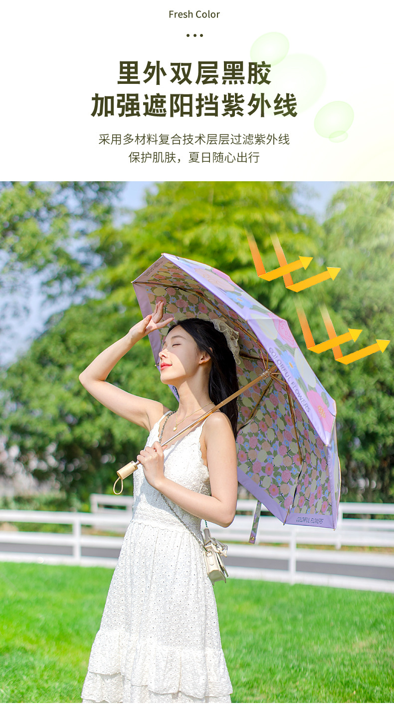 더블 레이어 드림 가든 써니 우산 블랙 고무 안티-자외선 태양 우산 여성용 접이식 햇빛 우산 이중 사용스토어 가기