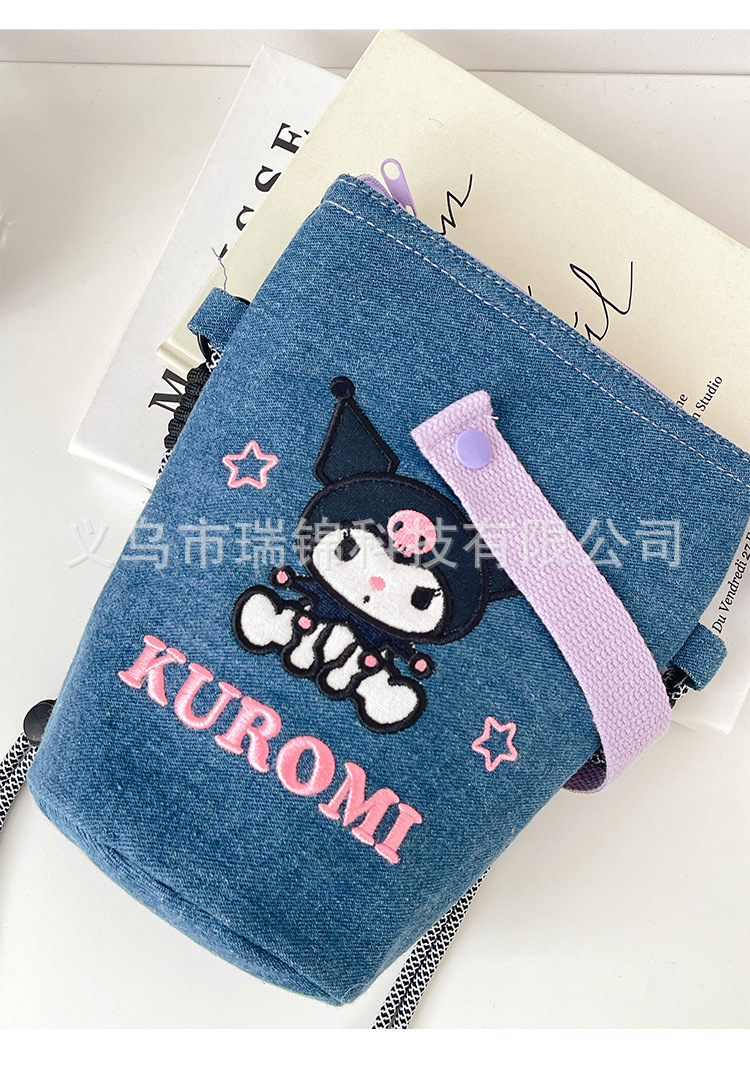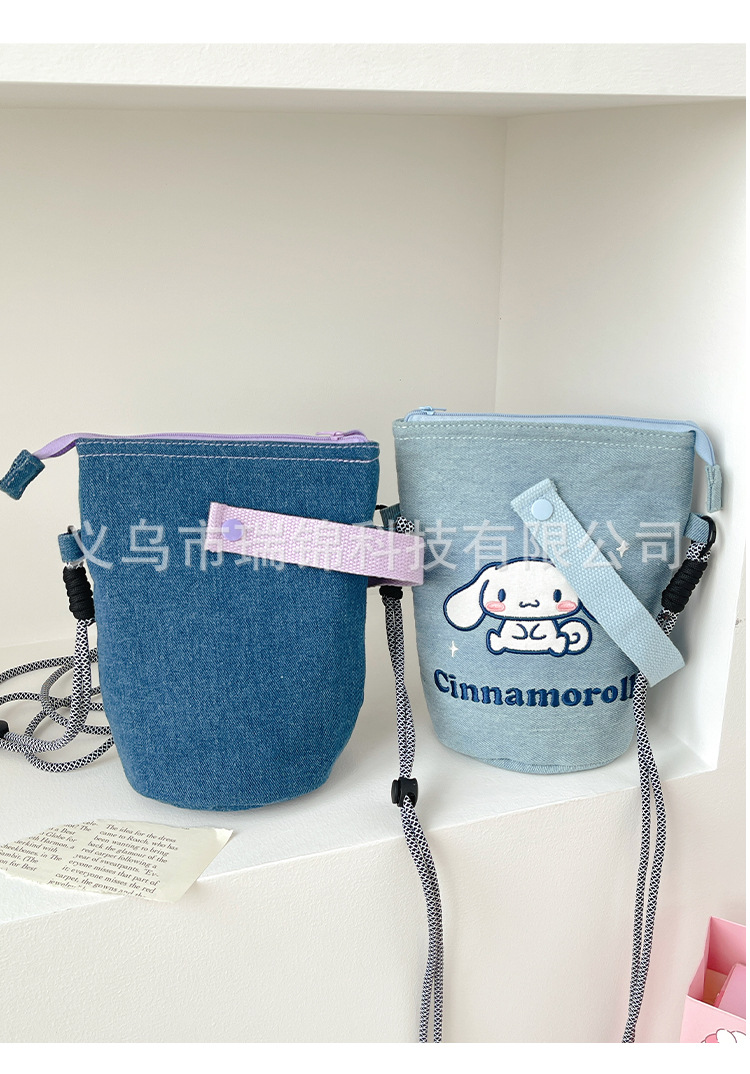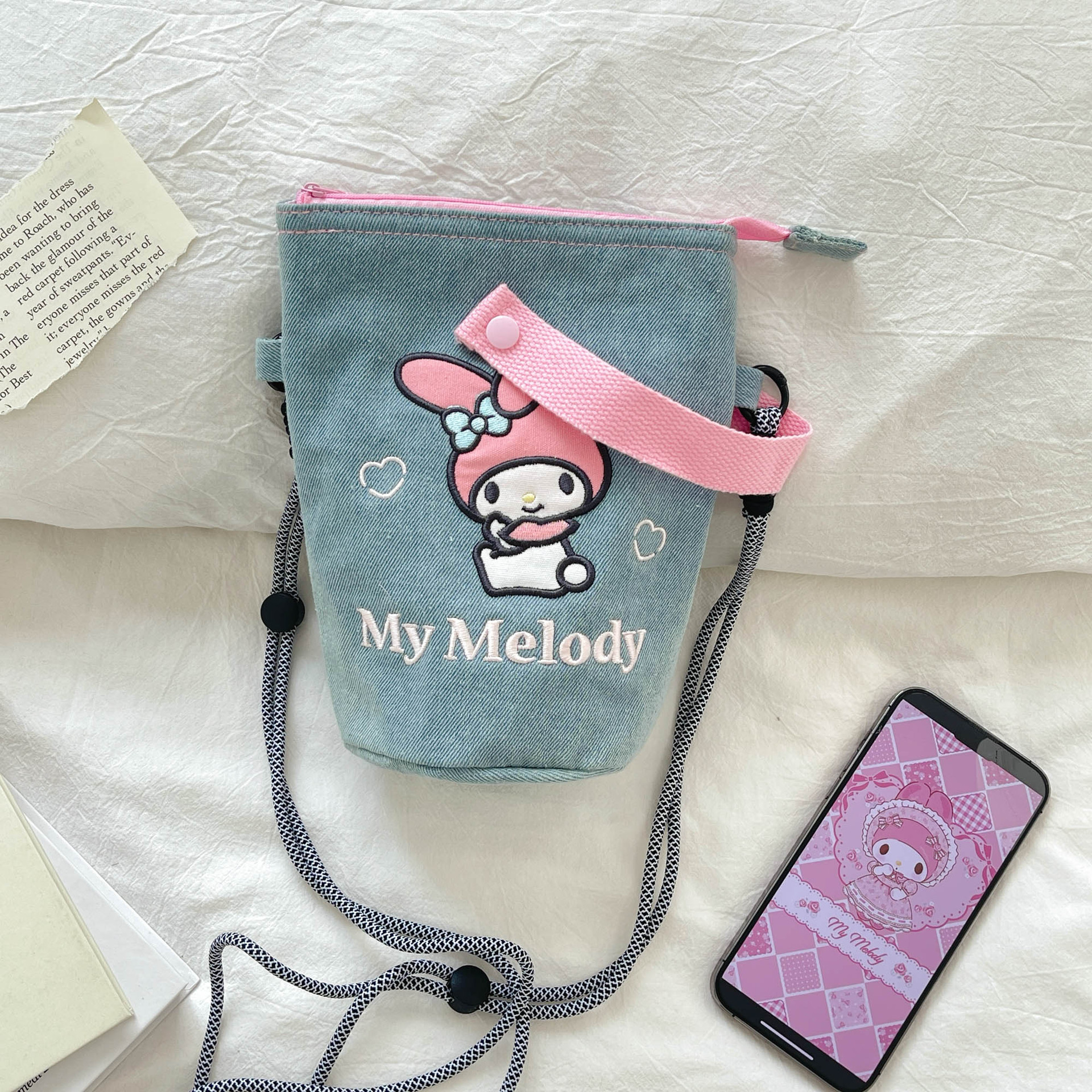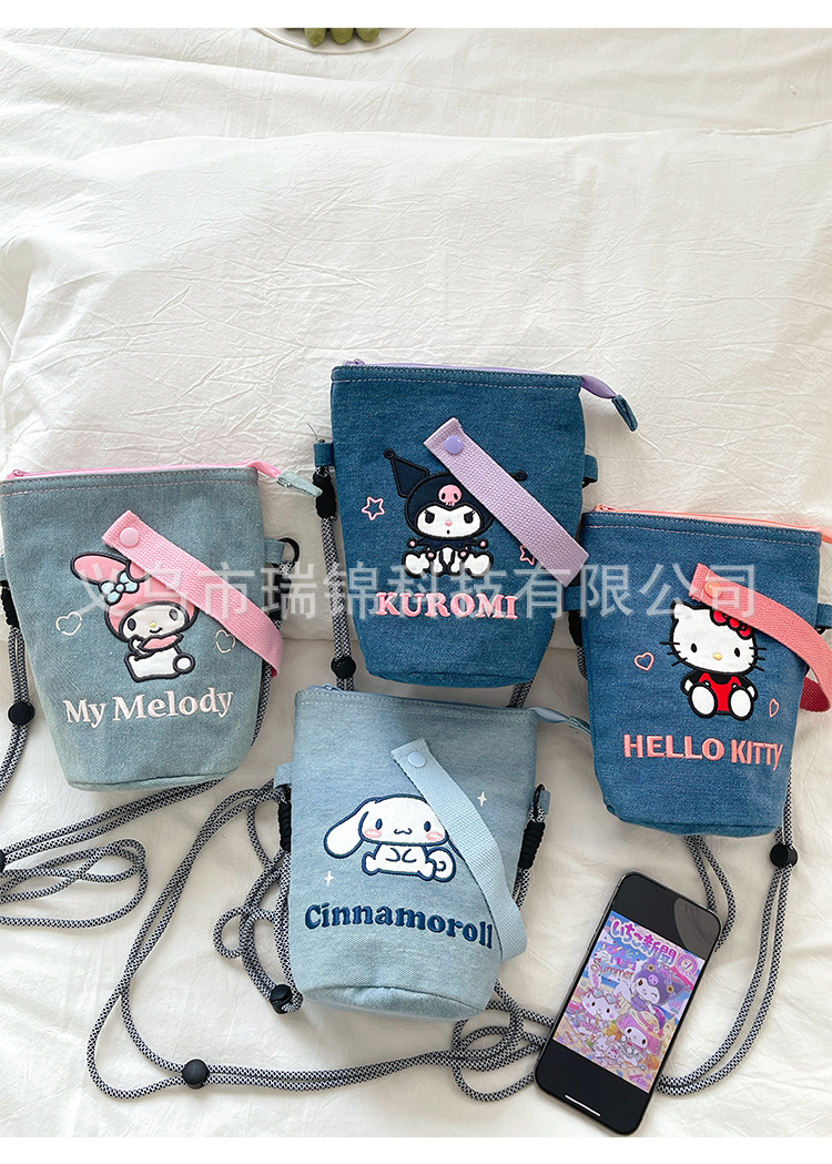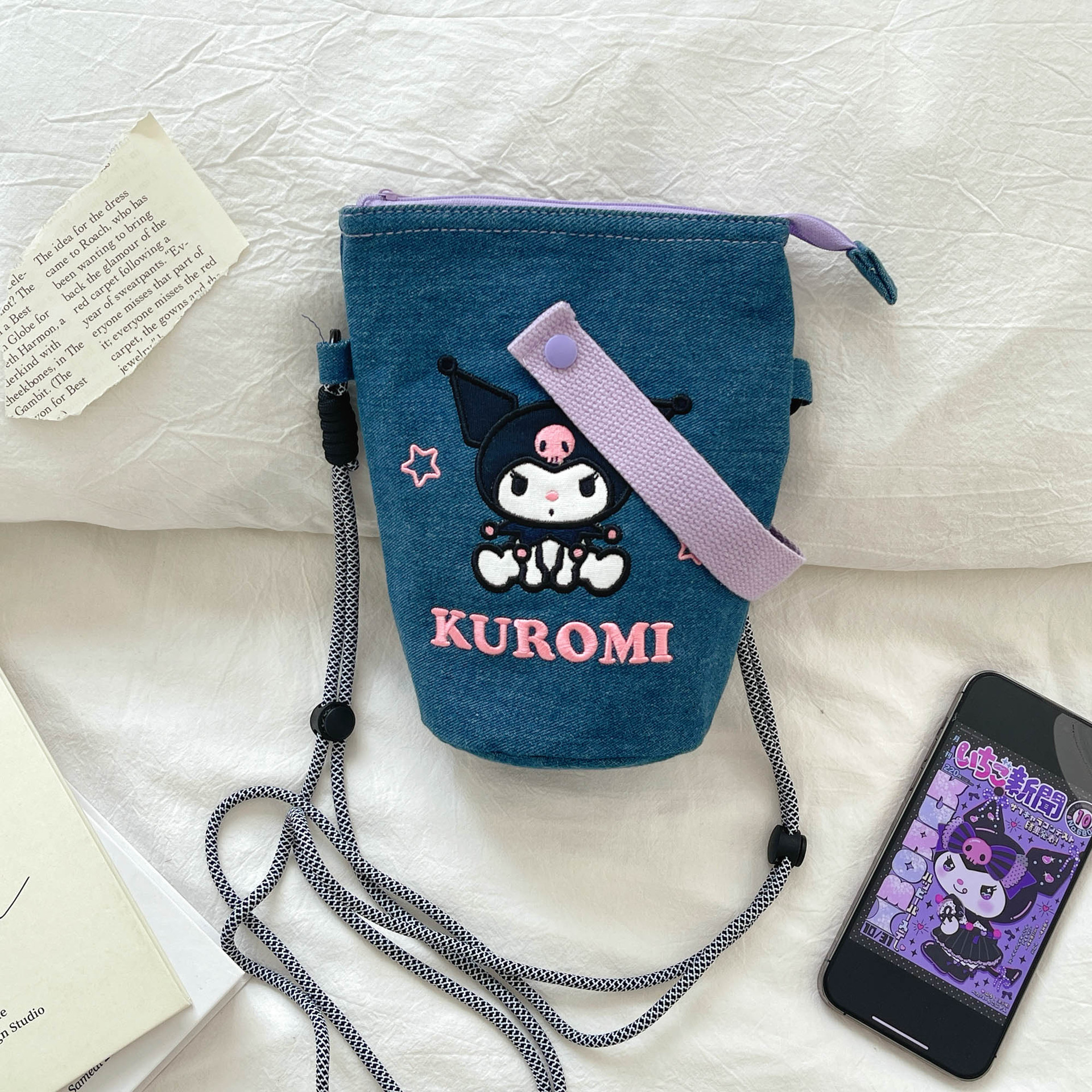 산리오 정품 버킷 백 데님 컬러 미니 크로스 바디 핸드백 귀여운 Kulomi 2025 새로운 휴대 전화 가방스토어 가기