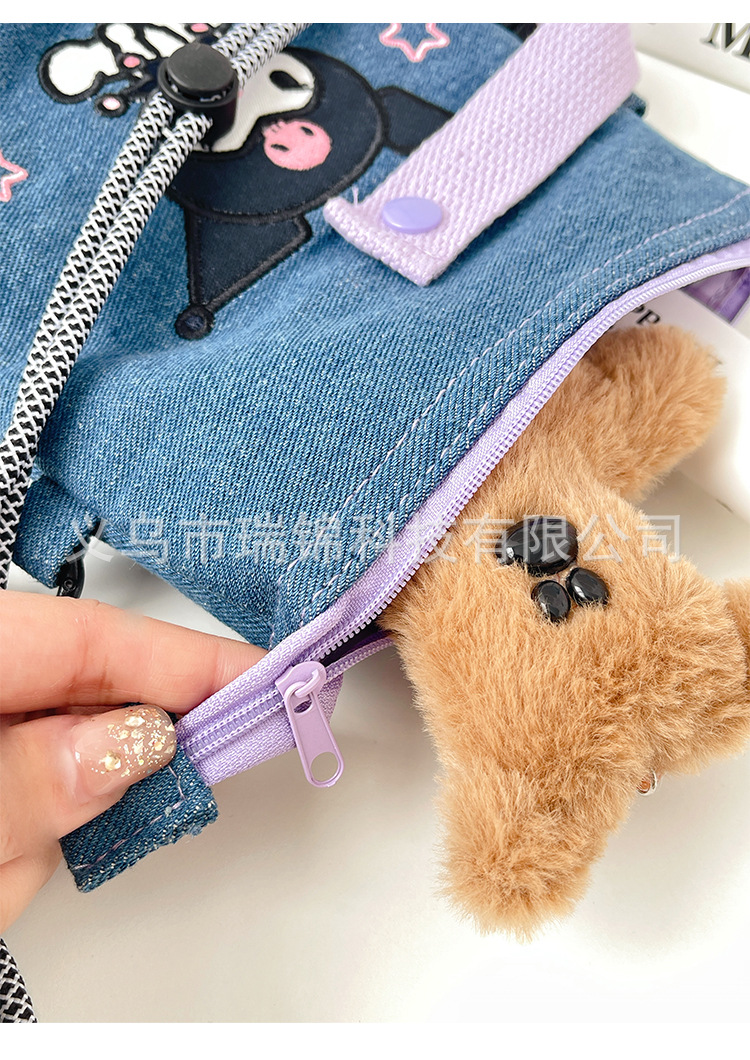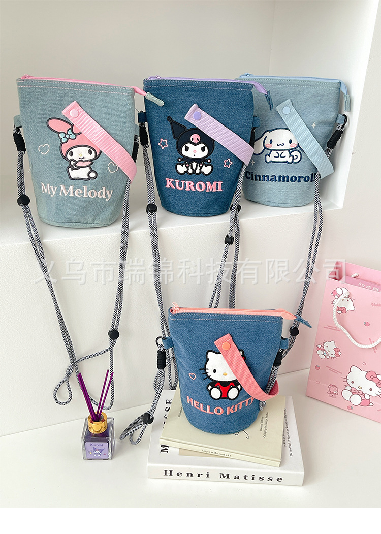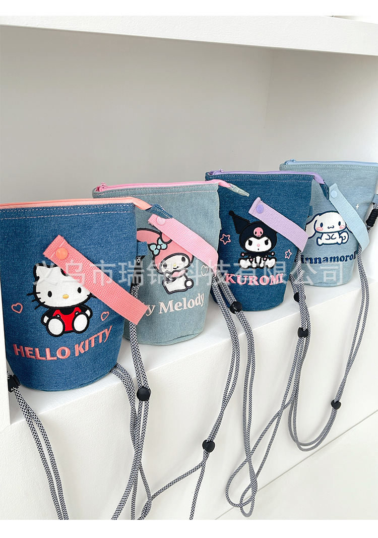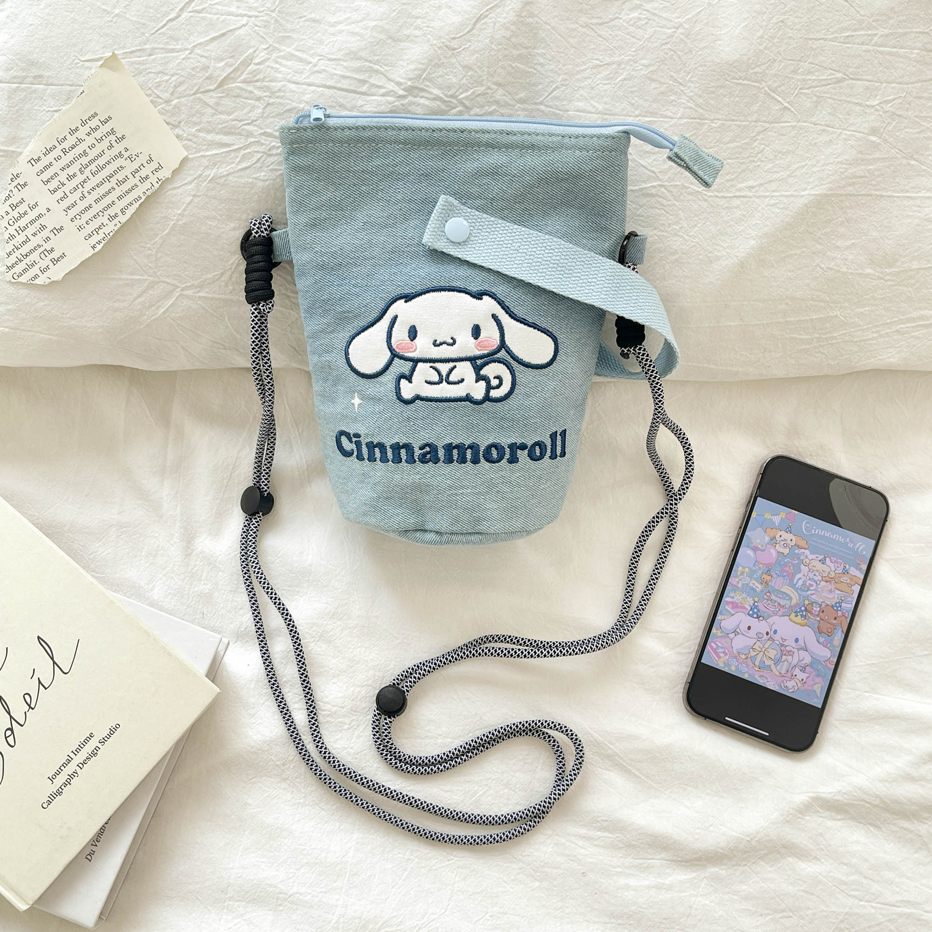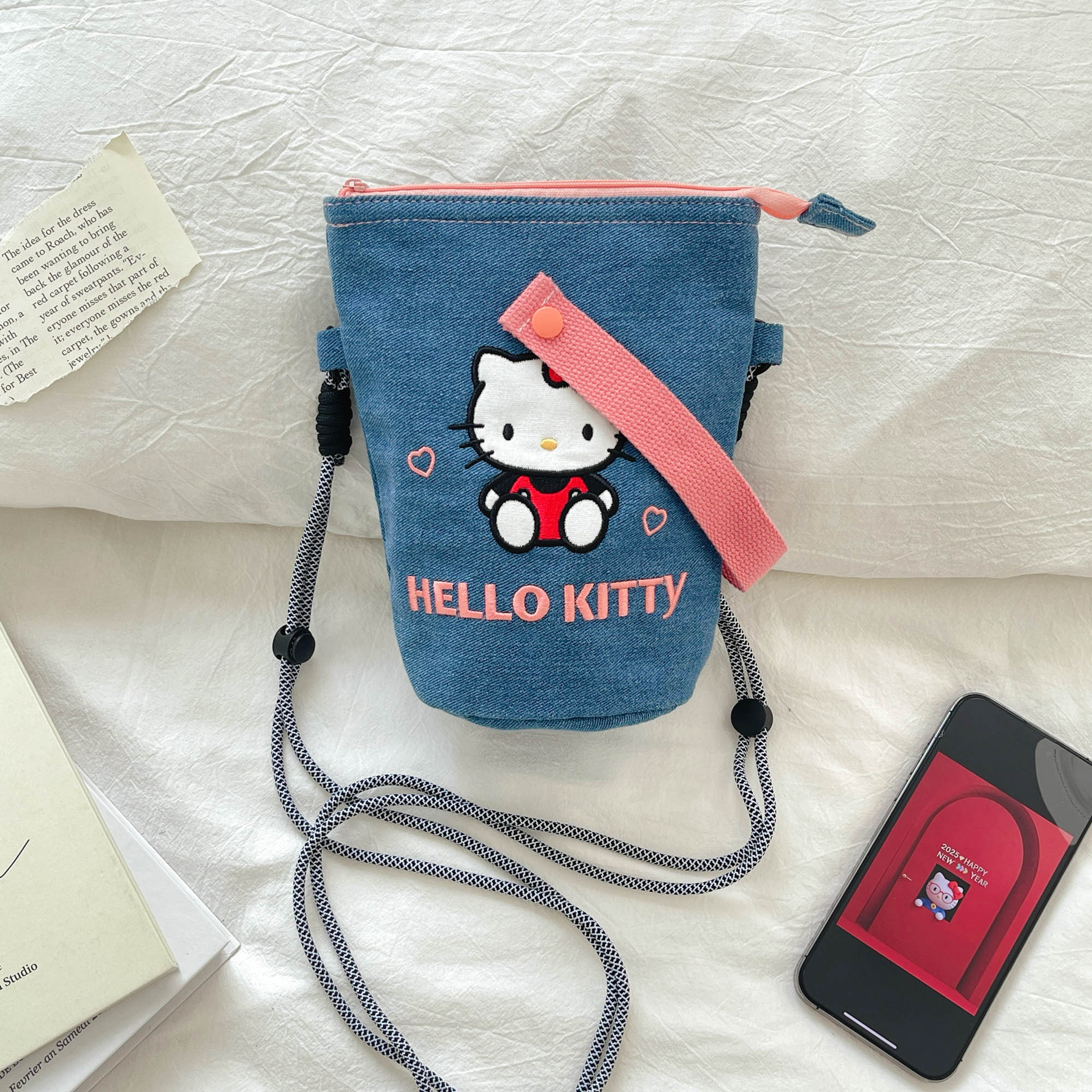 산리오 정품 버킷 백 데님 컬러 미니 크로스 바디 핸드백 귀여운 Kulomi 2025 새로운 휴대 전화 가방스토어 가기