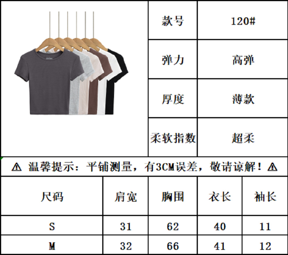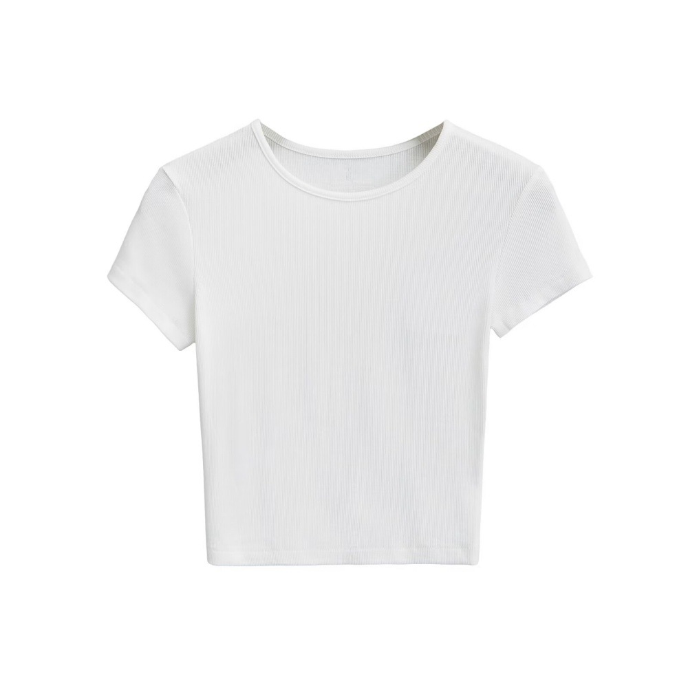 YPFF 유행 여성의 작은 둥근 목 단색 단단한 반소매 최고 스파이스 소녀 스타일 스레드 배꼽 짧은 어깨 티셔츠스토어 가기