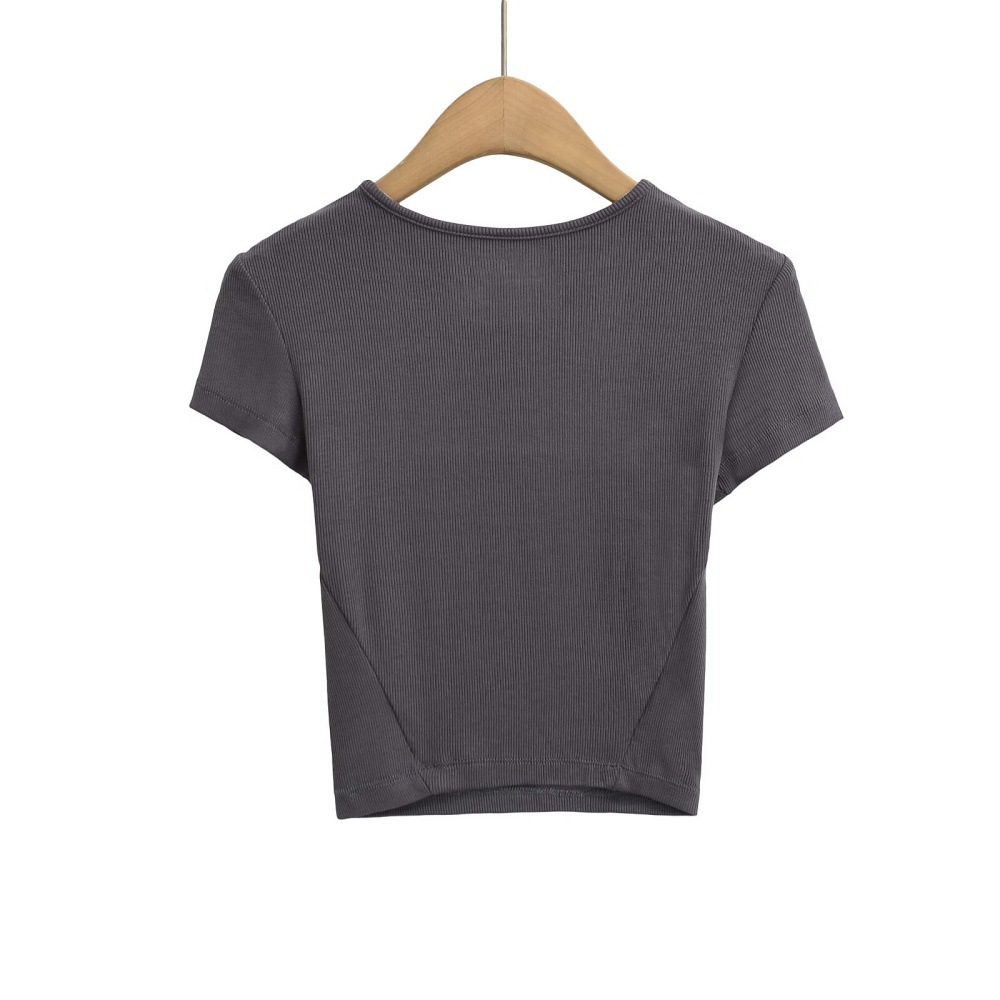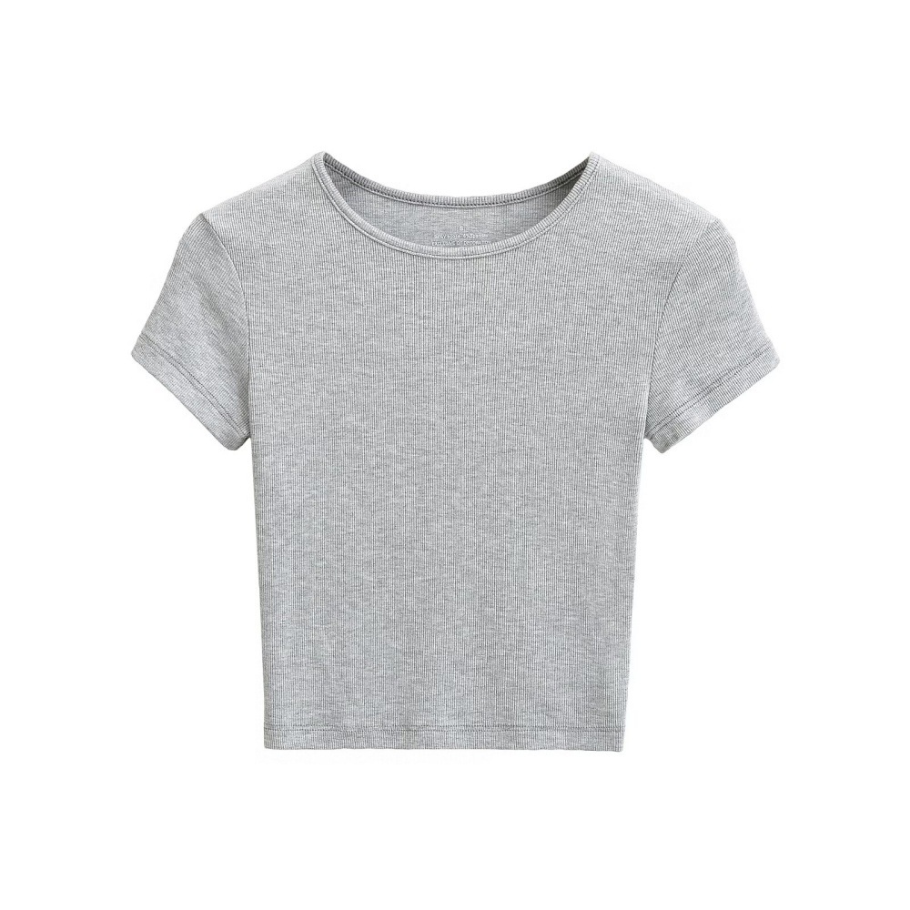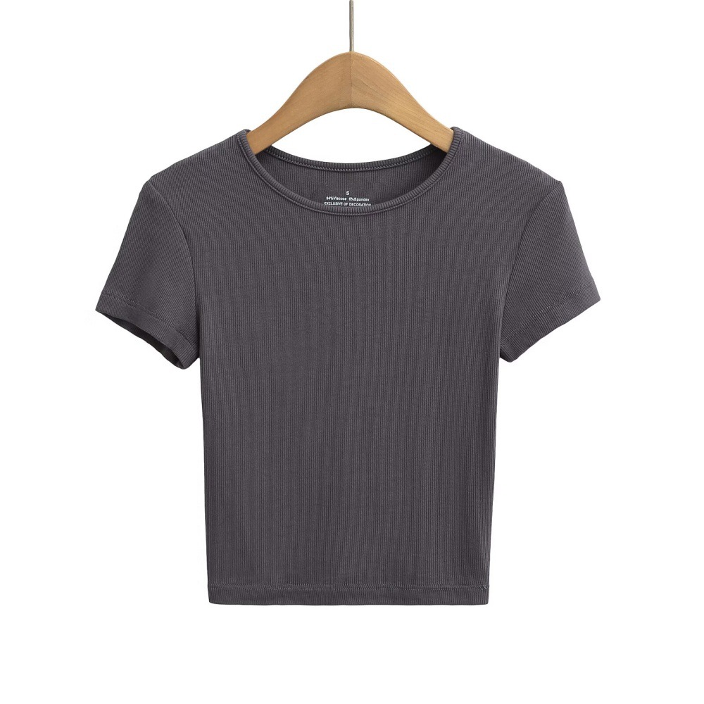 YPFF 유행 여성의 작은 둥근 목 단색 단단한 반소매 최고 스파이스 소녀 스타일 스레드 배꼽 짧은 어깨 티셔츠