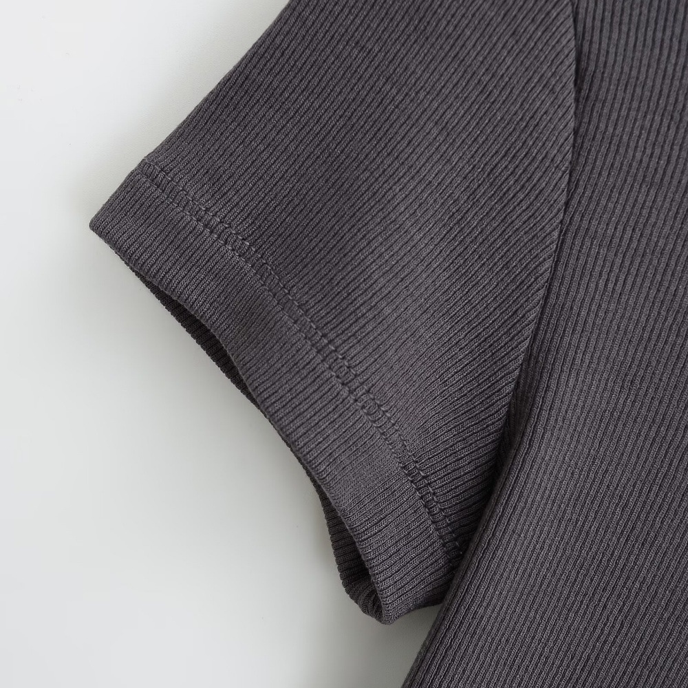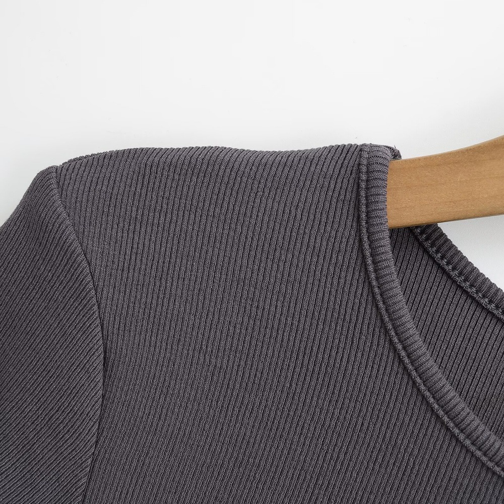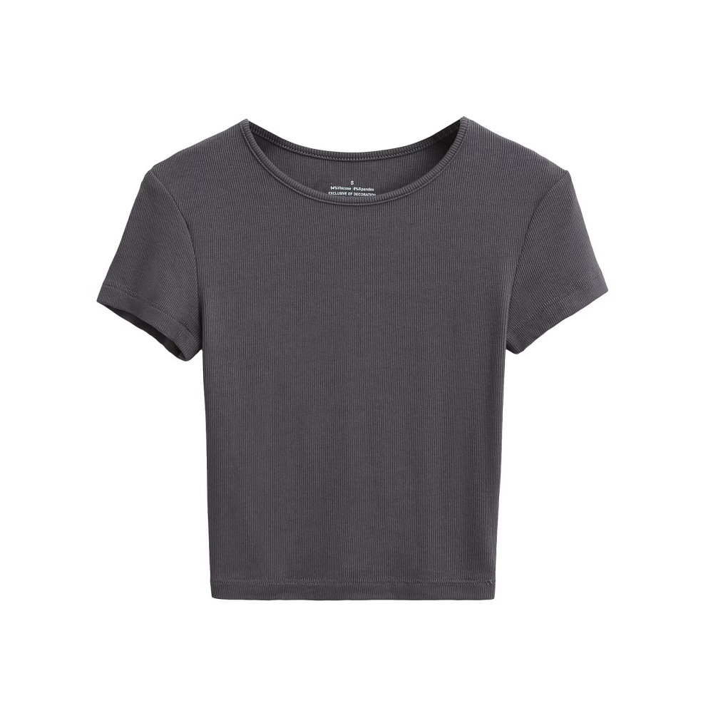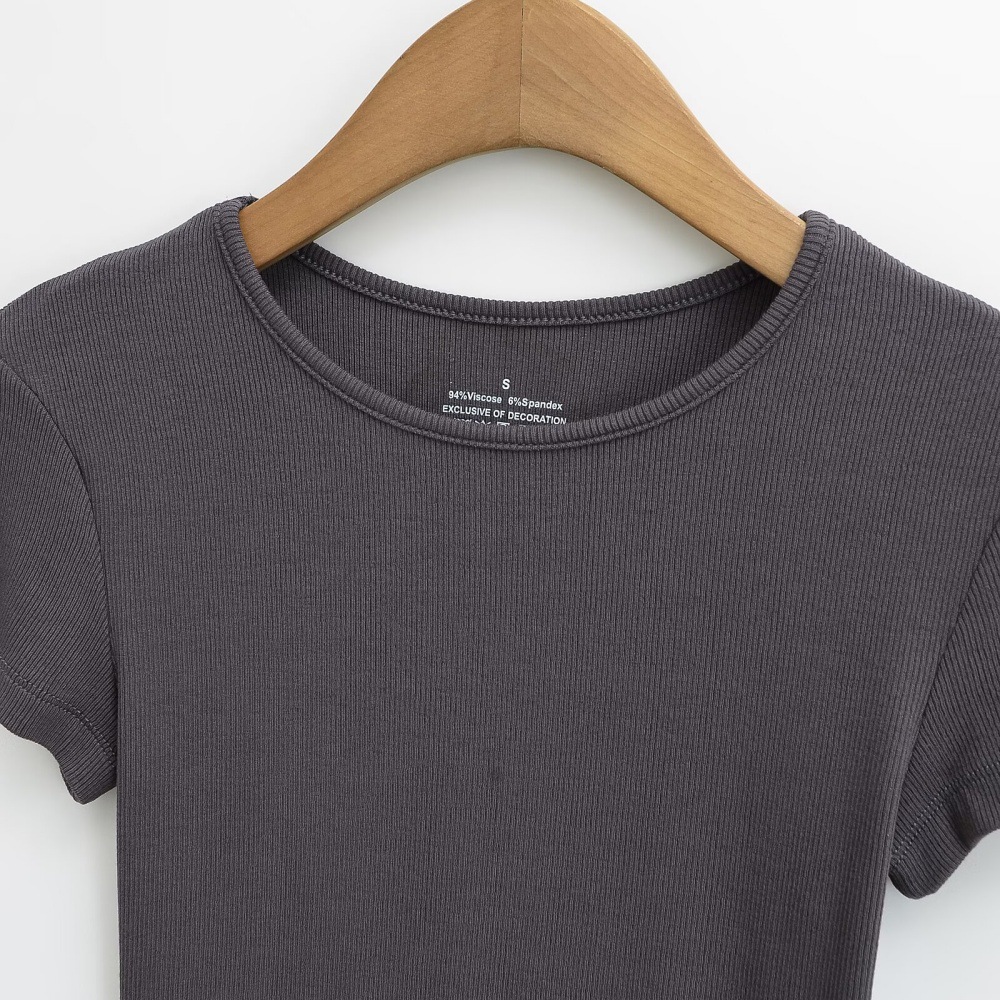 YPFF 유행 여성의 작은 둥근 목 단색 단단한 반소매 최고 스파이스 소녀 스타일 스레드 배꼽 짧은 어깨 티셔츠