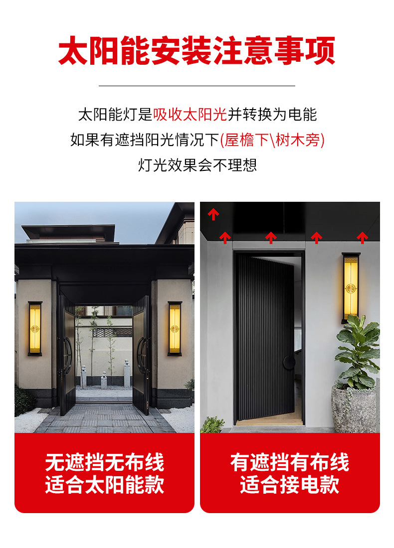 새로운 중국 태양 벽 램프 야외 방수 정원 램프 야외 테라스 계단 램프 빌라 도어 홈