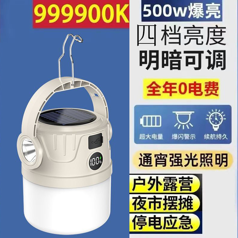 태양 충전 야외 캠핑 긴 지구력 조명 텐트 야시장 비상 조명 배치