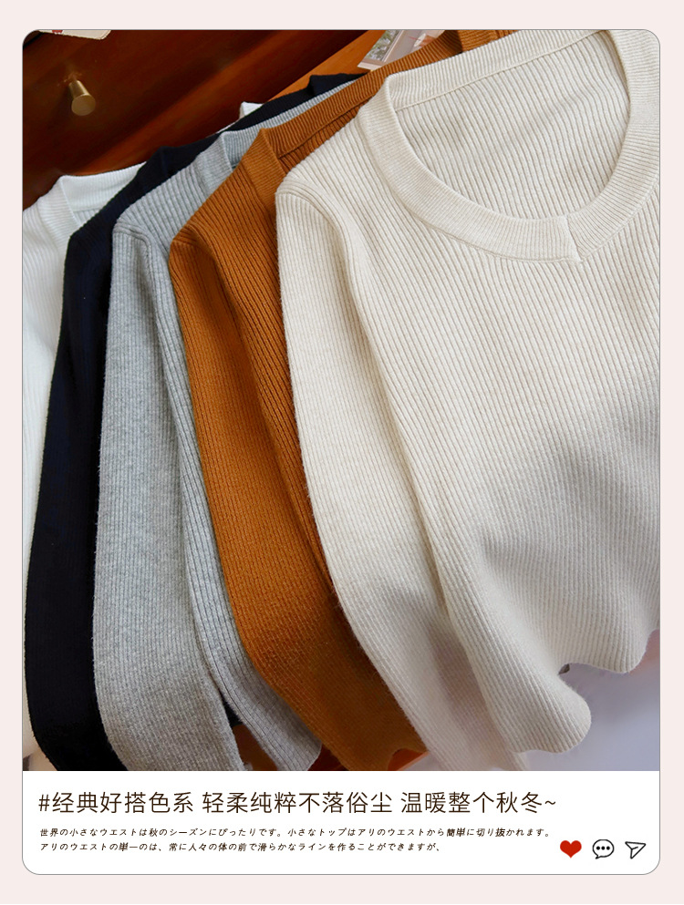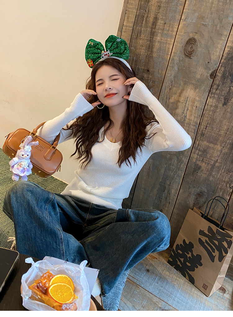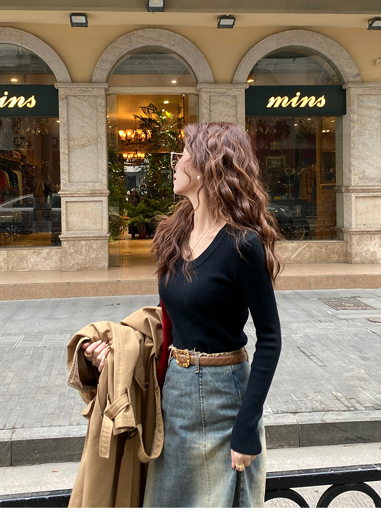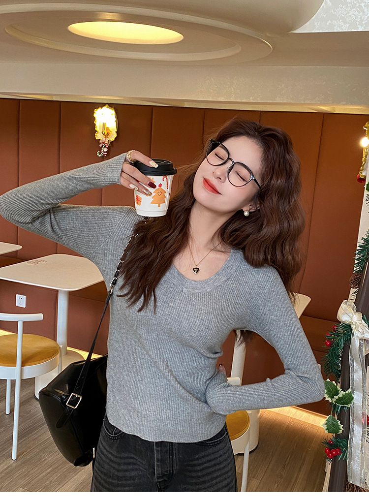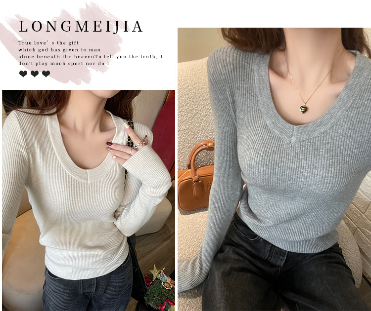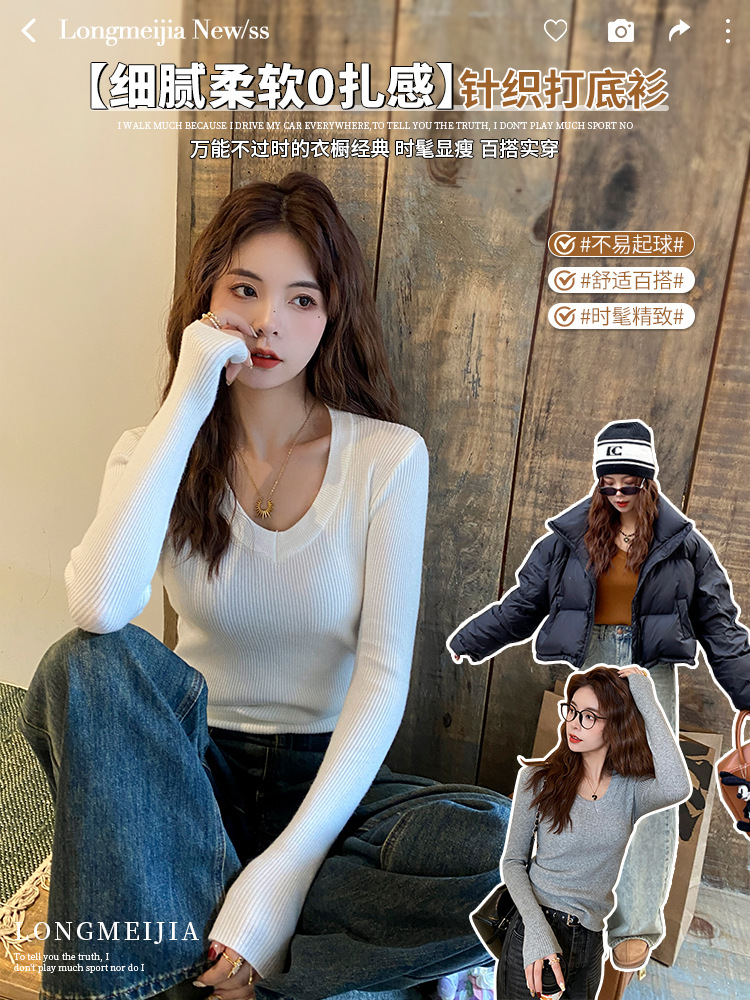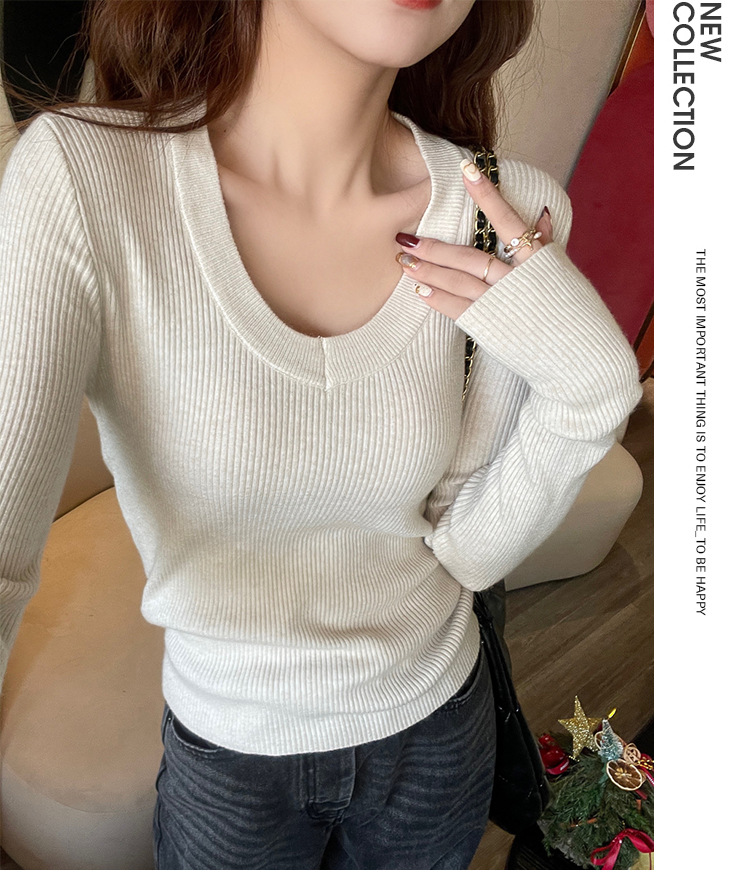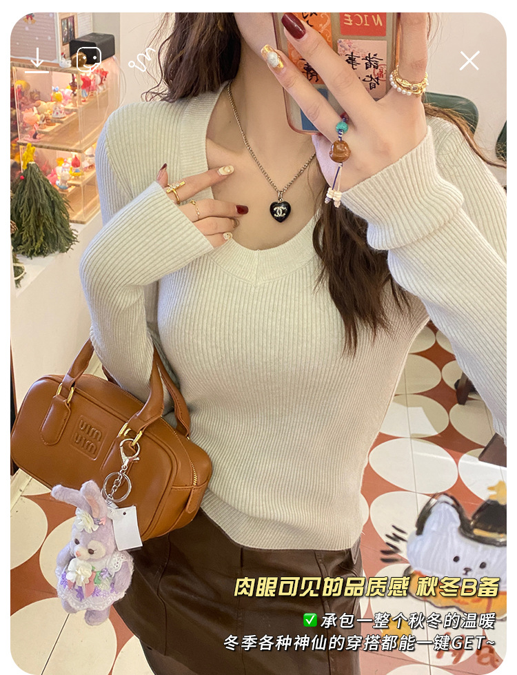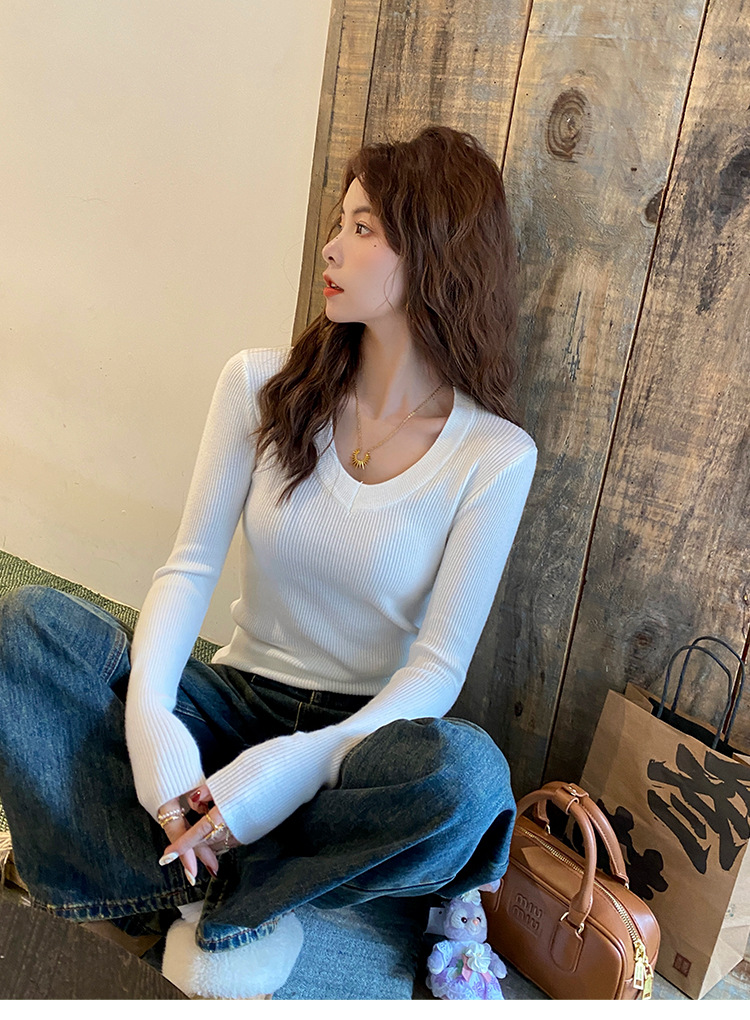 화이트 베이스 셔츠 여성의 2025 봄 새로운 낮은 목 소프트 왁스 스웨터 니트 U 넥 슬림 핏 타이트탑스토어 가기