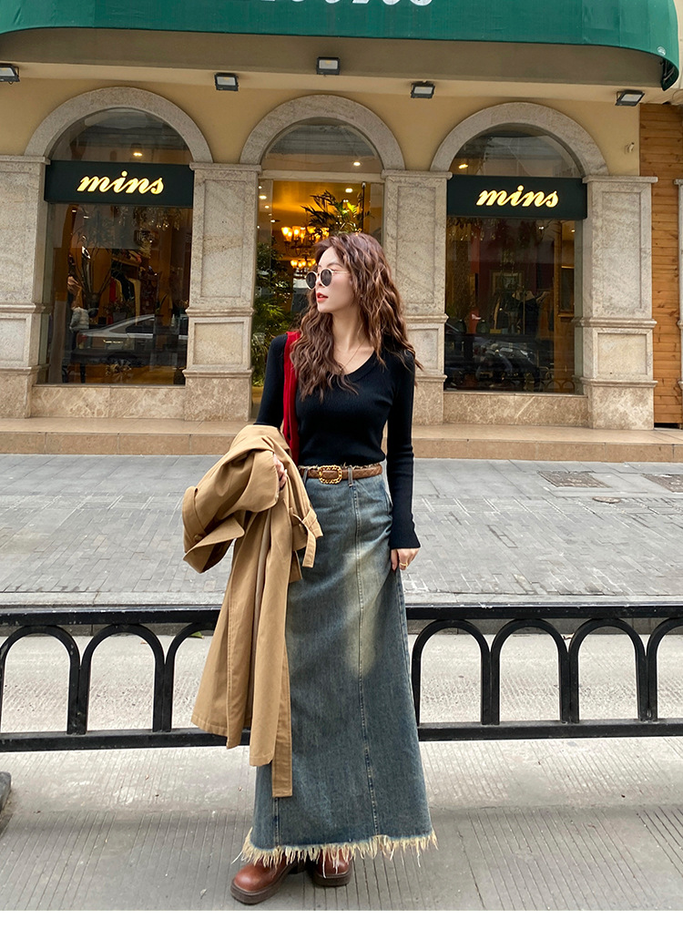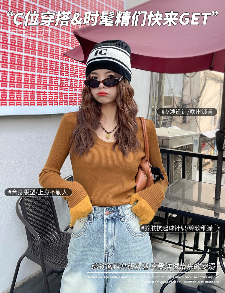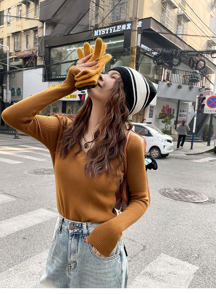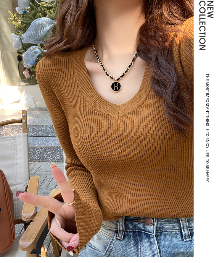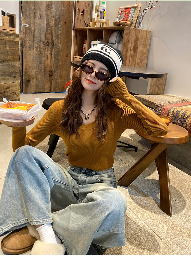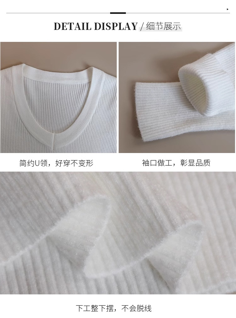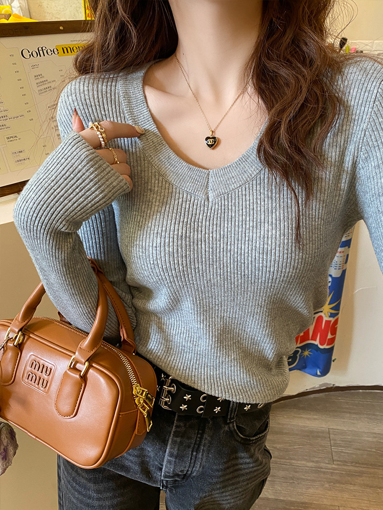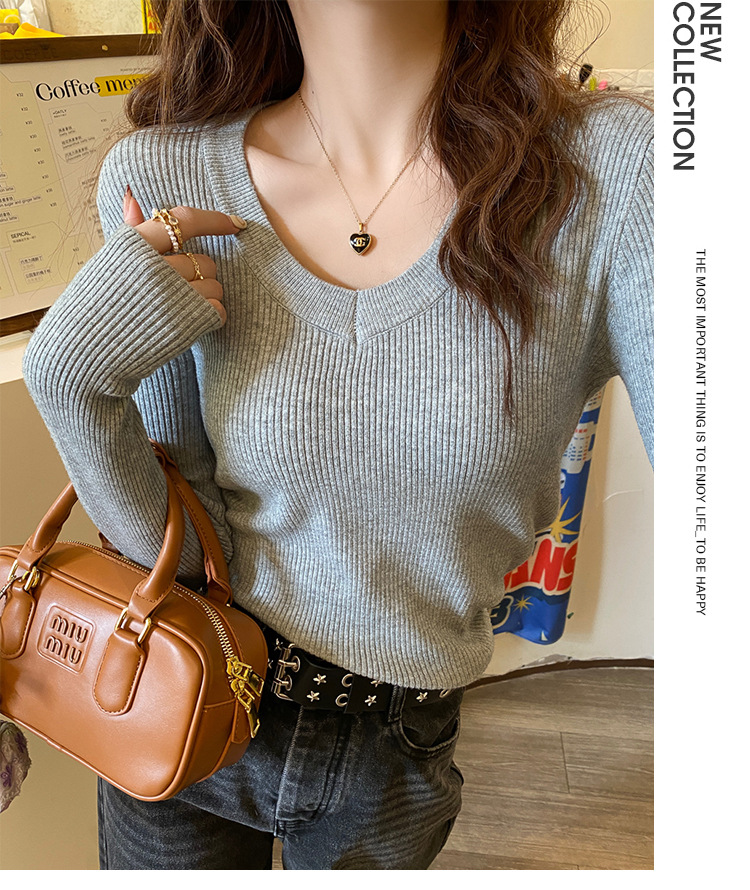 화이트 베이스 셔츠 여성의 2025 봄 새로운 낮은 목 소프트 왁스 스웨터 니트 U 넥 슬림 핏 타이트탑스토어 가기