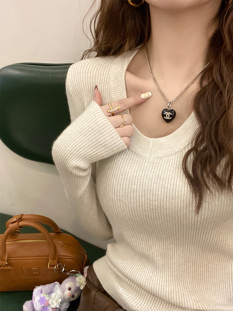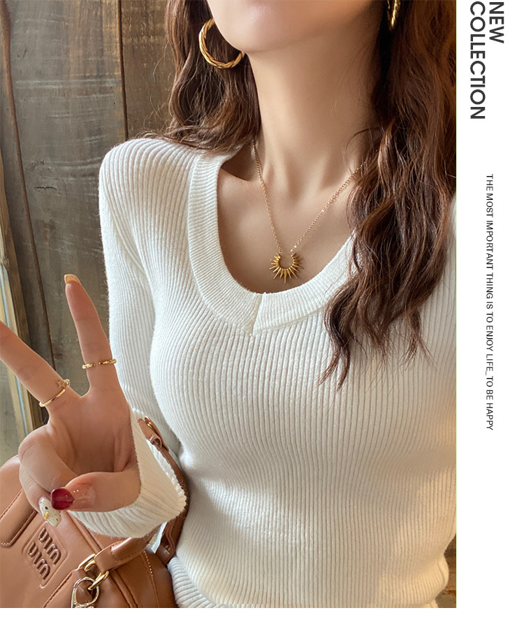 화이트 베이스 셔츠 여성의 2025 봄 새로운 낮은 목 소프트 왁스 스웨터 니트 U 넥 슬림 핏 타이트탑
