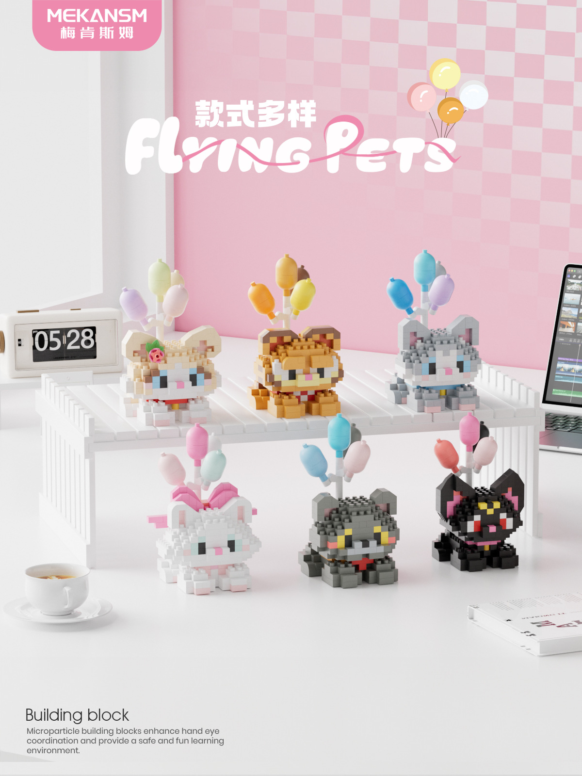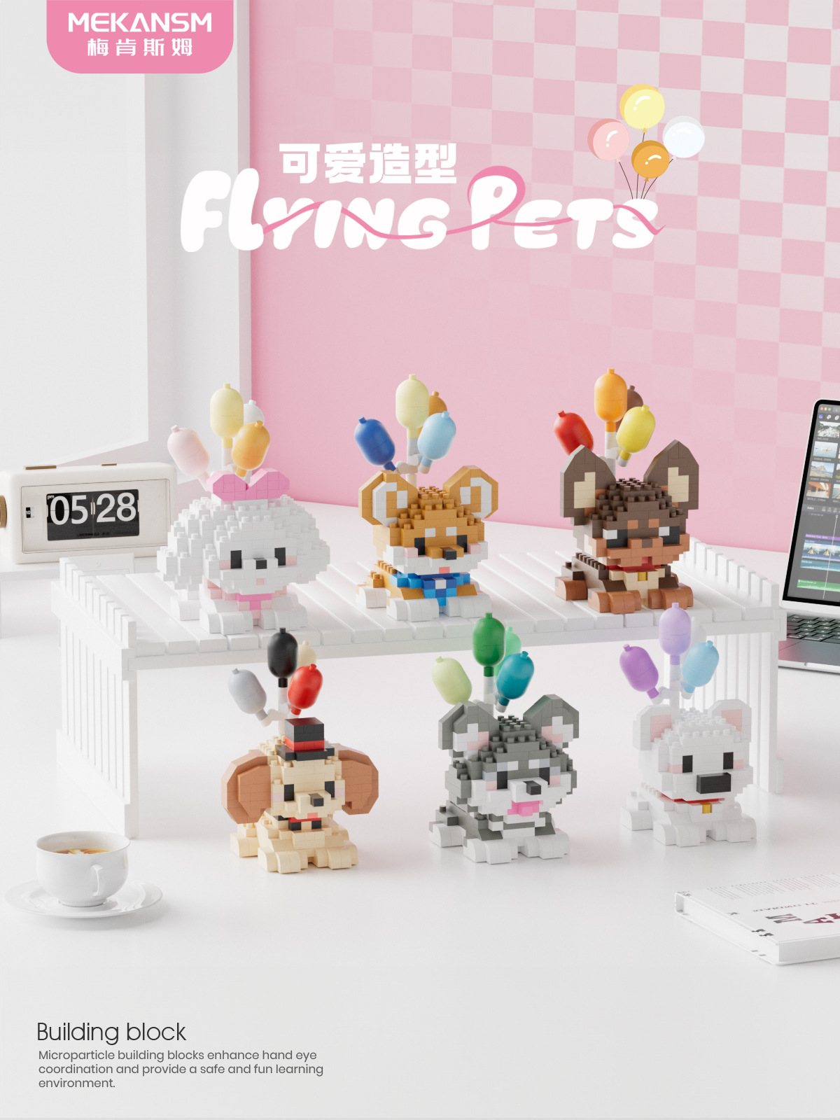 메켄스엠 공식 2025년 신제품 빌딩블록 여행용 귀여운 애완동물 미세 입자 장난감 장식품 도매 해외 고품질 제품스토어 가기